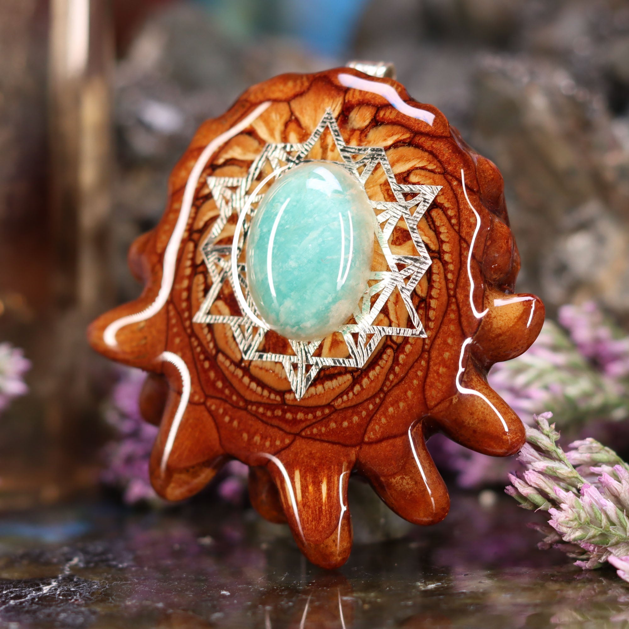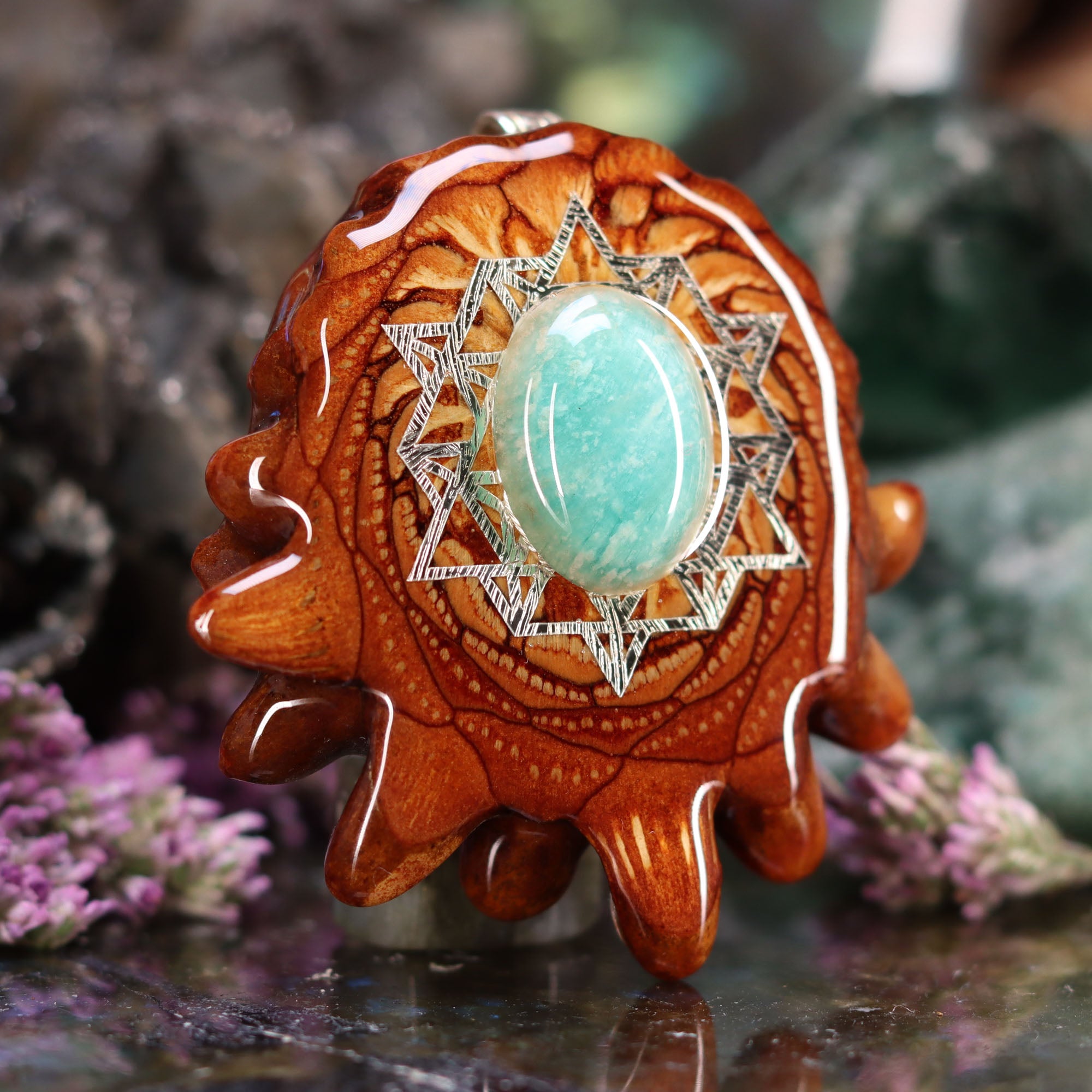 Every pinecone pendant is an elegant gift from Mother Nature -- unveiling the ornate Sacred Geometry hidden at the center of one of the world's densest Pinecones. Because only one cross-section is taken from the "heart" of each Cone, every pendant is absolutely unique, and truly one-of-a-kind.