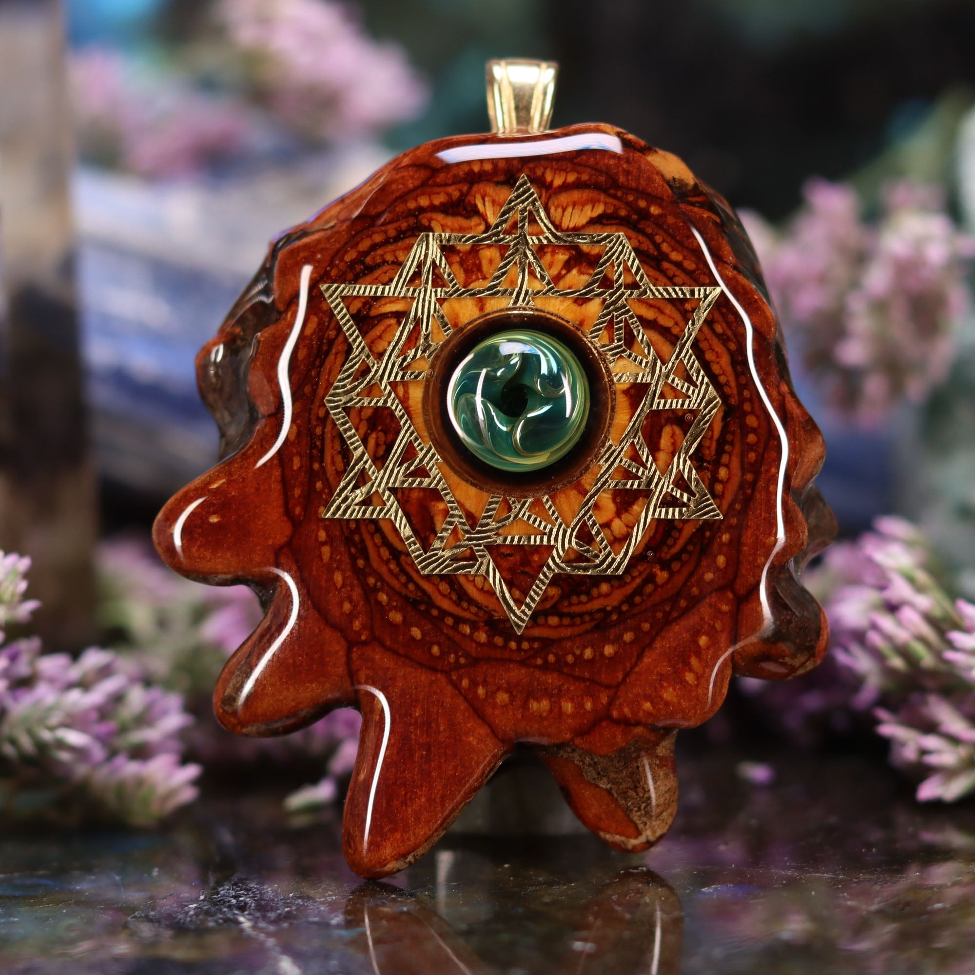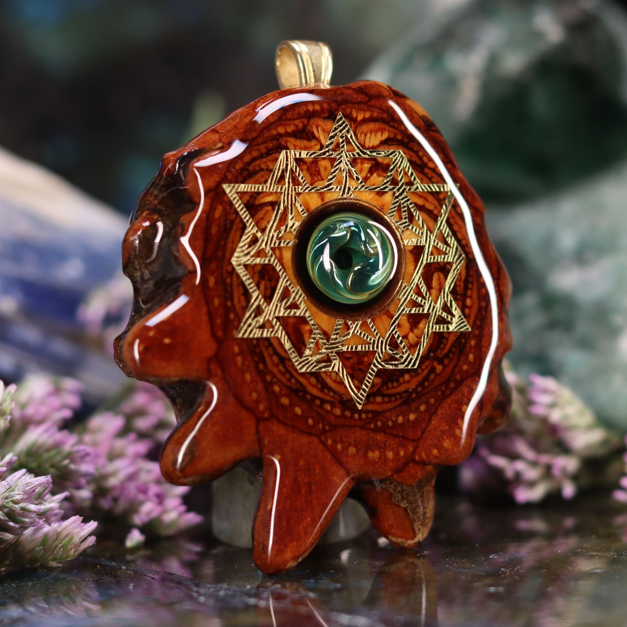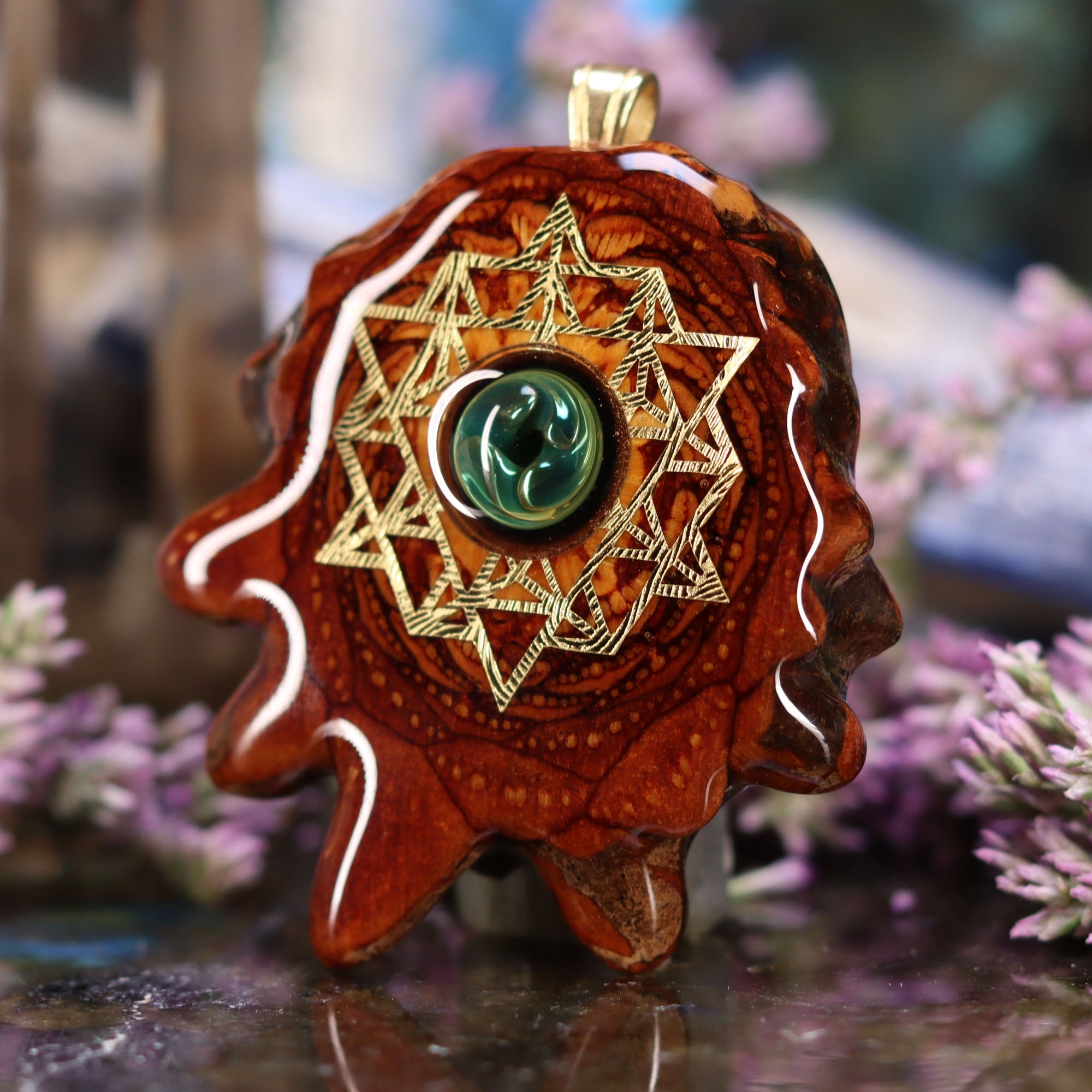 This epic collaboration between Third Eye Pinecones and Nick Anderson Art features a small Glass “Phoenix Orchid” Cab set inside one of our Pinecone Pendants! Each one of these Phoenix Orchid pendants is entirely unique, each with a life of its own. This piece is a one-of-a-kind creation, handmade by Nick, adding an exotic beauty and a stunning natural presence to the person wearing it. Crafted of borosilicate glass and precious metals, the exotic Phoenix Orchid is born in the flames. Forged at temperatures of nearly 5000º Fahrenheit, it is preserved eternally in its final glass form. It is the only of its kind known to exist – truly an original creation.