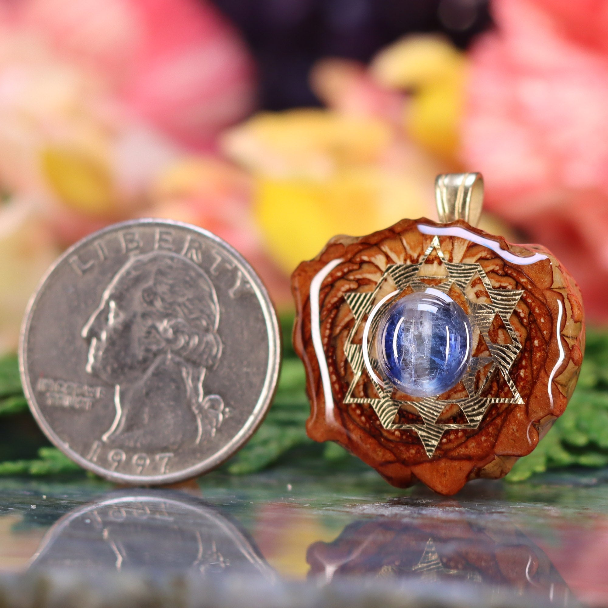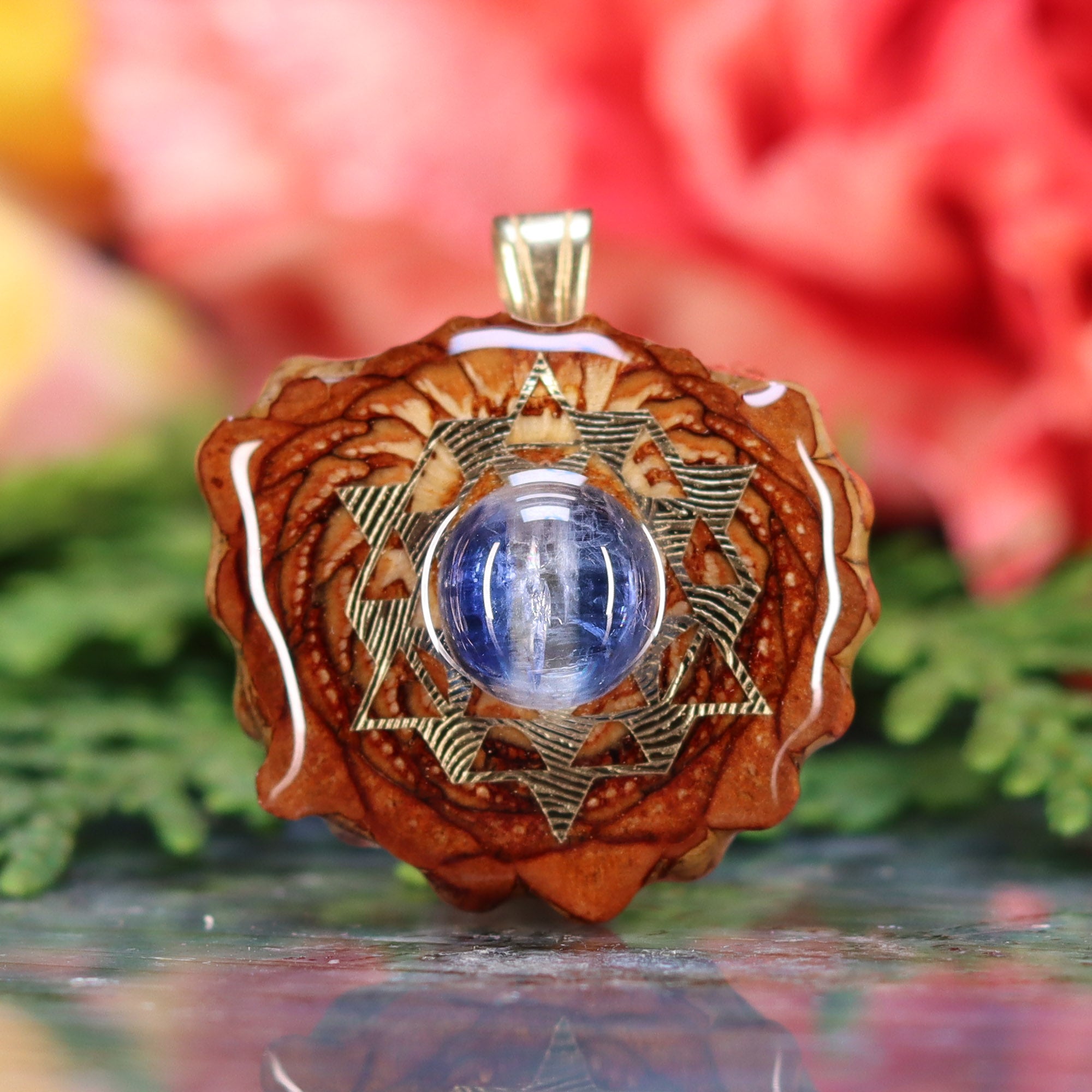 Every pinecone pendant is an elegant gift from Mother Nature -- unveiling the ornate Sacred Geometry hidden at the center of one of the world's densest Pinecones. Because only one cross-section is taken from the "heart" of each Cone, every pendant is absolutely unique, and truly one-of-a-kind.