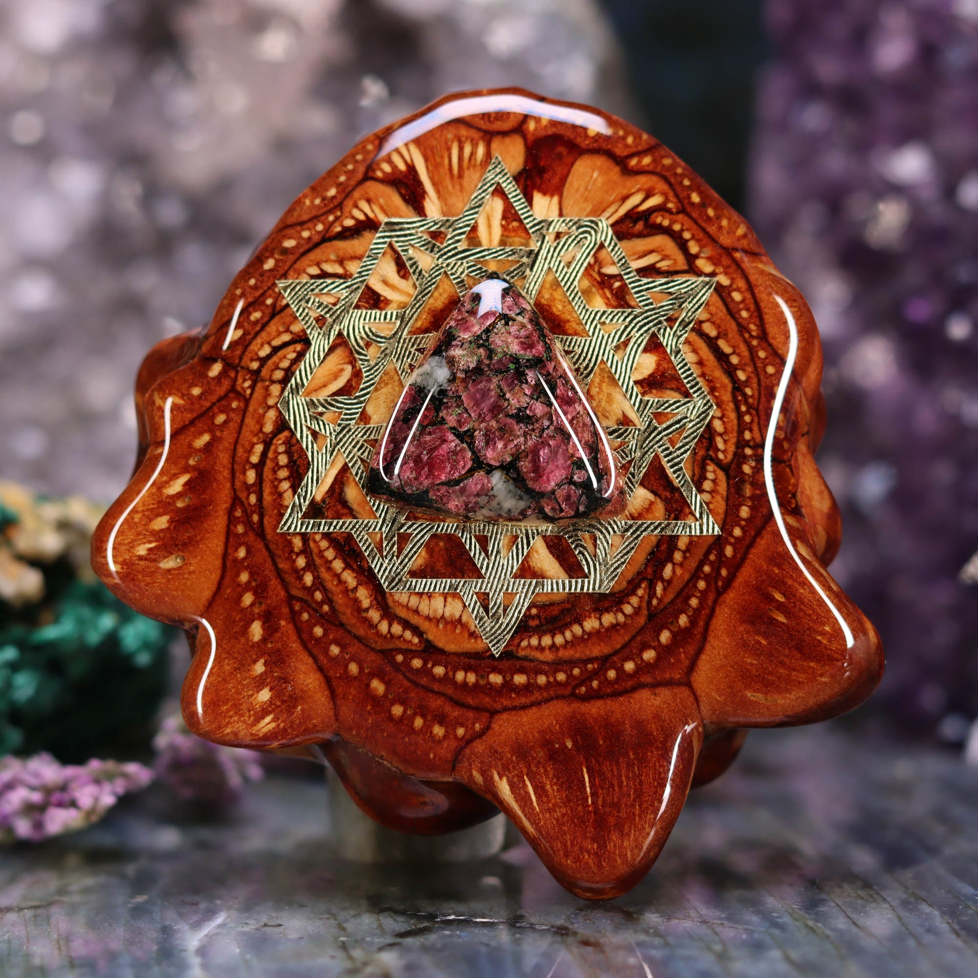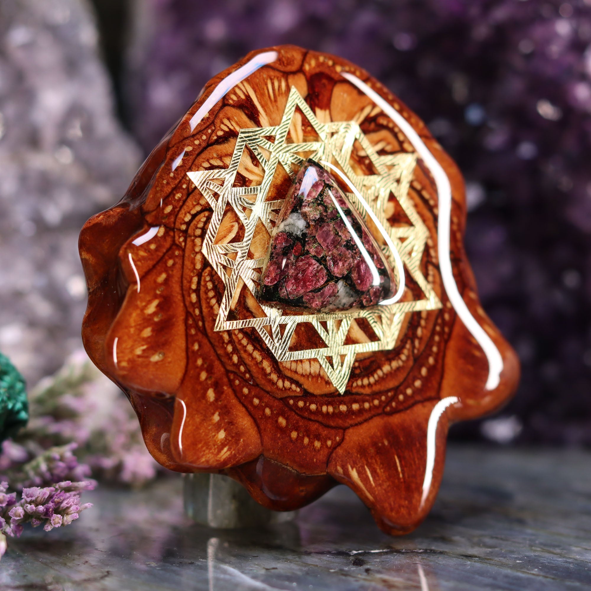 Derived from the Greek word for “Easy”, Eudialyte is said to facilitate greater spiritual integration by enhancing the connection between the physical and emotional bodies. With greater union between the body and mind, we can gain a deeper awareness of the physical manifestations of our emotions, helping develop our emotional fortitude and allowing us to gain clarity and see the ways in which we can evolve. This stone is also believed to help develop trust in oneself and others, easing compulsive behavior, dispelling jealousy, and bringing harmony to the heart chakra.