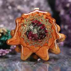 Every pinecone pendant is an elegant gift from Mother Nature -- unveiling the ornate Sacred Geometry hidden at the center of one of the world's densest Pinecones. Because only one cross-section is taken from the "heart" of each Cone, every pendant is absolutely unique, and truly one-of-a-kind.