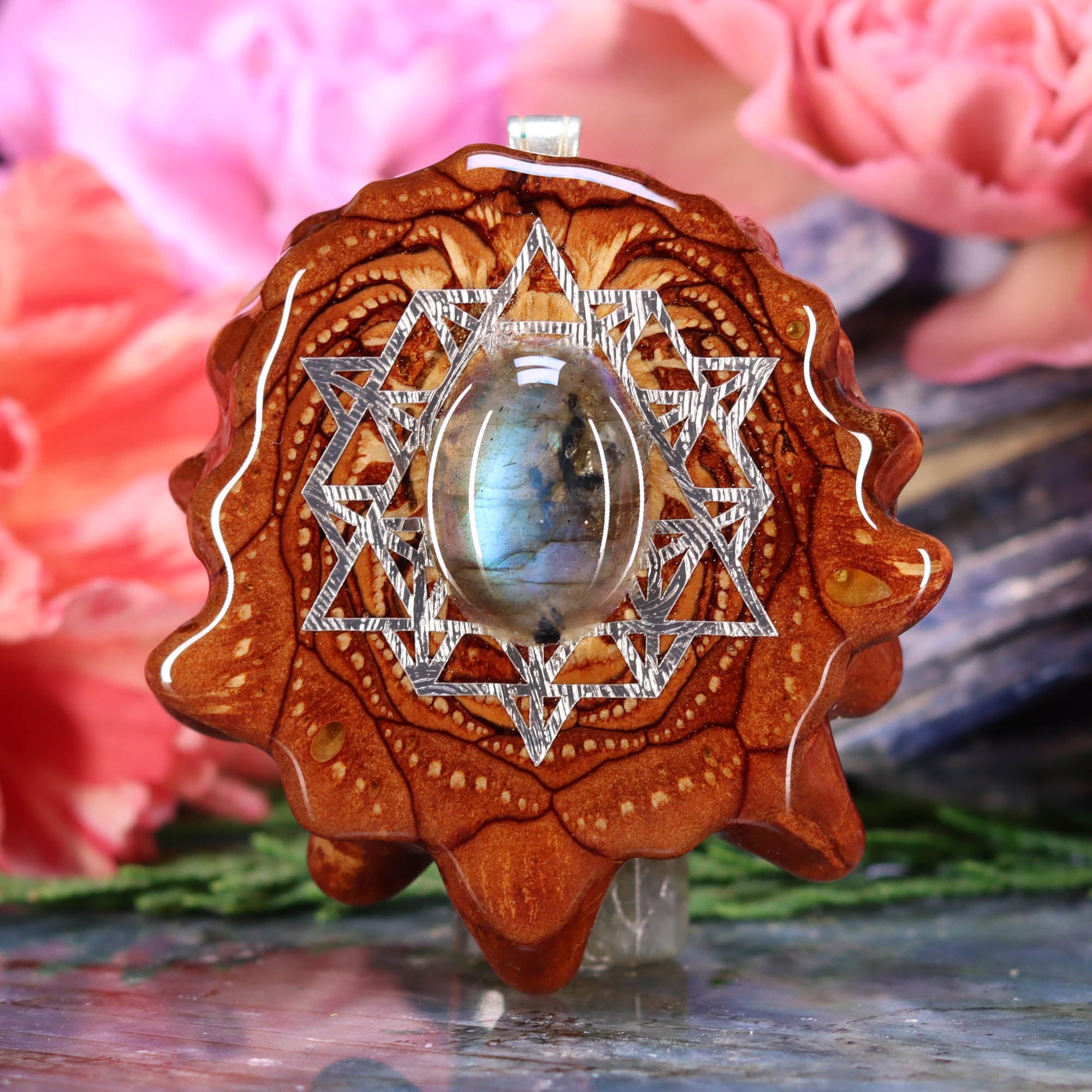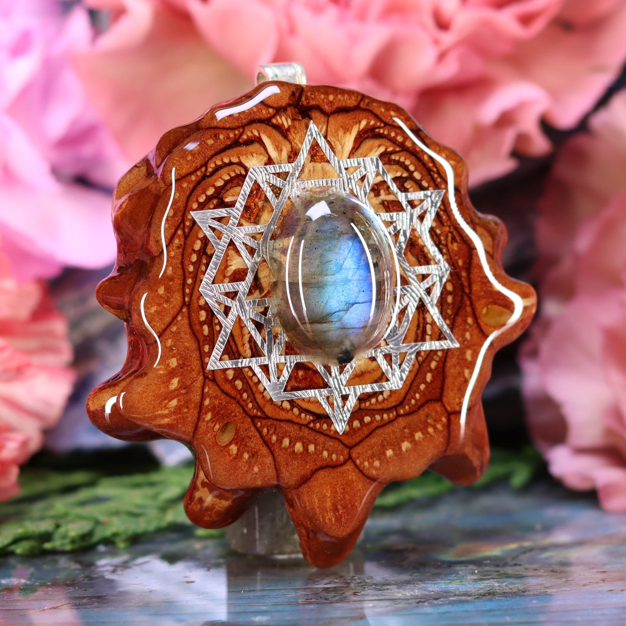 Every pinecone pendant is an elegant gift from Mother Nature -- unveiling the ornate Sacred Geometry hidden at the center of one of the world's densest Pinecones. Because only one cross-section is taken from the "heart" of each Cone, every pendant is absolutely unique, and truly one-of-a-kind.