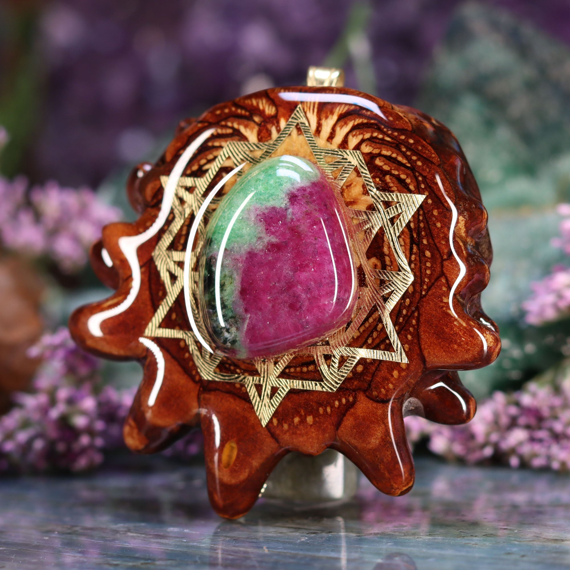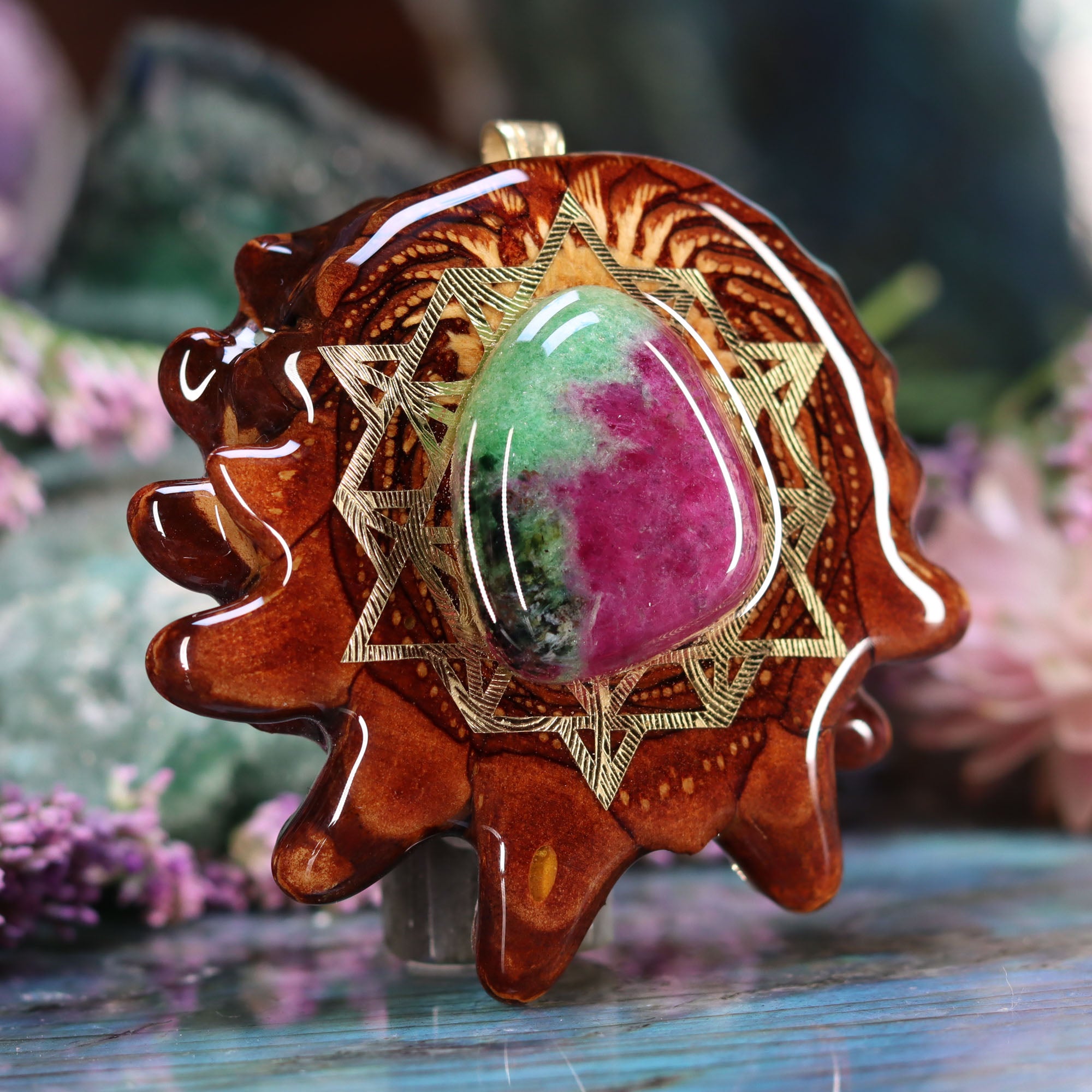 Ruby in Zoisite with Gold 64 Star Tetrahedron
