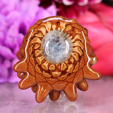 This Pinecone has been anointed with our "Merkaba" emblem, cast in 24k Gold. Merkaba - "Mer" meaning Light, "Ka" meaning Spirit, and "Ba" meaning Body - is a powerful icon historically known as the "Vehicle of ascension". The Merkaba opens the mind to increased awareness and promotes deep conscious interconnection.