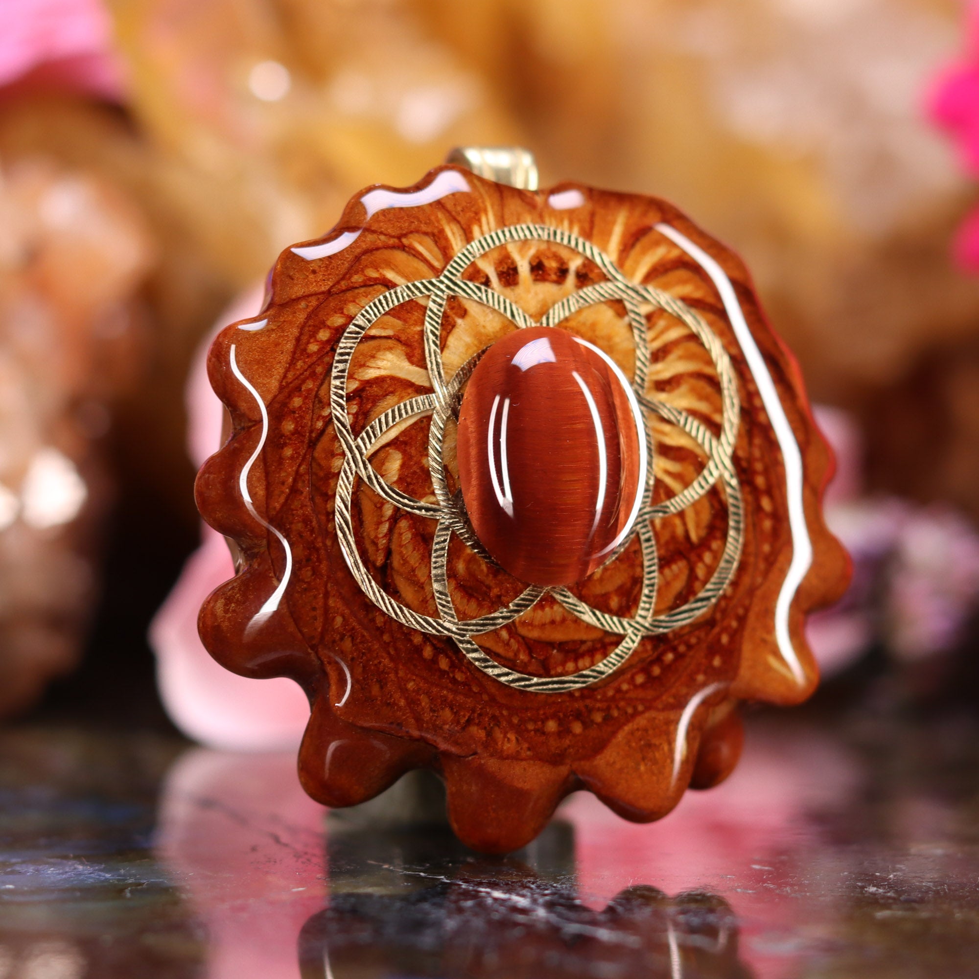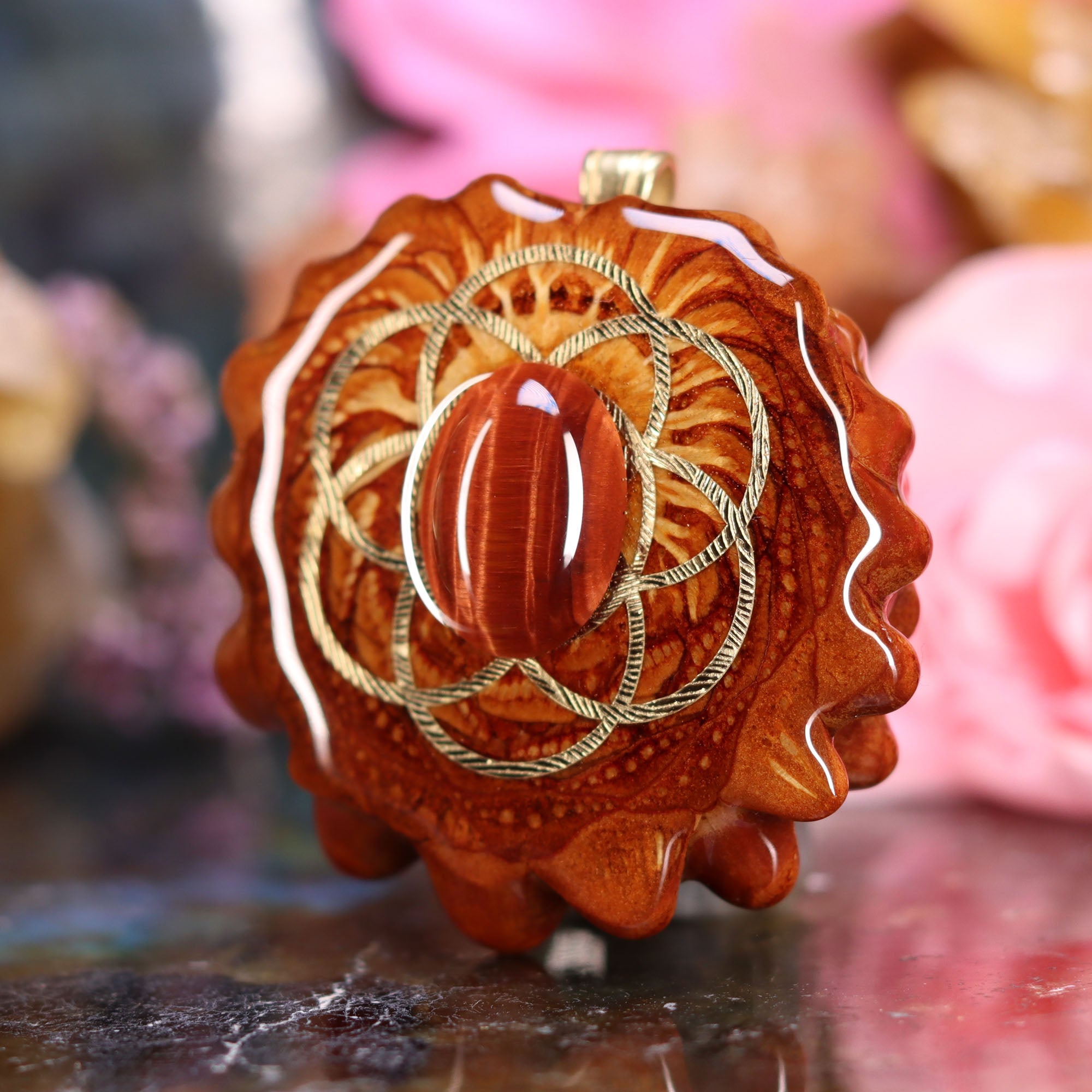 Red Tiger's Eye with Gold Seed of Life
