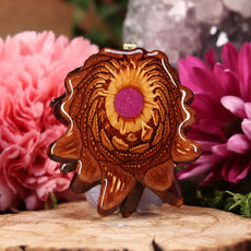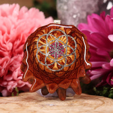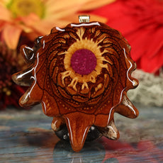 Every pinecone pendant is an elegant gift from Mother Nature -- unveiling the ornate Sacred Geometry hidden at the center of one of the world's densest Pinecones. Because only one cross-section is taken from the "heart" of each Cone, every pendant is absolutely unique, and truly one-of-a-kind.