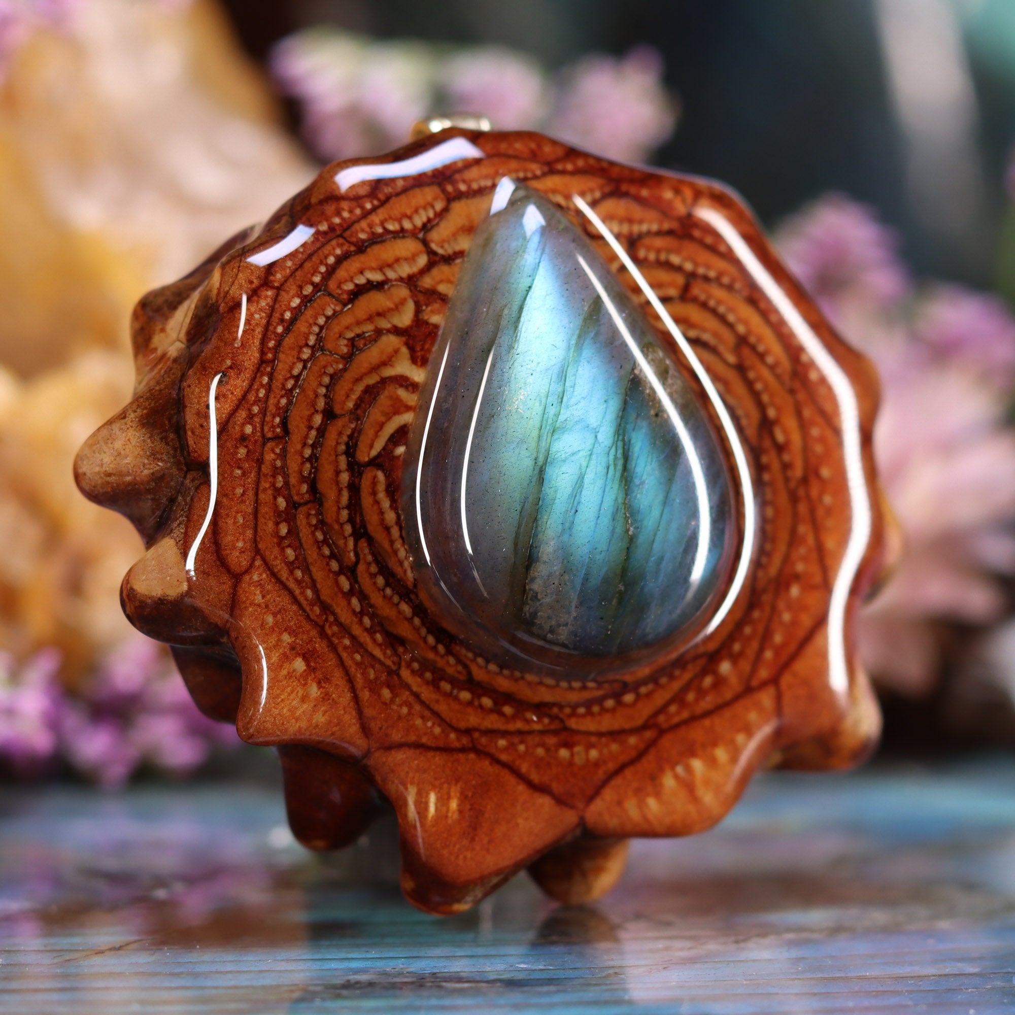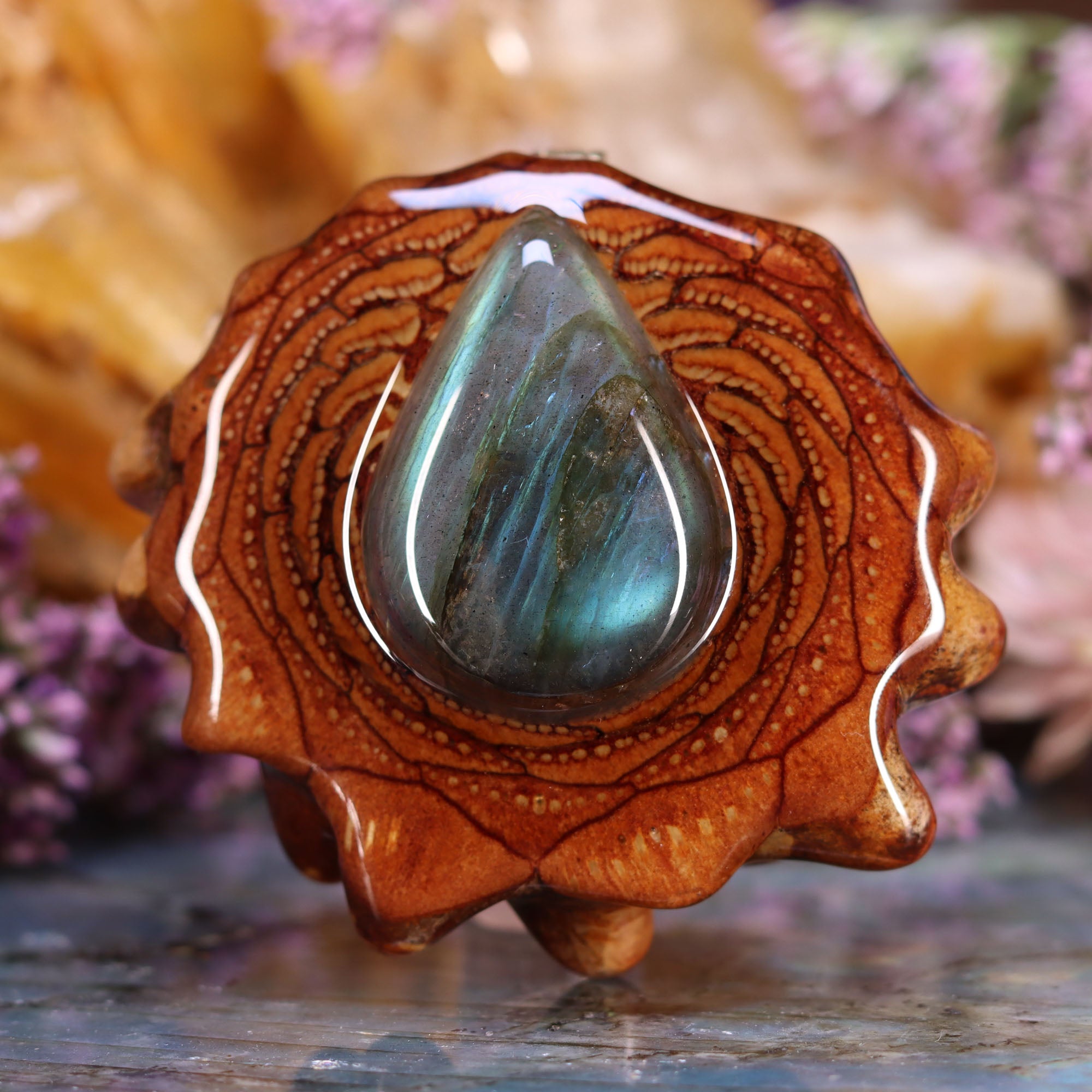 Labradorite is regarded as a highly mystical and protective stone, and is often used by healing arts practitioners as a barrier against negative energies released during treatment. It is thought to facilitate powerful shifts in consciousness, helping to connect with higher energy in the present while imparting the strength and perseverance necessary to clear past difficulties and traumas. Labradorite calms an overactive mind and energizes the imagination, bringing up new ideas and balancing the rational mind with deeper esoteric insight.