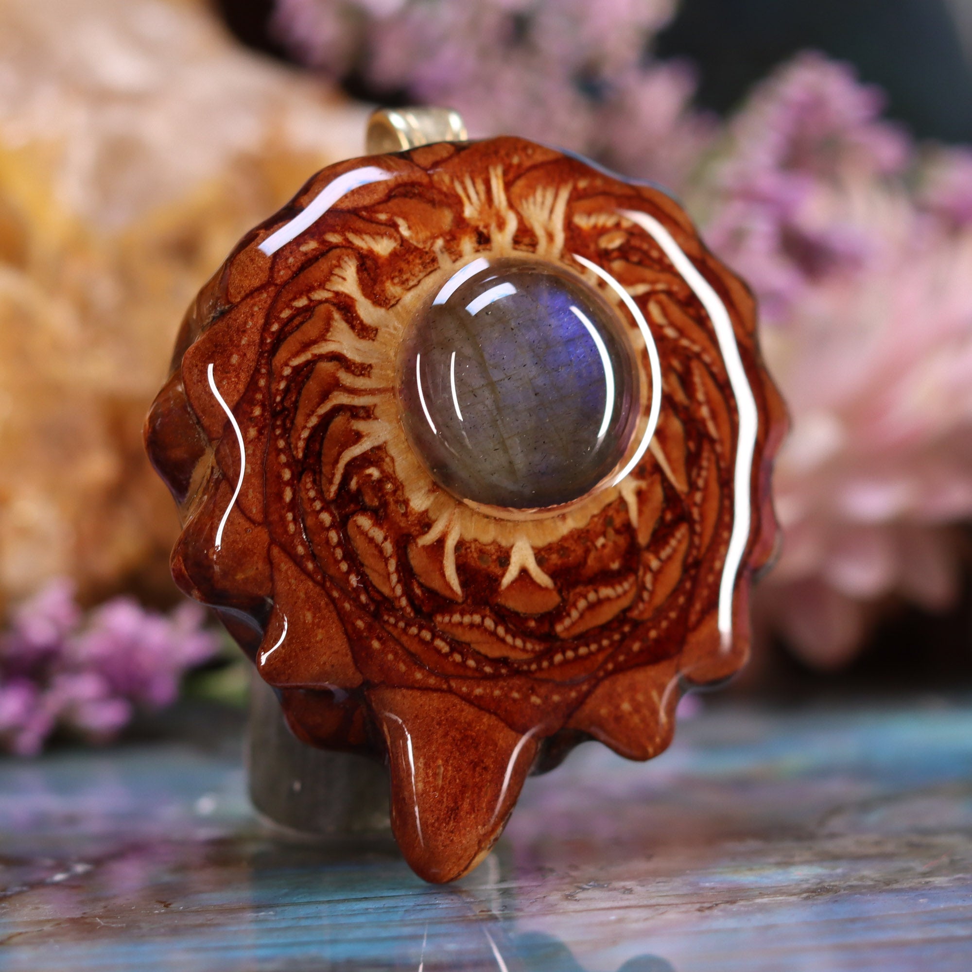 Every pinecone pendant is an elegant gift from Mother Nature -- unveiling the ornate Sacred Geometry hidden at the center of one of the world's densest Pinecones. Because only one cross-section is taken from the "heart" of each Cone, every pendant is absolutely unique, and truly one-of-a-kind.