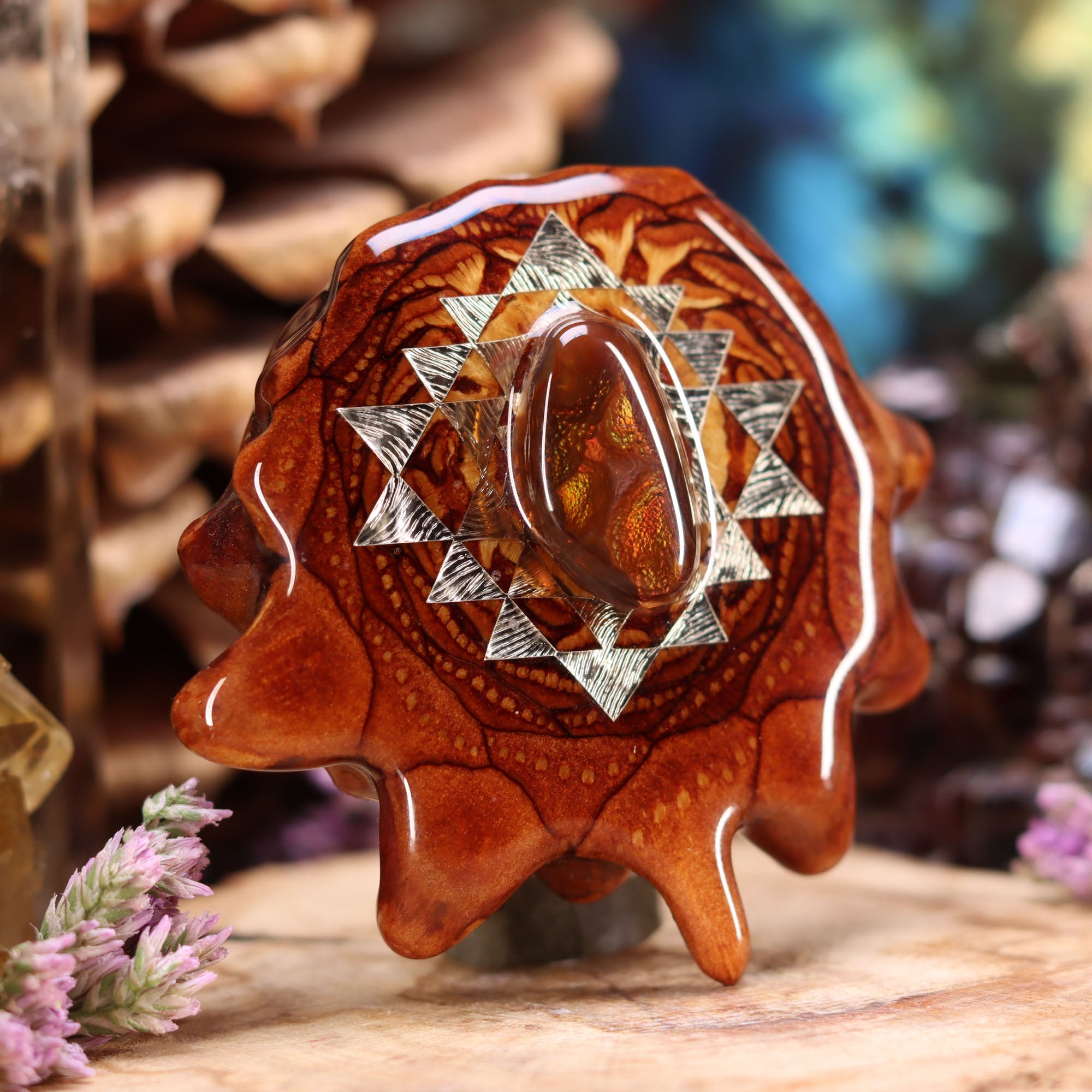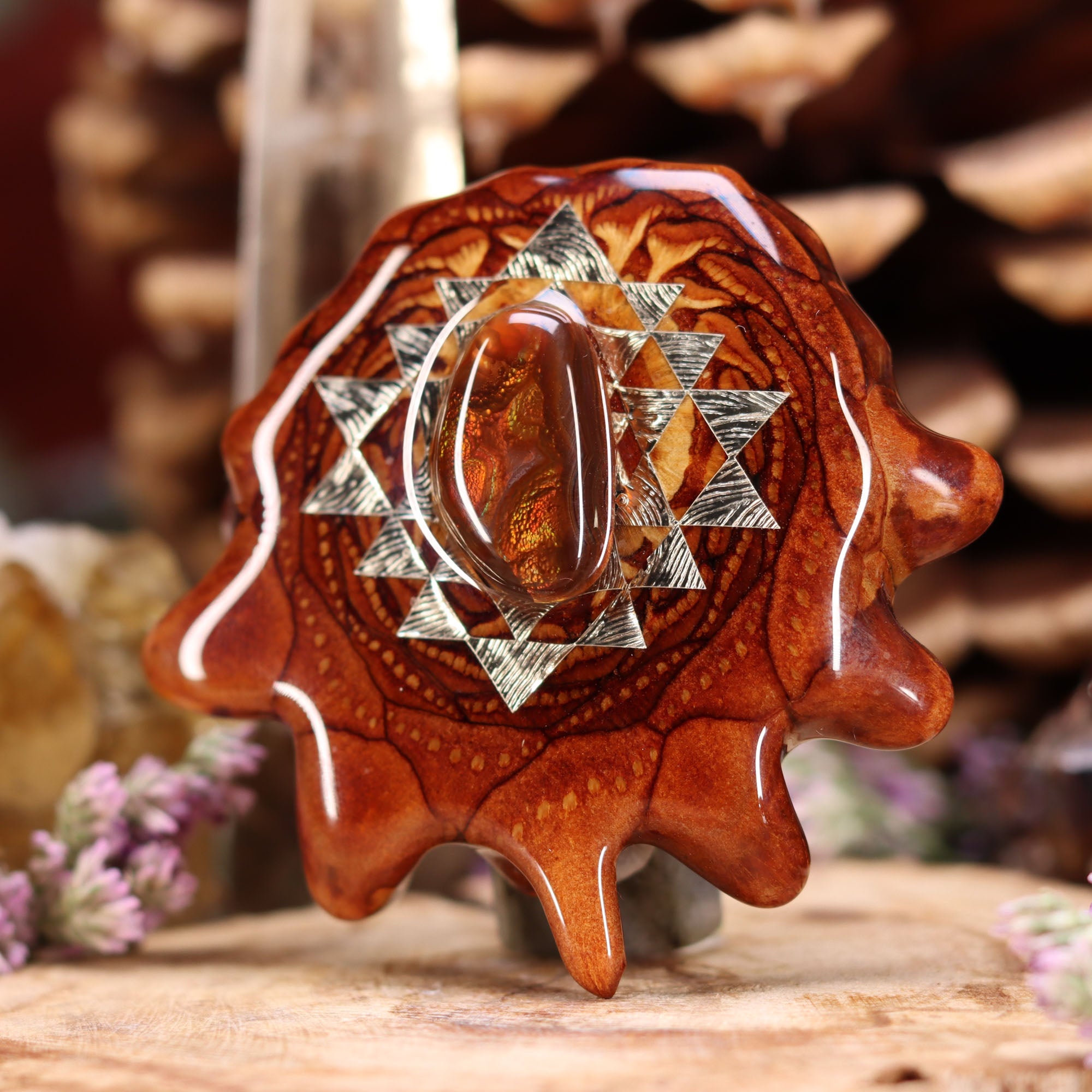 Every pinecone pendant is an elegant gift from Mother Nature -- unveiling the ornate Sacred Geometry hidden at the center of one of the world's densest Pinecones. Because only one cross-section is taken from the "heart" of each Cone, every pendant is absolutely unique, and truly one-of-a-kind.