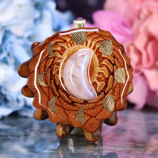 As its name suggests, Moonstone is strongly connected to the archetypal feminine energies of the moon, intuition, and empathy. It helps reconnect with the softness and wisdom of the great mother if one gets caught up in stress, fixation, or aggression. It is recognized as a powerful tool to make conscious the unconscious, and traditionally has been worn as a pendant to encourage the fruition of one's psychic gifts, as well as to facilitate lucid dreaming.