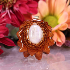 Every pinecone pendant is an elegant gift from Mother Nature -- unveiling the ornate Sacred Geometry hidden at the center of one of the world's densest Pinecones. Because only one cross-section is taken from the "heart" of each Cone, every pendant is absolutely unique, and truly one-of-a-kind.