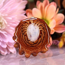 As its name suggests, Moonstone is strongly connected to the archetypal feminine energies of the moon, intuition, and empathy. It allows us to reconnect with the softness of the feminine, facilitating the letting go of stress, fixation, and aggression. Additionally, Moonstone is recognized as a powerful tool to make conscious what is unconscious, bringing ease to practices of mindfulness and higher consciousnesses.