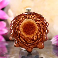 Every pinecone pendant is an elegant gift from Mother Nature -- unveiling the ornate Sacred Geometry hidden at the center of one of the world's densest Pinecones. Because only one cross-section is taken from the "heart" of each Cone, every pendant is absolutely unique, and truly one-of-a-kind.