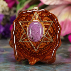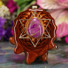 This pendant has been paired with a miniature “Orgone Generator” set with Sugilite to awaken body, mind, and spirit! A magic mix of metal shavings, resin, crystal fragments, and a quartz crystal specially crafted by Third Eye Pinecones help form this uniquely powerful spiritual device. Its benefits are said to be many, primarily because it is believed to draw in harmful ambient EMFs and bio-energy and transmute them within its internal crystalline matrix – which it then re-emits as positive biomagnetic energy.
