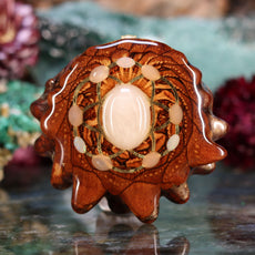 This pinecone is imbued with a Sterling Silver emblem of the 4th Chakra, the Heart Chakra. Known as “Anahata” ( meaning “unhurt”) in Sanskrit, this emblem symbolizes the boundless love and compassion that resides beneath our personal stories and suffering.