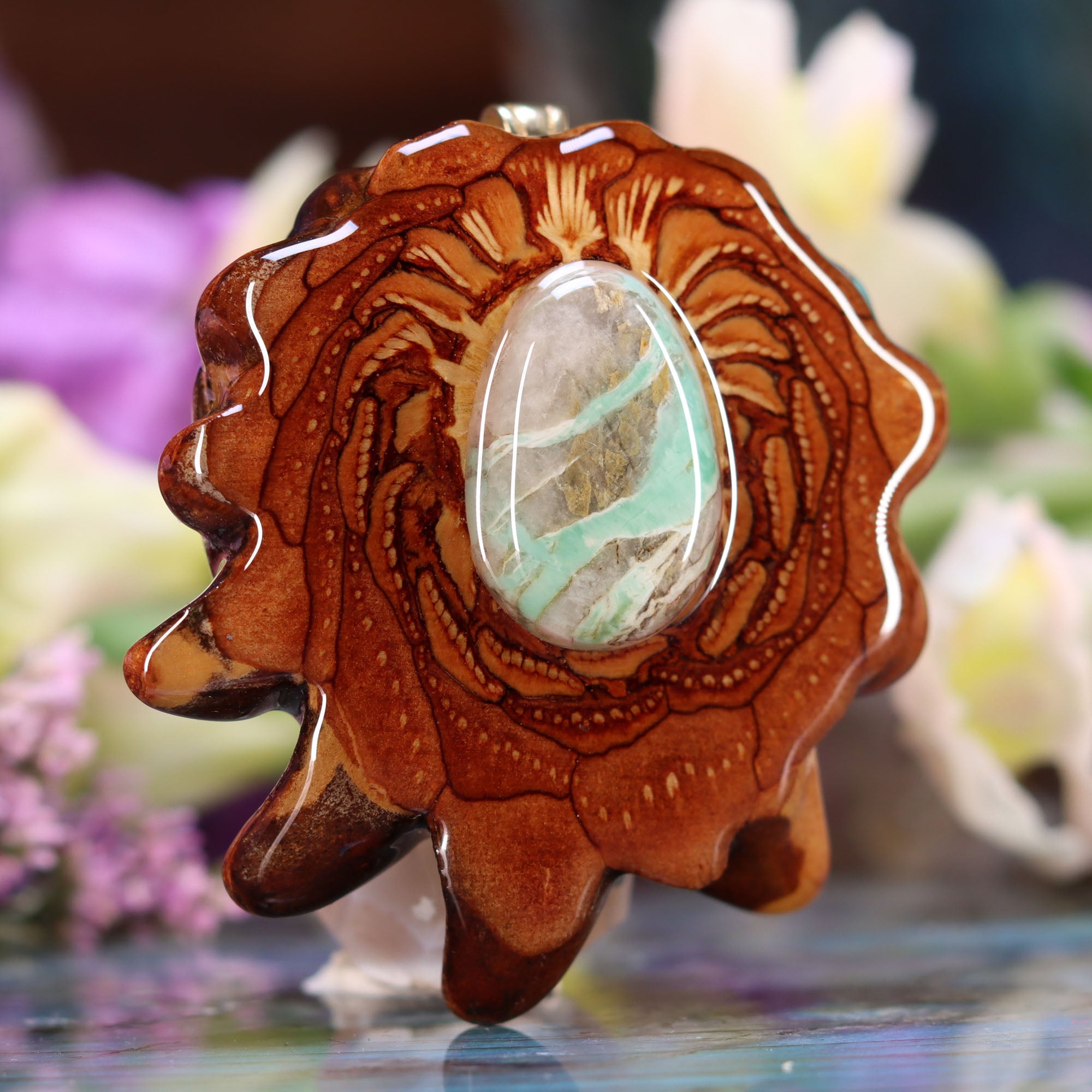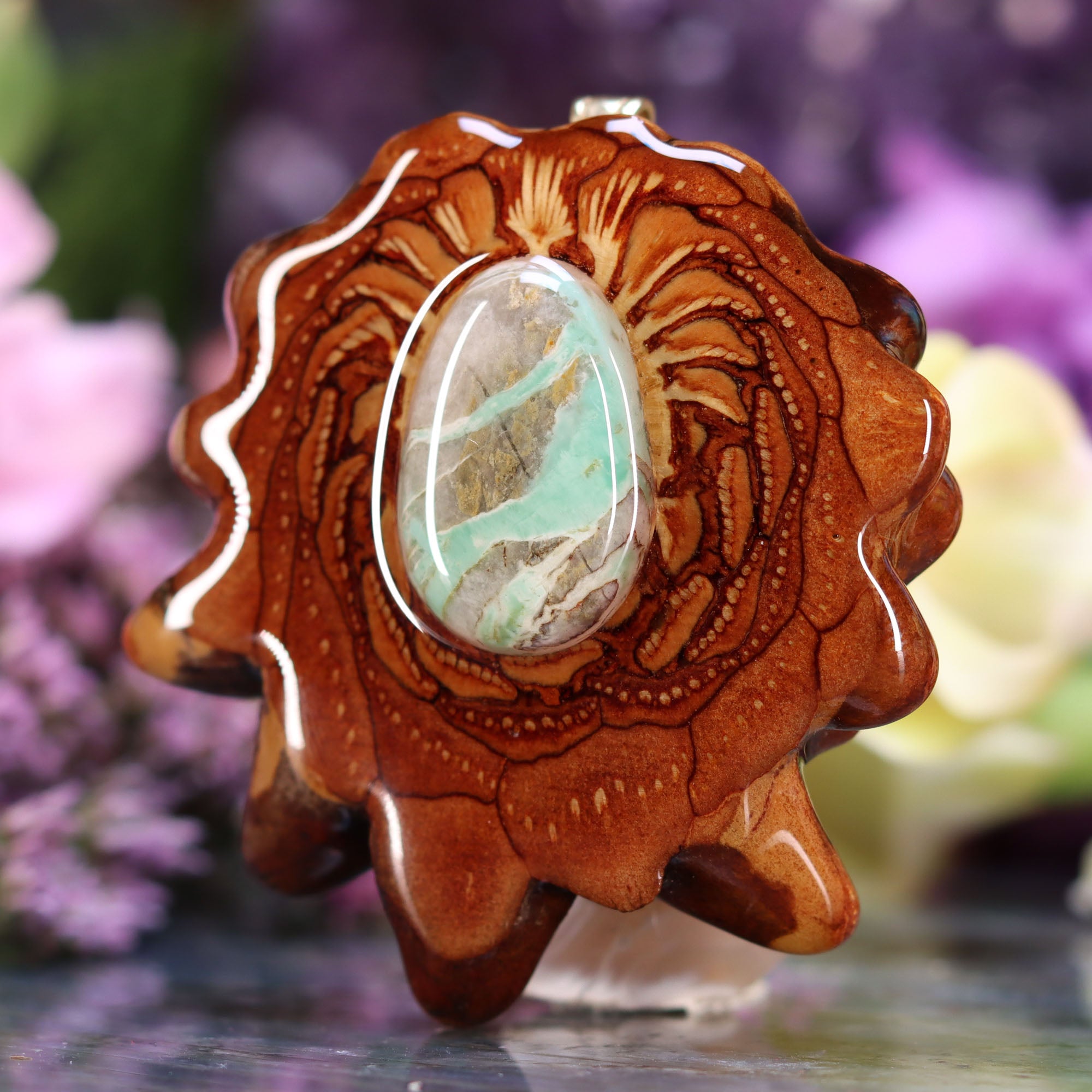 Every pinecone pendant is an elegant gift from Mother Nature -- unveiling the ornate Sacred Geometry hidden at the center of one of the world's densest Pinecones. Because only one cross-section is taken from the "heart" of each Cone, every pendant is absolutely unique, and truly one-of-a-kind.