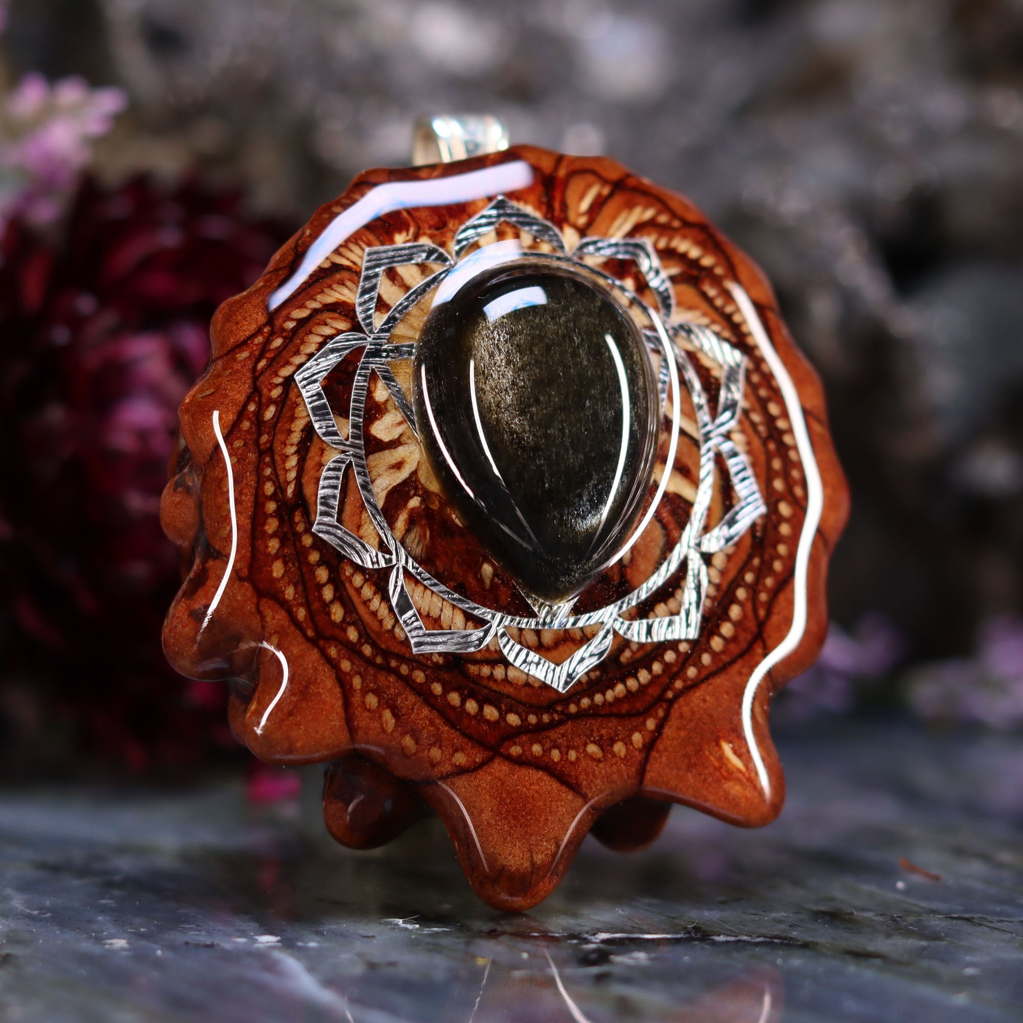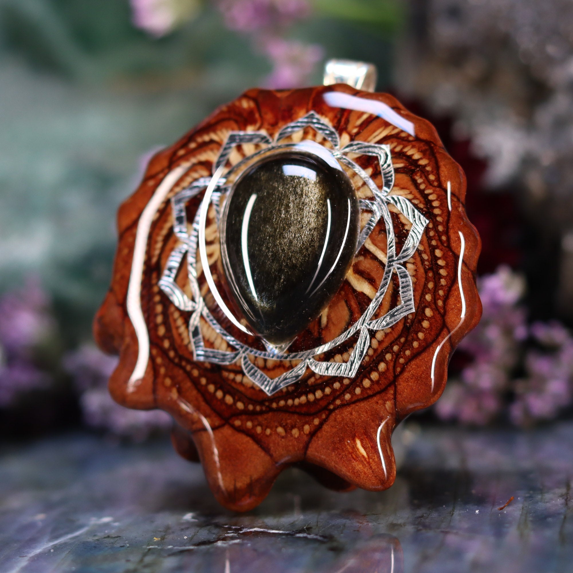 Every pinecone pendant is an elegant gift from Mother Nature -- unveiling the ornate Sacred Geometry hidden at the center of one of the world's densest Pinecones. Because only one cross-section is taken from the "heart" of each Cone, every pendant is absolutely unique, and truly one-of-a-kind.