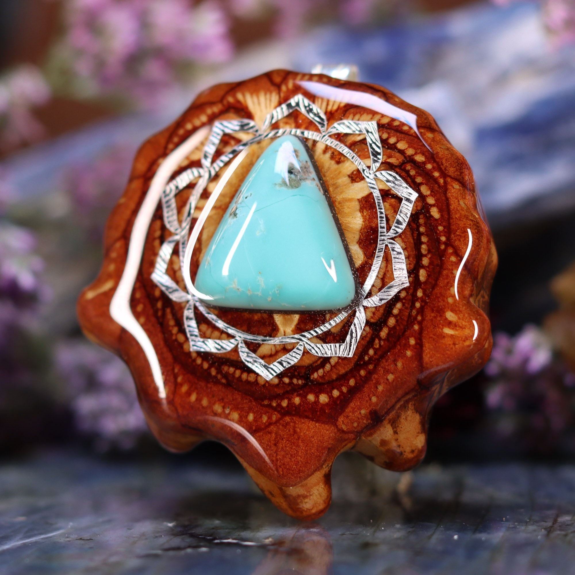 Every pinecone pendant is an elegant gift from Mother Nature -- unveiling the ornate Sacred Geometry hidden at the center of one of the world's densest Pinecones. Because only one cross-section is taken from the "heart" of each Cone, every pendant is absolutely unique, and truly one-of-a-kind.