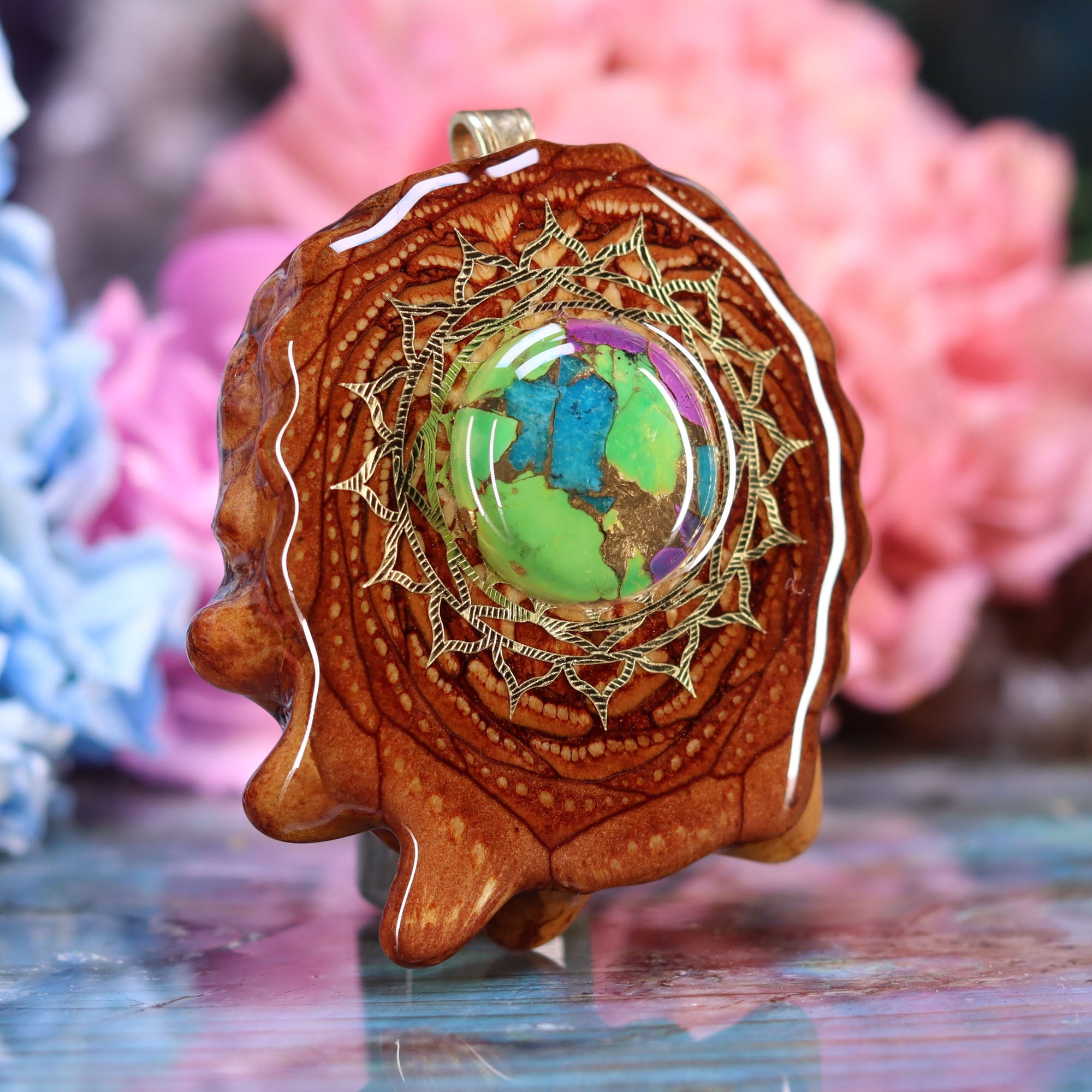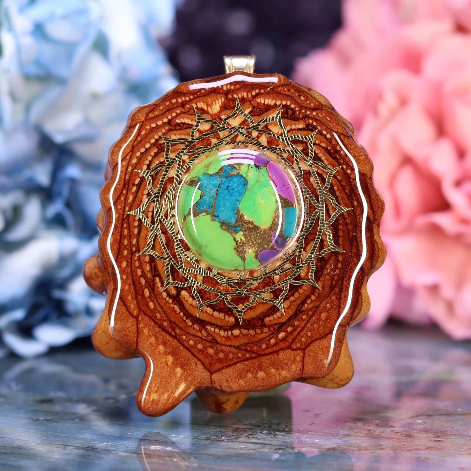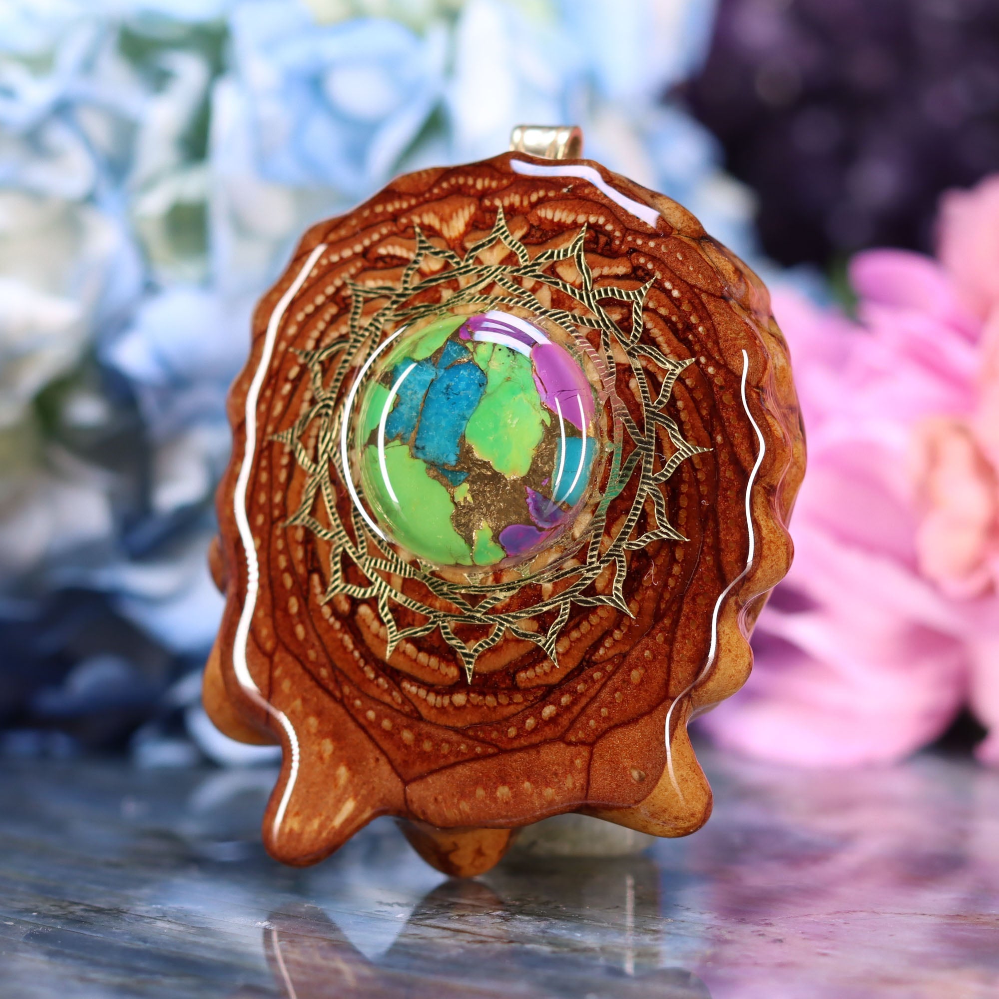 Green Purple and Blue Mohave Turquoise with Gold Crown (7th) Chakra