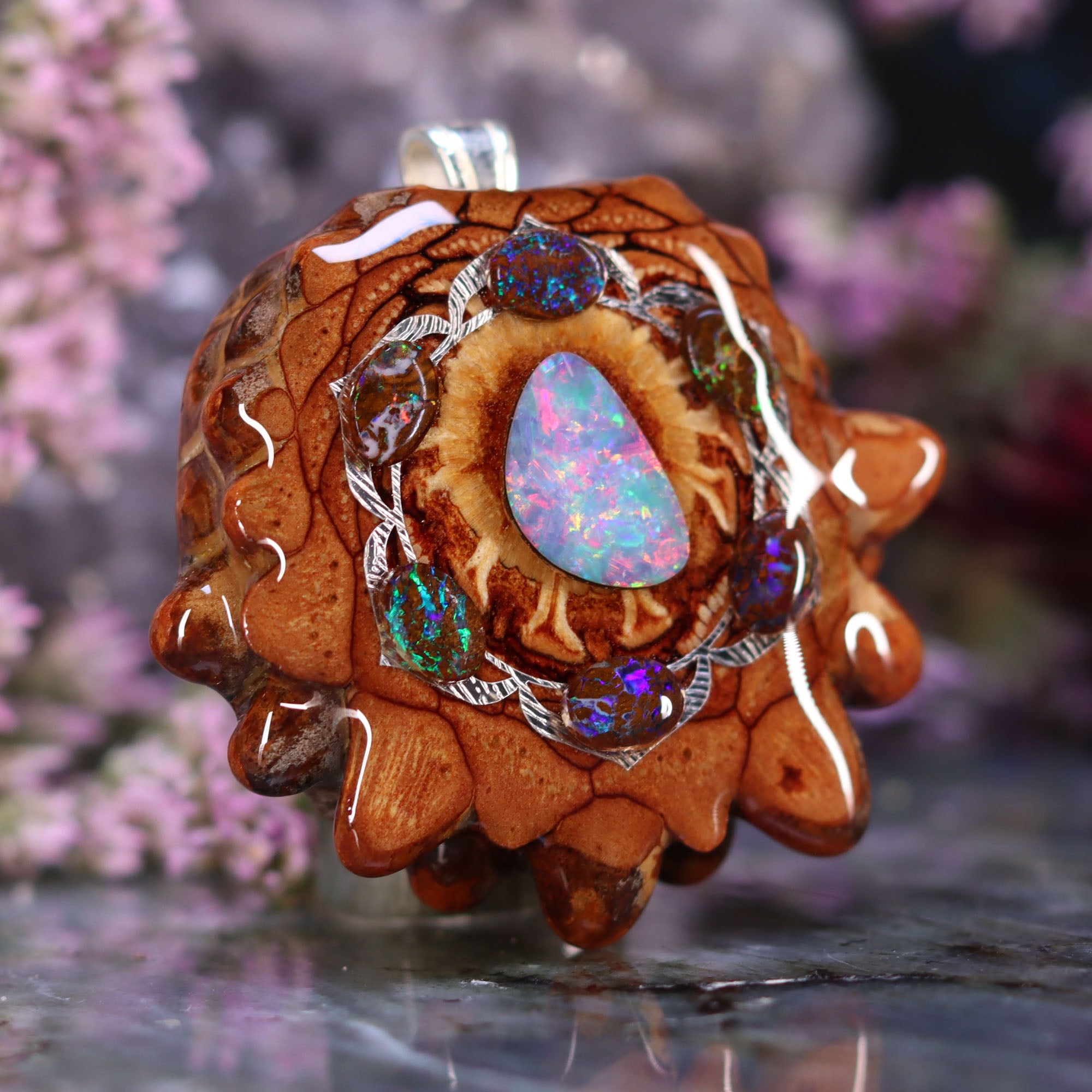 Every pinecone pendant is an elegant gift from Mother Nature -- unveiling the ornate Sacred Geometry hidden at the center of one of the world's densest Pinecones. Because only one cross-section is taken from the "heart" of each Cone, every pendant is absolutely unique, and truly one-of-a-kind.