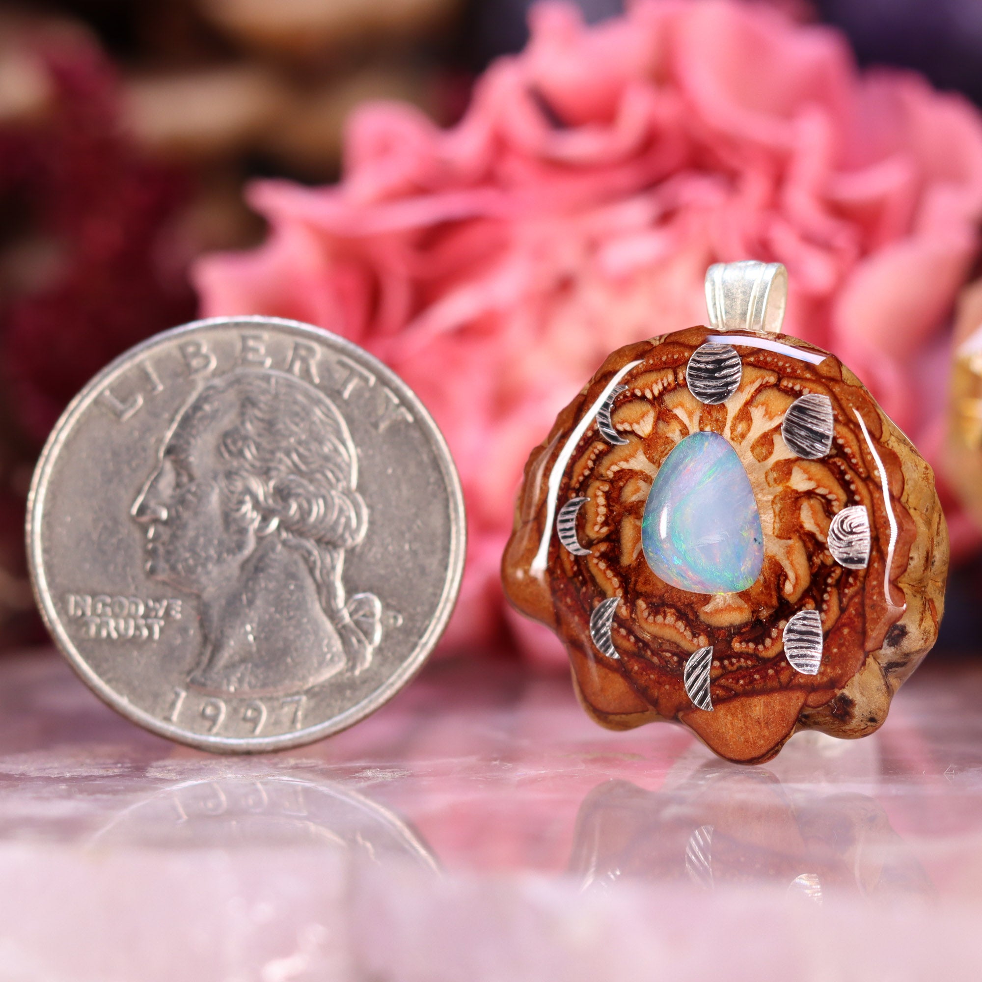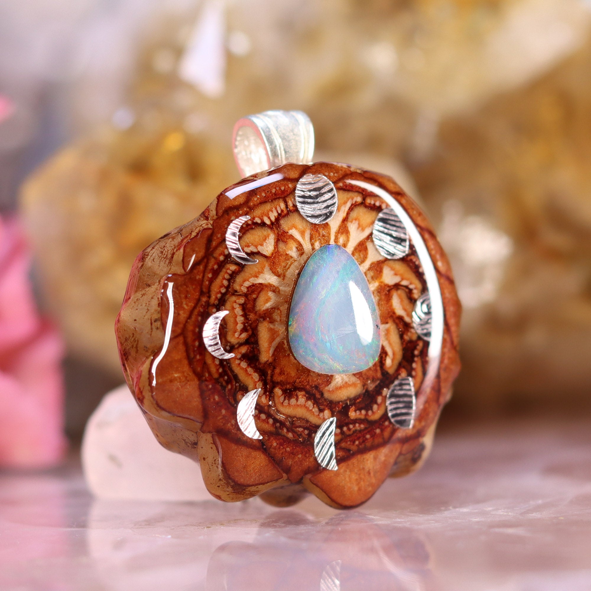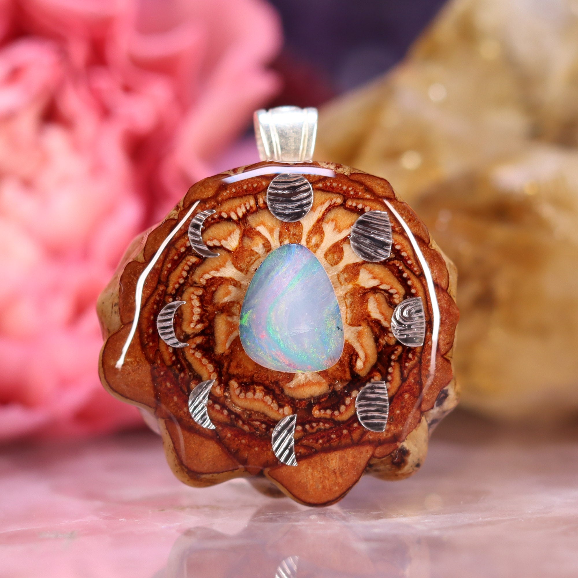 Australian Blue Opal with Silver Moon Cycle