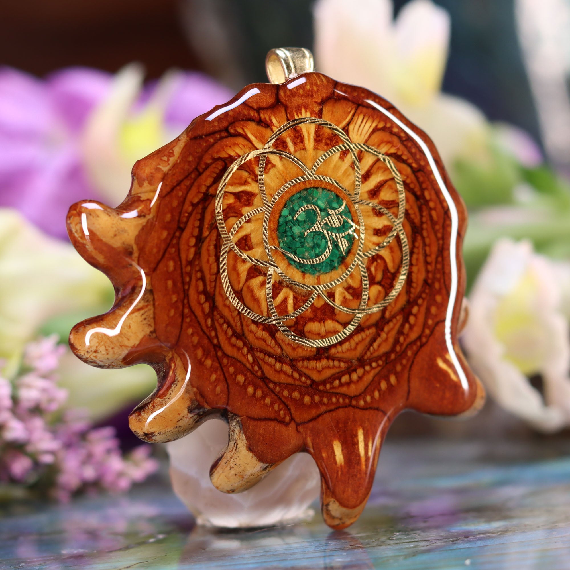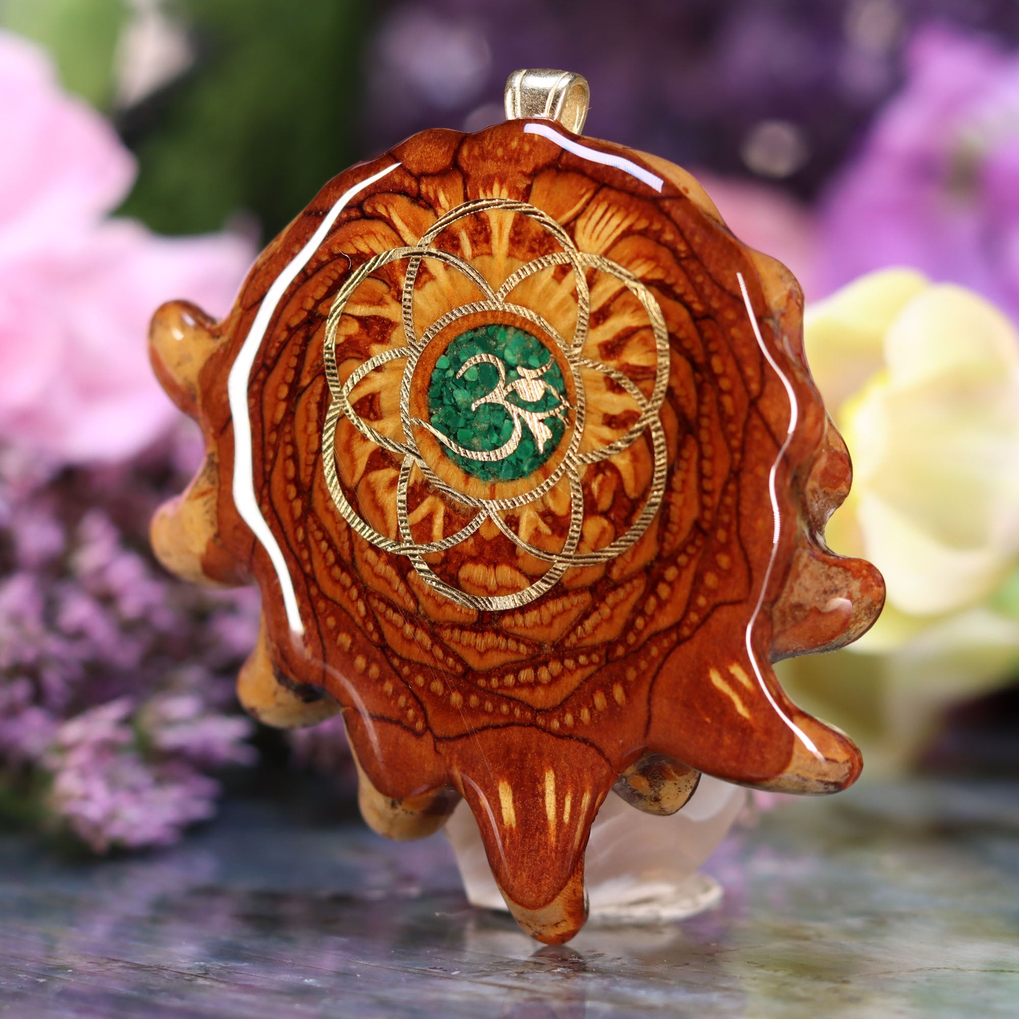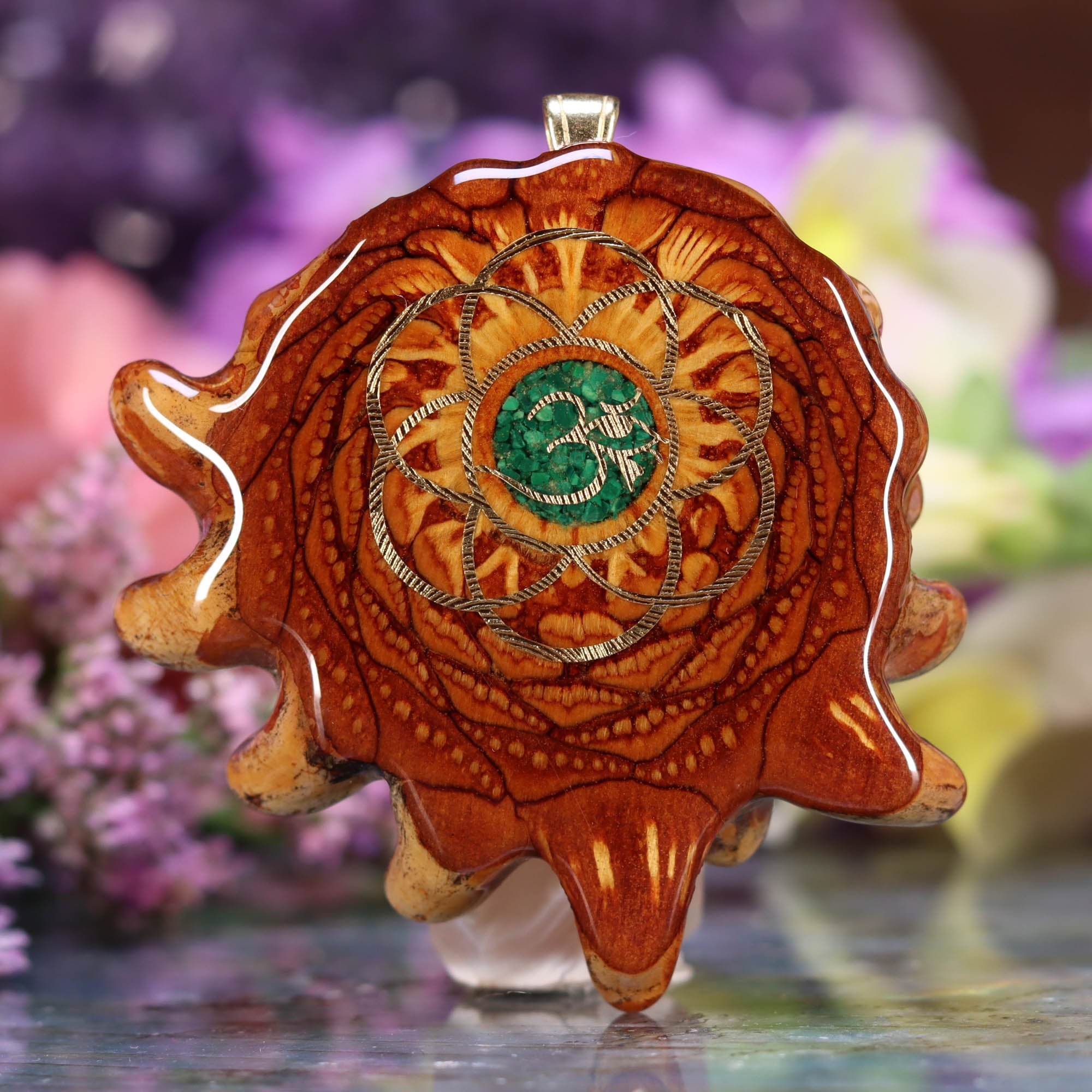 Every pinecone pendant is an elegant gift from Mother Nature -- unveiling the ornate Sacred Geometry hidden at the center of one of the world's densest Pinecones. Because only one cross-section is taken from the "heart" of each Cone, every pendant is absolutely unique, and truly one-of-a-kind.