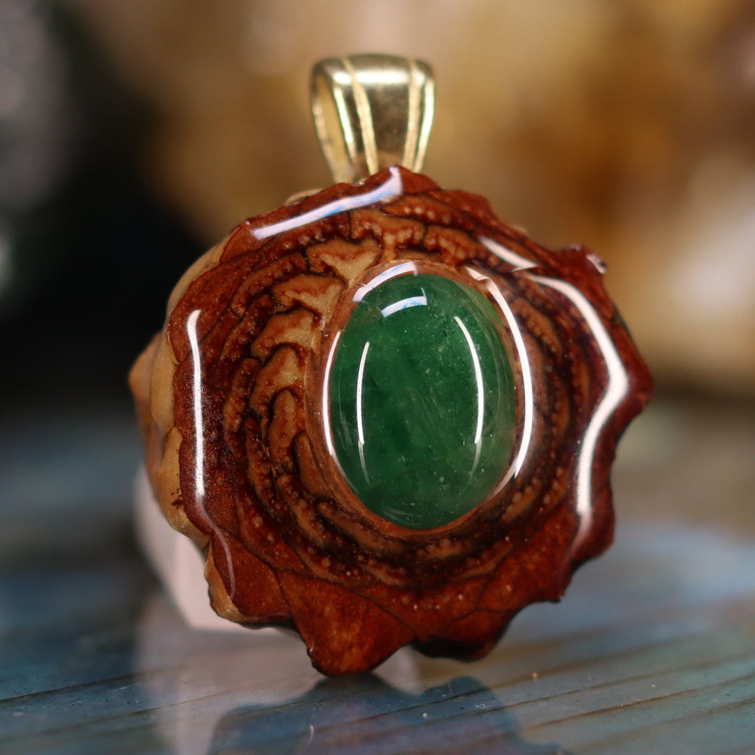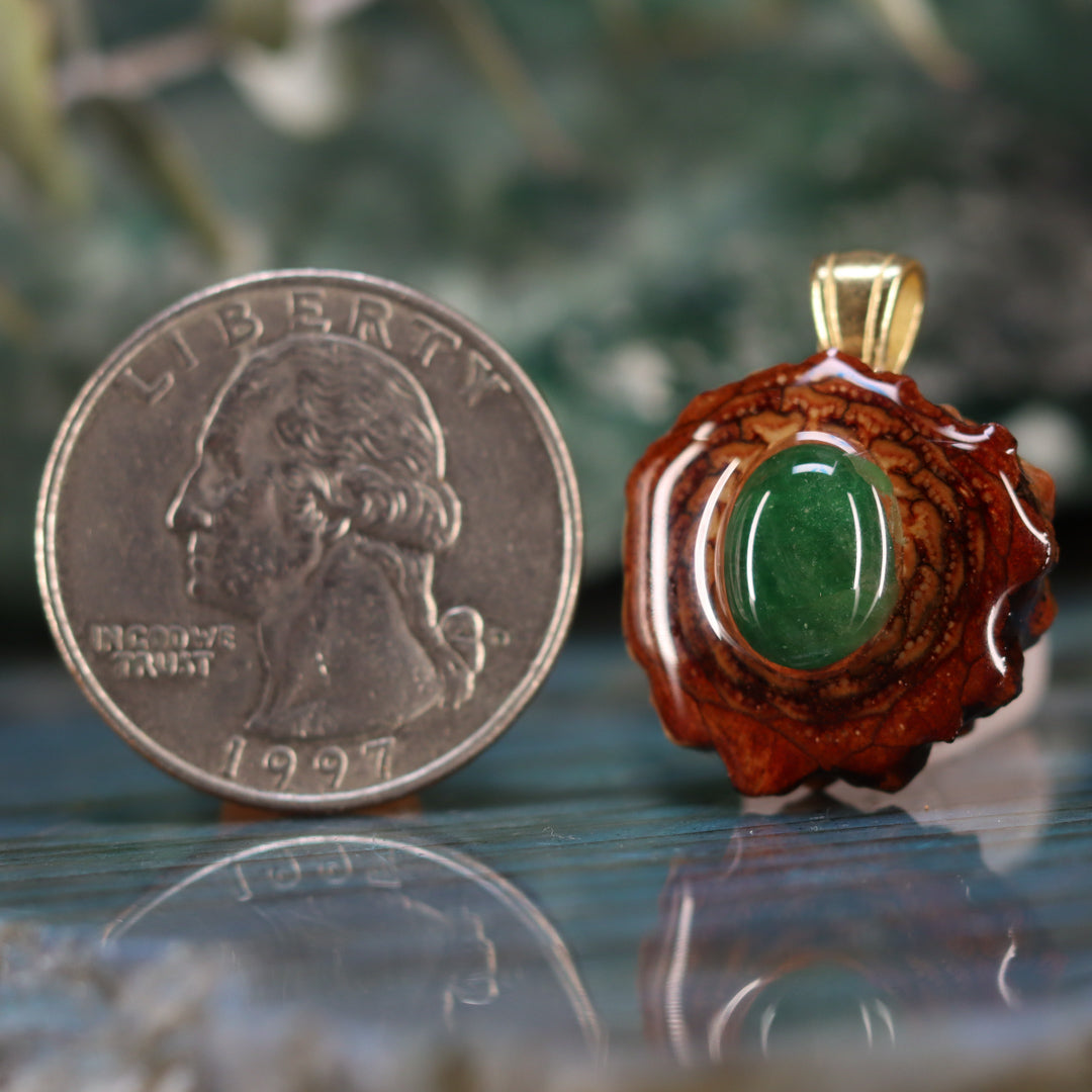 Every pinecone pendant is an elegant gift from Mother Nature -- unveiling the ornate Sacred Geometry hidden at the center of one of the world's densest Pinecones. Because only one cross-section is taken from the "heart" of each Cone, every pendant is absolutely unique, and truly one-of-a-kind.