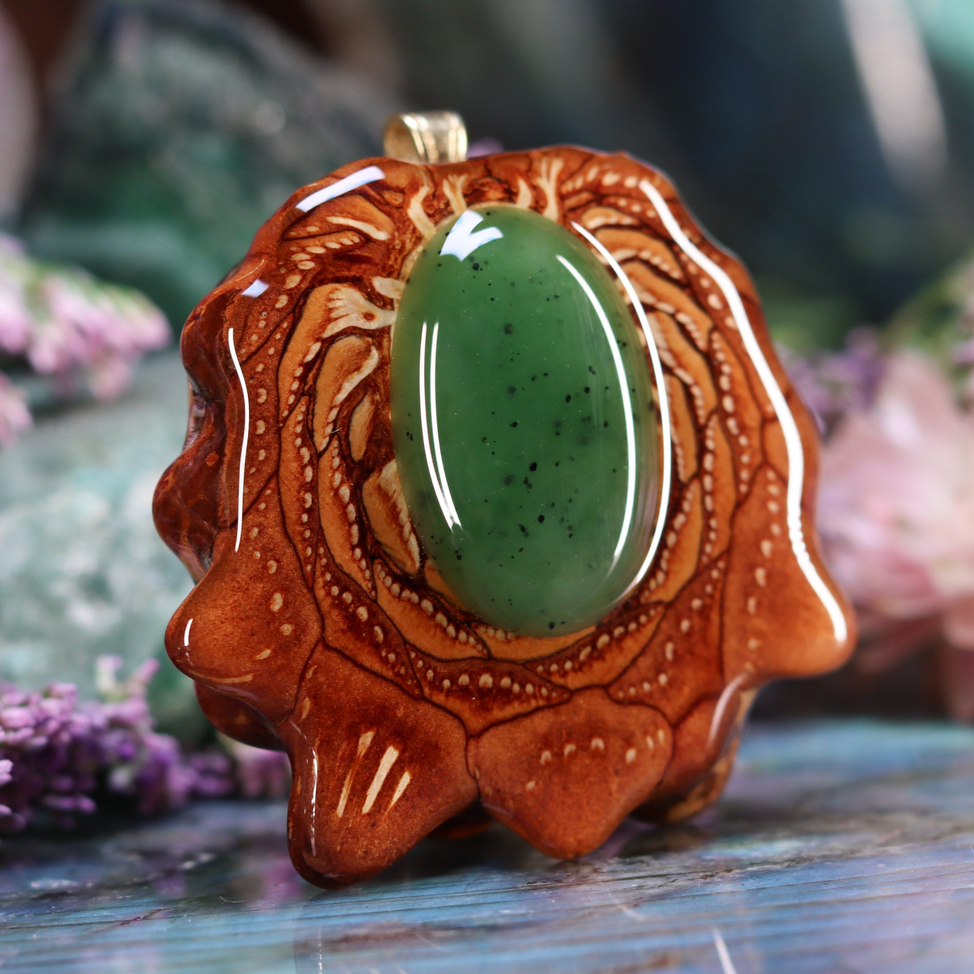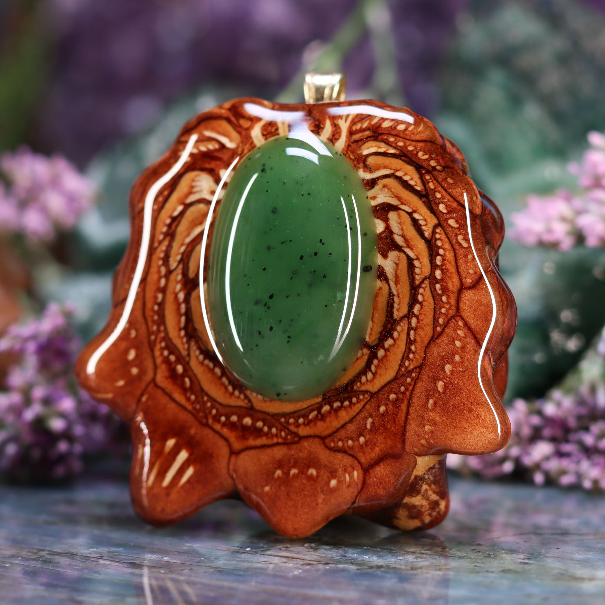 Every pinecone pendant is an elegant gift from Mother Nature -- unveiling the ornate Sacred Geometry hidden at the center of one of the world's densest Pinecones. Because only one cross-section is taken from the "heart" of each Cone, every pendant is absolutely unique, and truly one-of-a-kind.