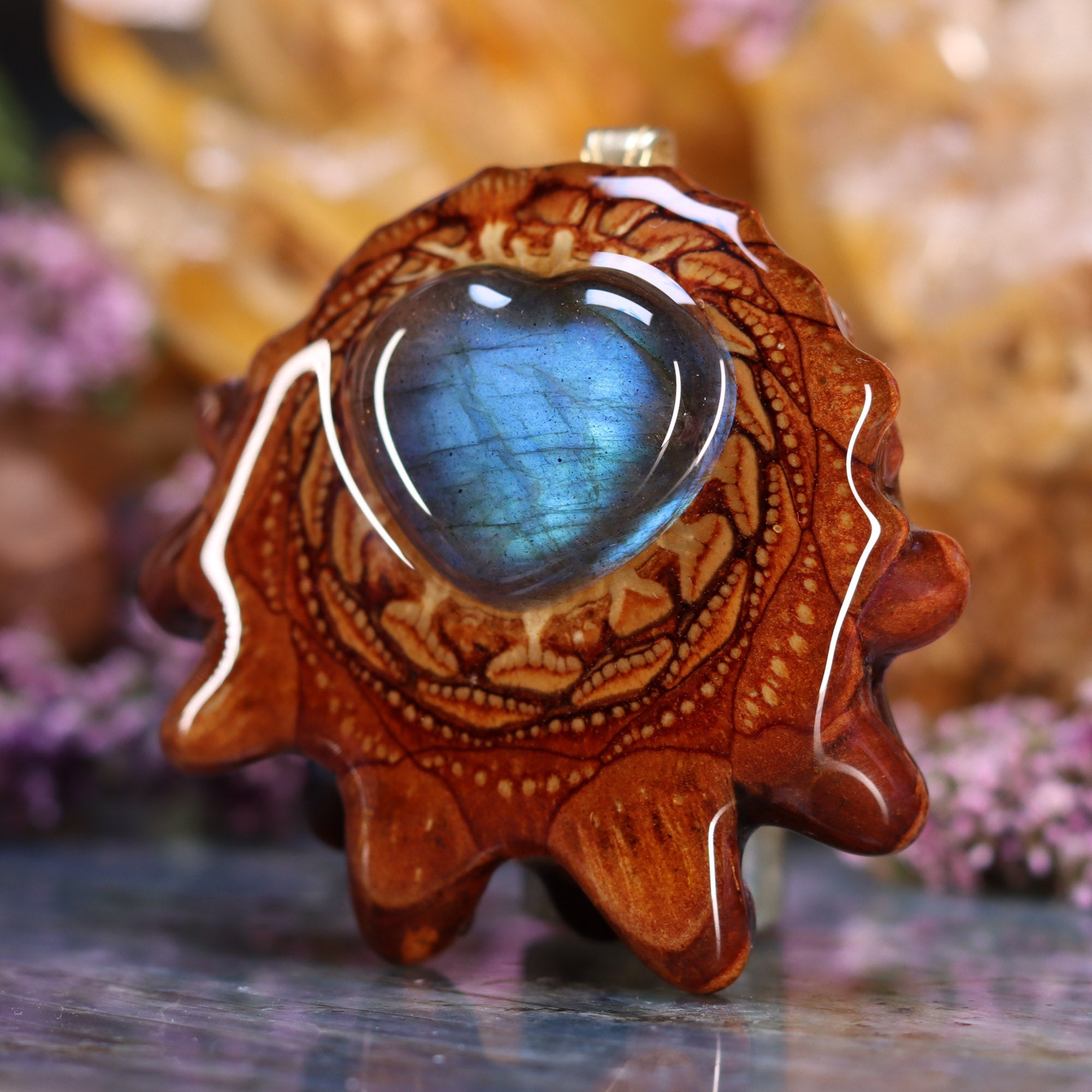 Every pinecone pendant is an elegant gift from Mother Nature -- unveiling the ornate Sacred Geometry hidden at the center of one of the world's densest Pinecones. Because only one cross-section is taken from the "heart" of each Cone, every pendant is absolutely unique, and truly one-of-a-kind.