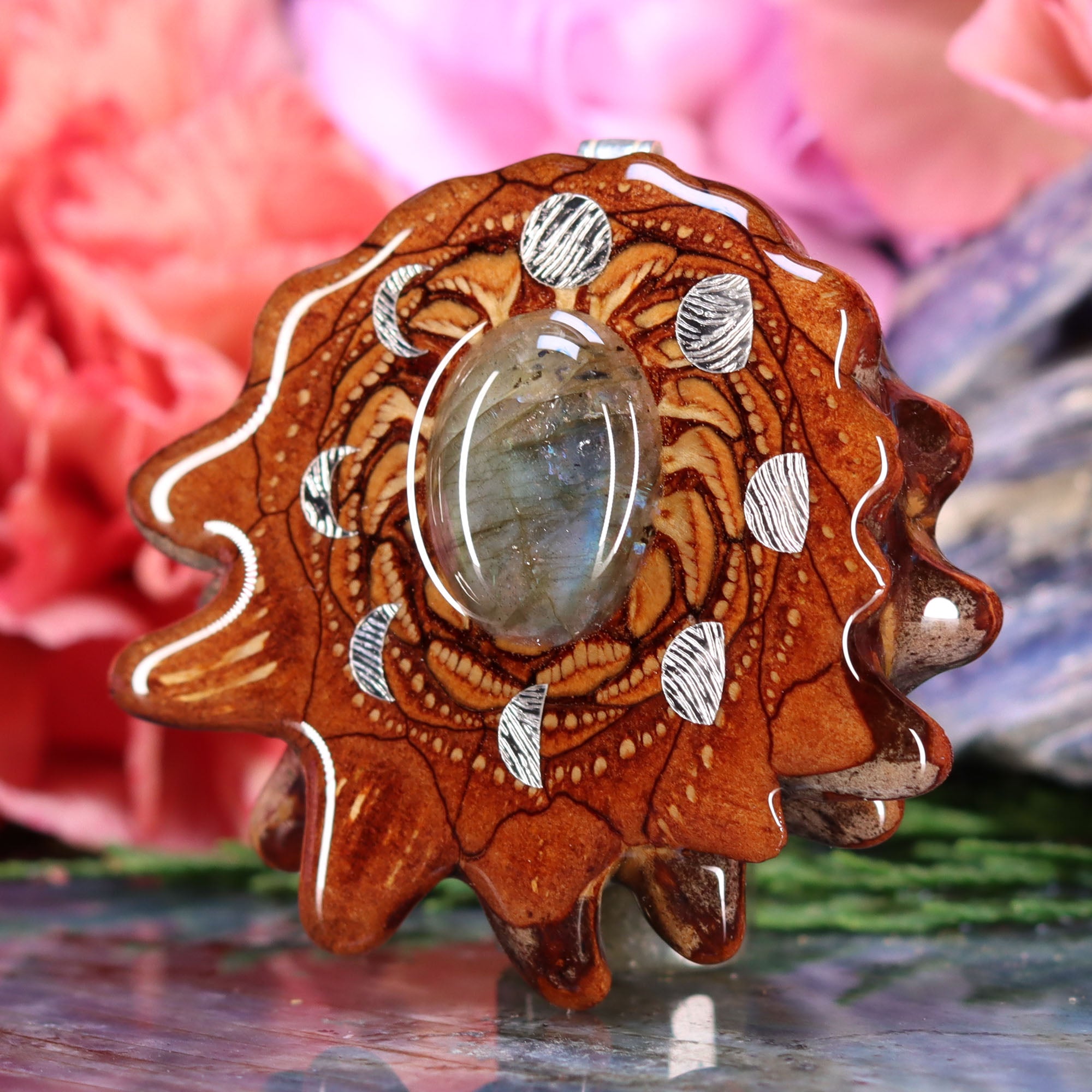 Every pinecone pendant is an elegant gift from Mother Nature -- unveiling the ornate Sacred Geometry hidden at the center of one of the world's densest Pinecones. Because only one cross-section is taken from the "heart" of each Cone, every pendant is absolutely unique, and truly one-of-a-kind.