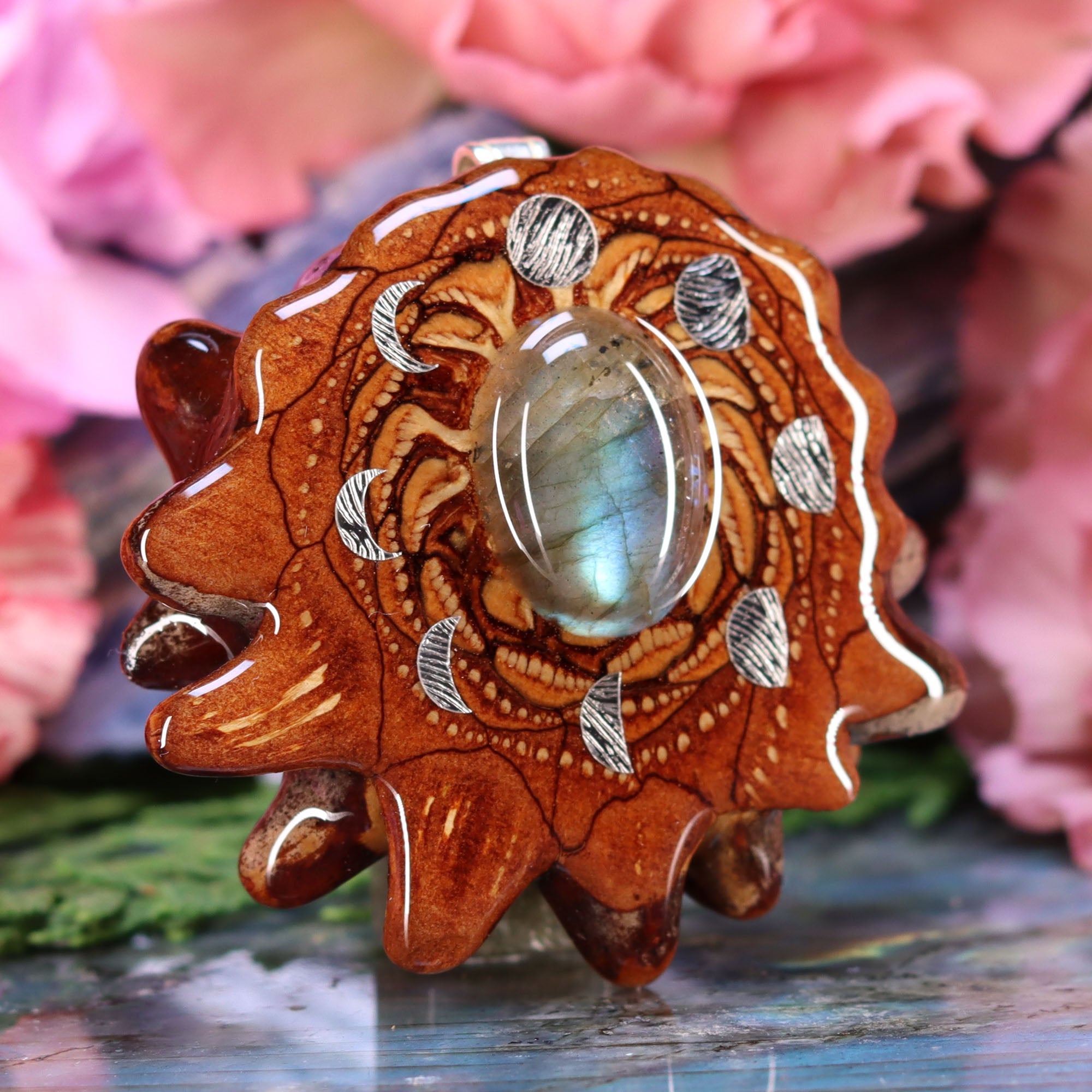 This Pinecone has been blessed with the Moon Cycles, cast in Sterling Silver. The moon has long been held as a sacred symbol for rebirth and change with each phase bringing new opportunities for growth.
