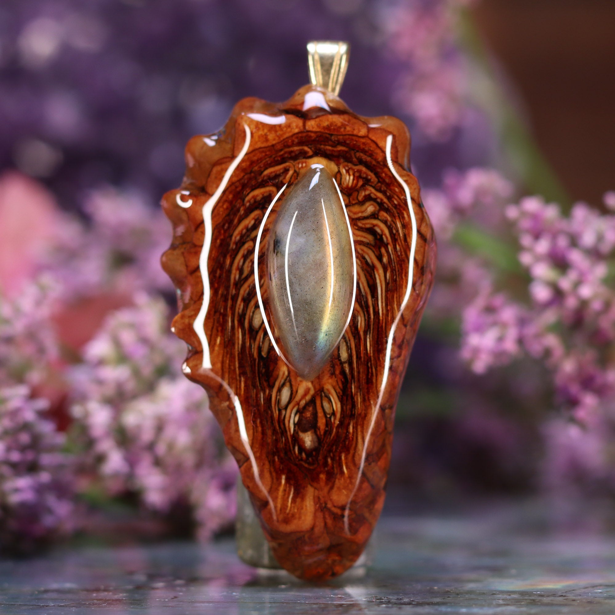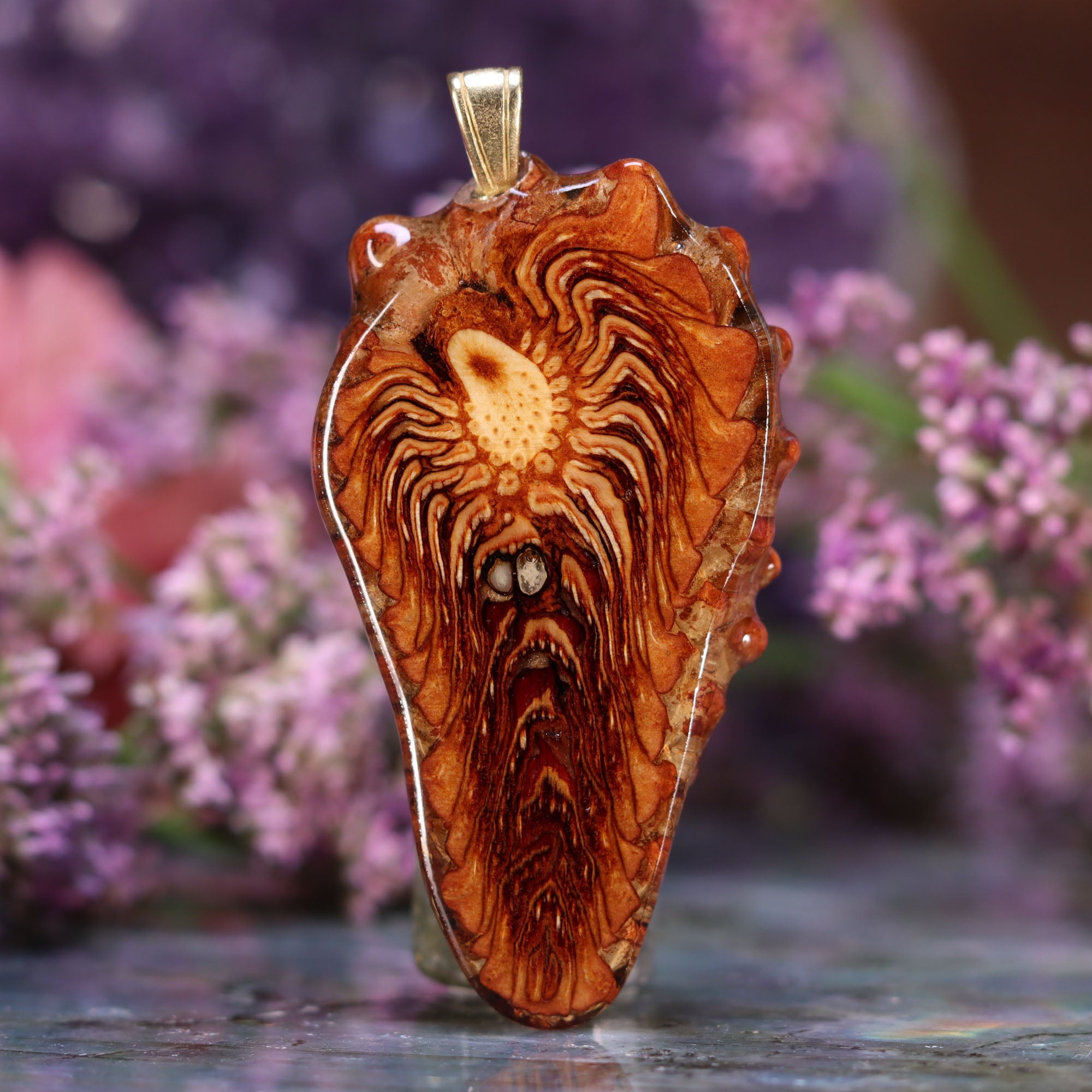 Every pinecone pendant is an elegant gift from Mother Nature -- unveiling the ornate Sacred Geometry hidden at the center of one of the world's densest Pinecones. Because only one cross-section is taken from the "heart" of each Cone, every pendant is absolutely unique, and truly one-of-a-kind.