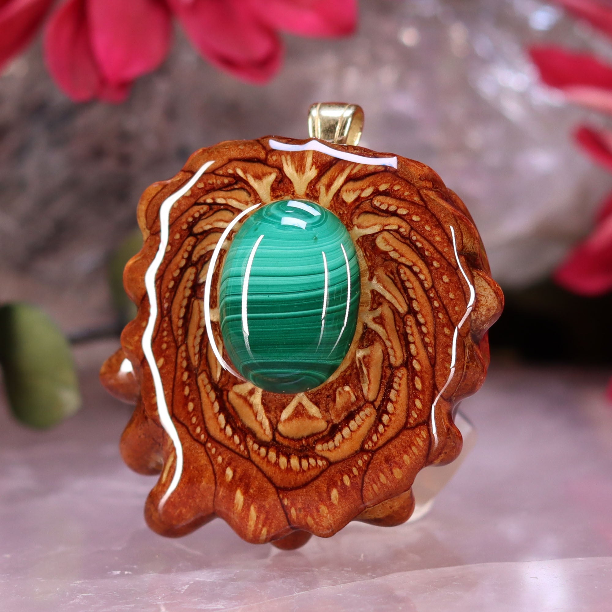 Every pinecone pendant is an elegant gift from Mother Nature -- unveiling the ornate Sacred Geometry hidden at the center of one of the world's densest Pinecones. Because only one cross-section is taken from the "heart" of each Cone, every pendant is absolutely unique, and truly one-of-a-kind.