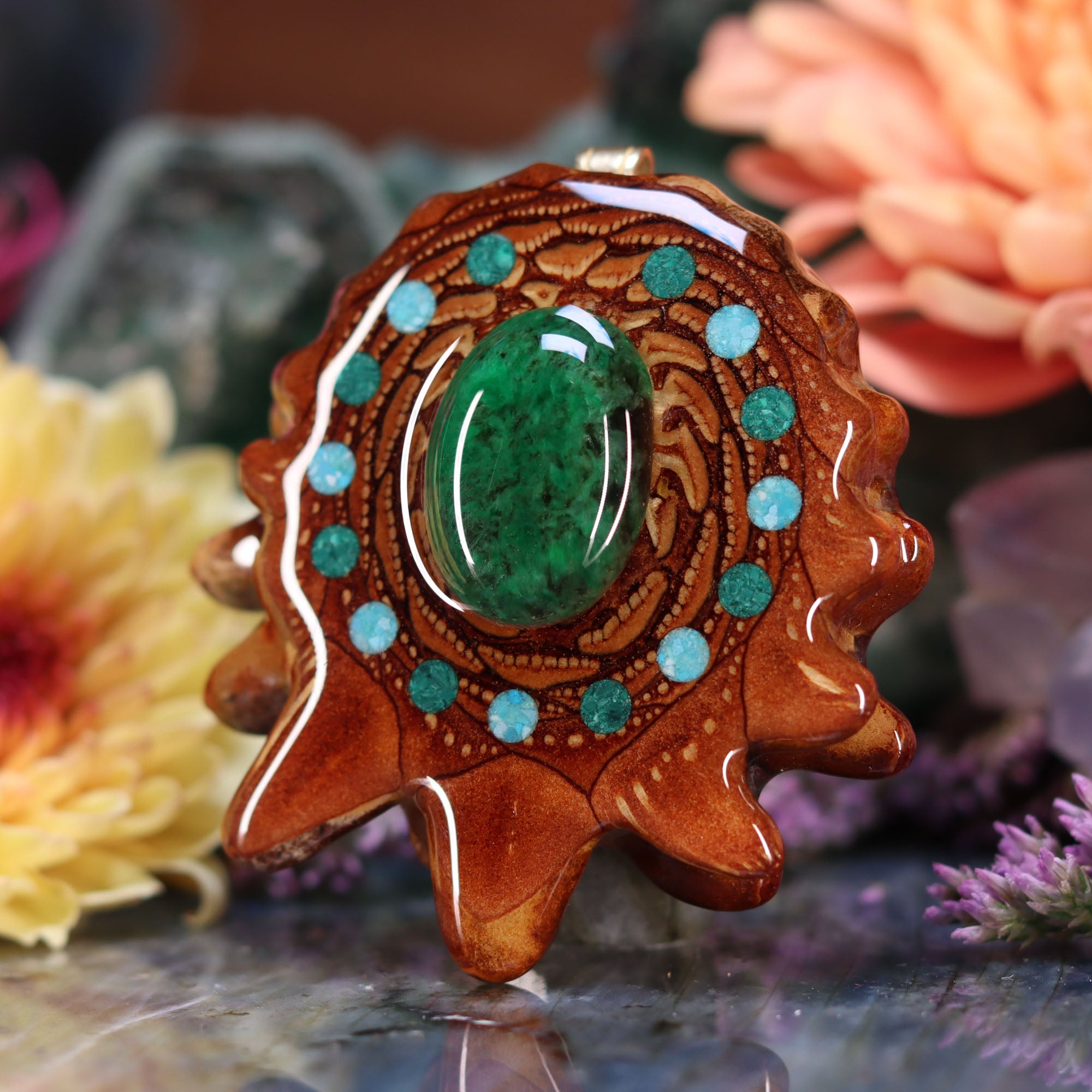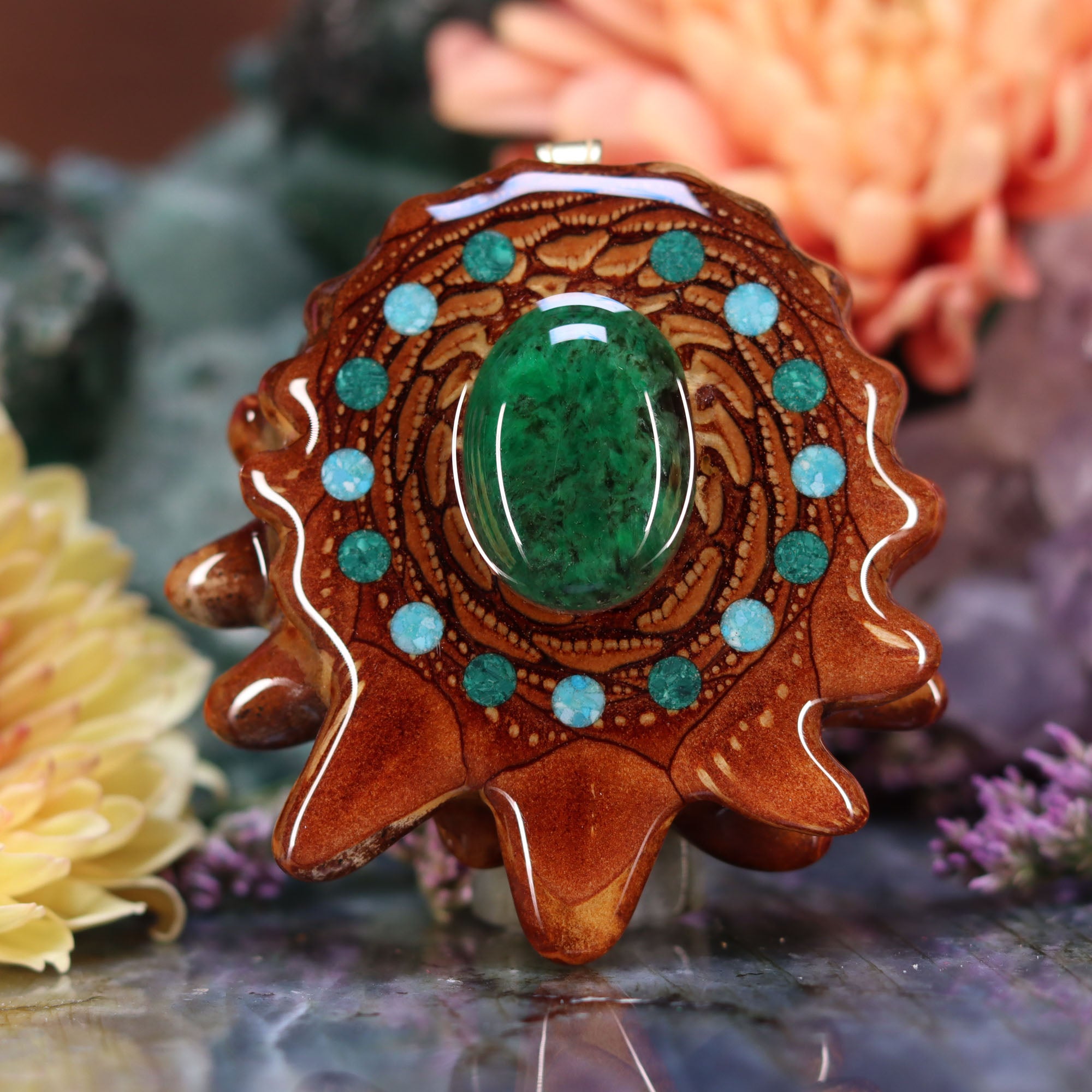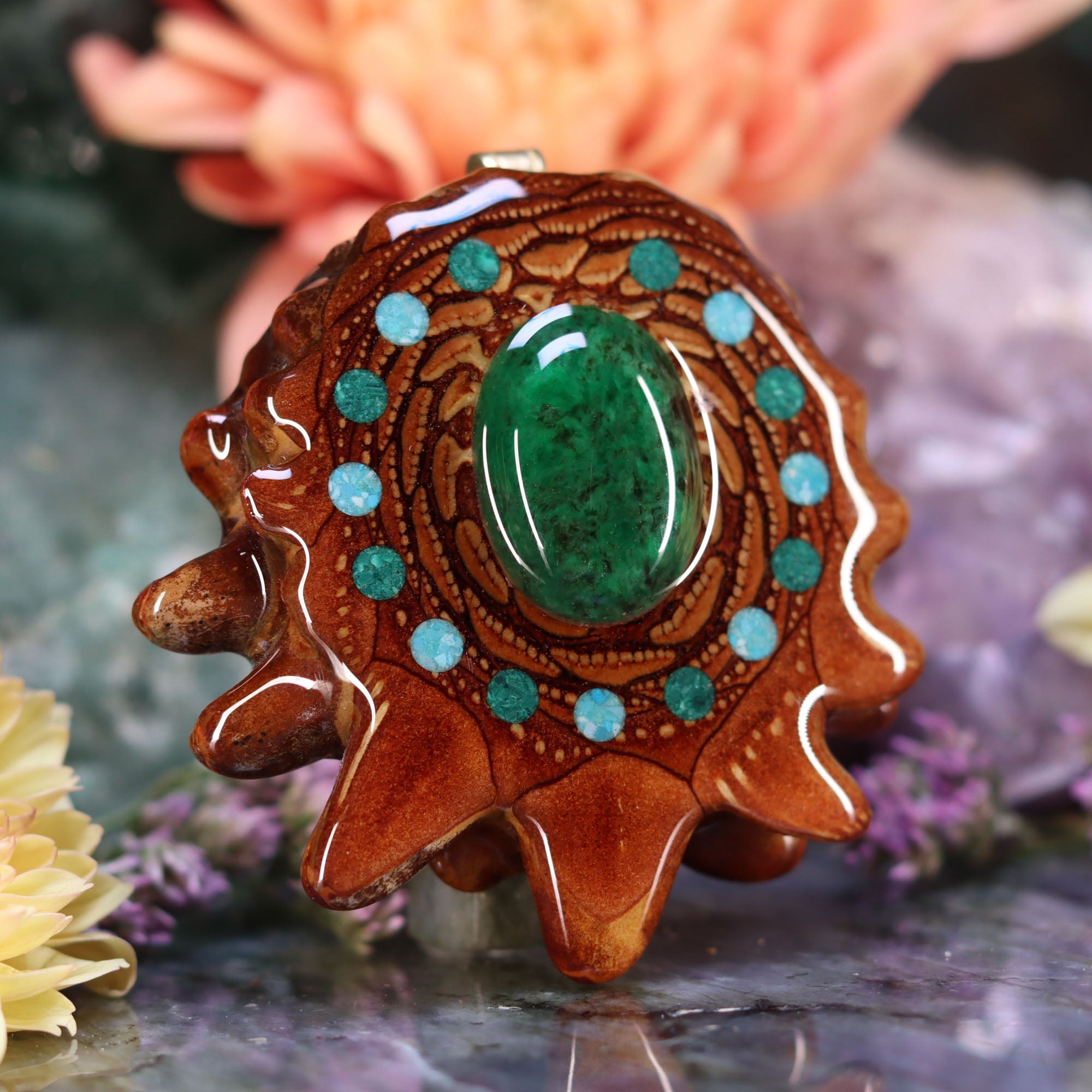 Every pinecone pendant is an elegant gift from Mother Nature -- unveiling the ornate Sacred Geometry hidden at the center of one of the world's densest Pinecones. Because only one cross-section is taken from the "heart" of each Cone, every pendant is absolutely unique, and truly one-of-a-kind.