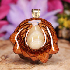 Every pinecone pendant is an elegant gift from Mother Nature -- unveiling the ornate Sacred Geometry hidden at the center of one of the world's densest Pinecones. Because only one cross-section is taken from the "heart" of each Cone, every pendant is absolutely unique, and truly one-of-a-kind.