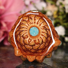 Every pinecone pendant is an elegant gift from Mother Nature -- unveiling the ornate Sacred Geometry hidden at the center of one of the world's densest Pinecones. Because only one cross-section is taken from the "heart" of each Cone, every pendant is absolutely unique, and truly one-of-a-kind.