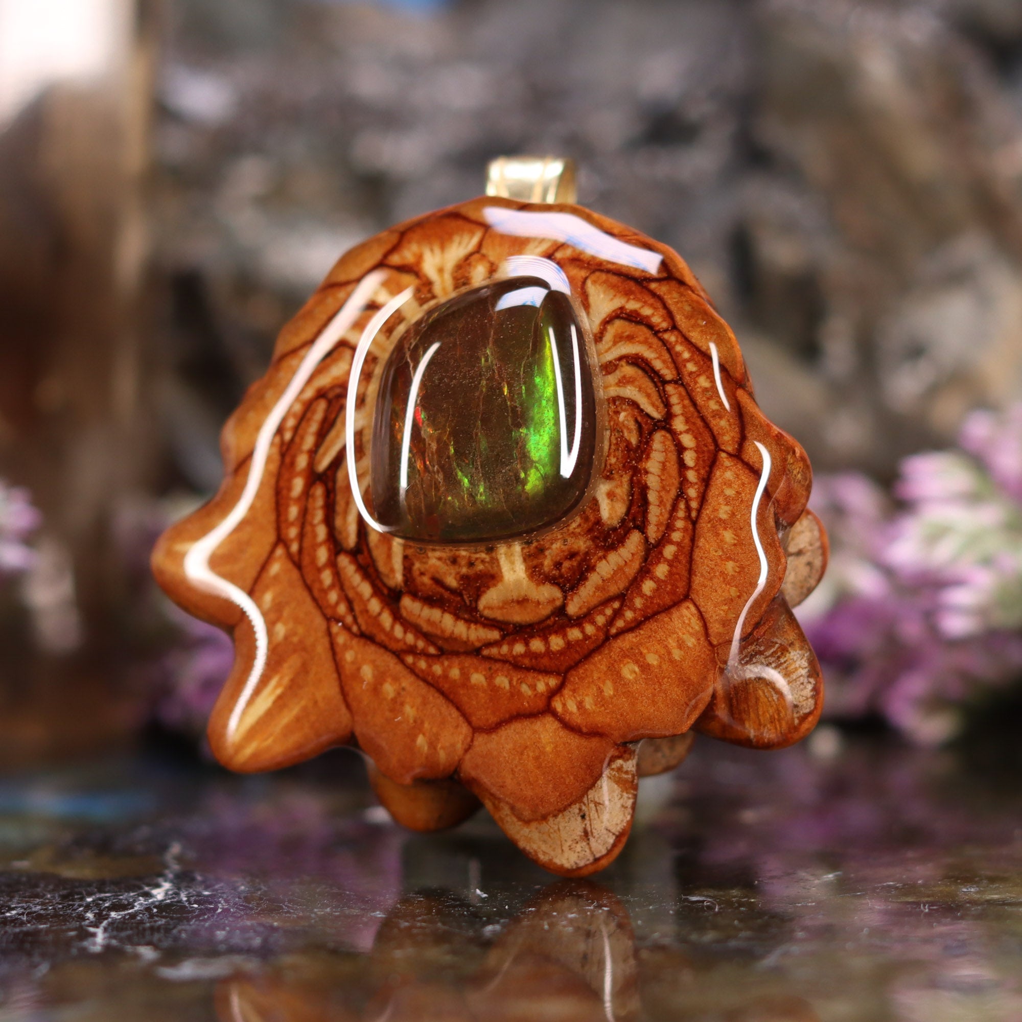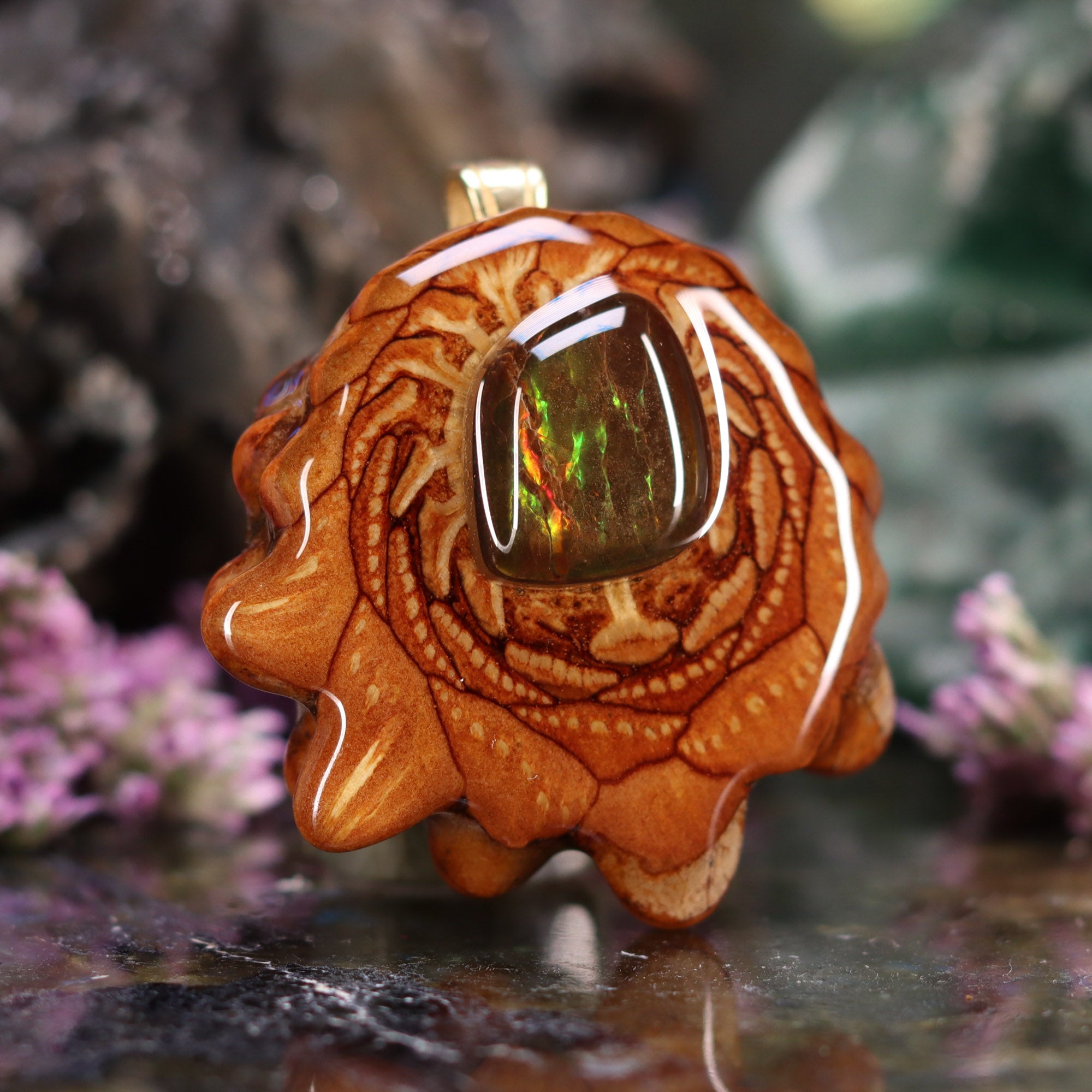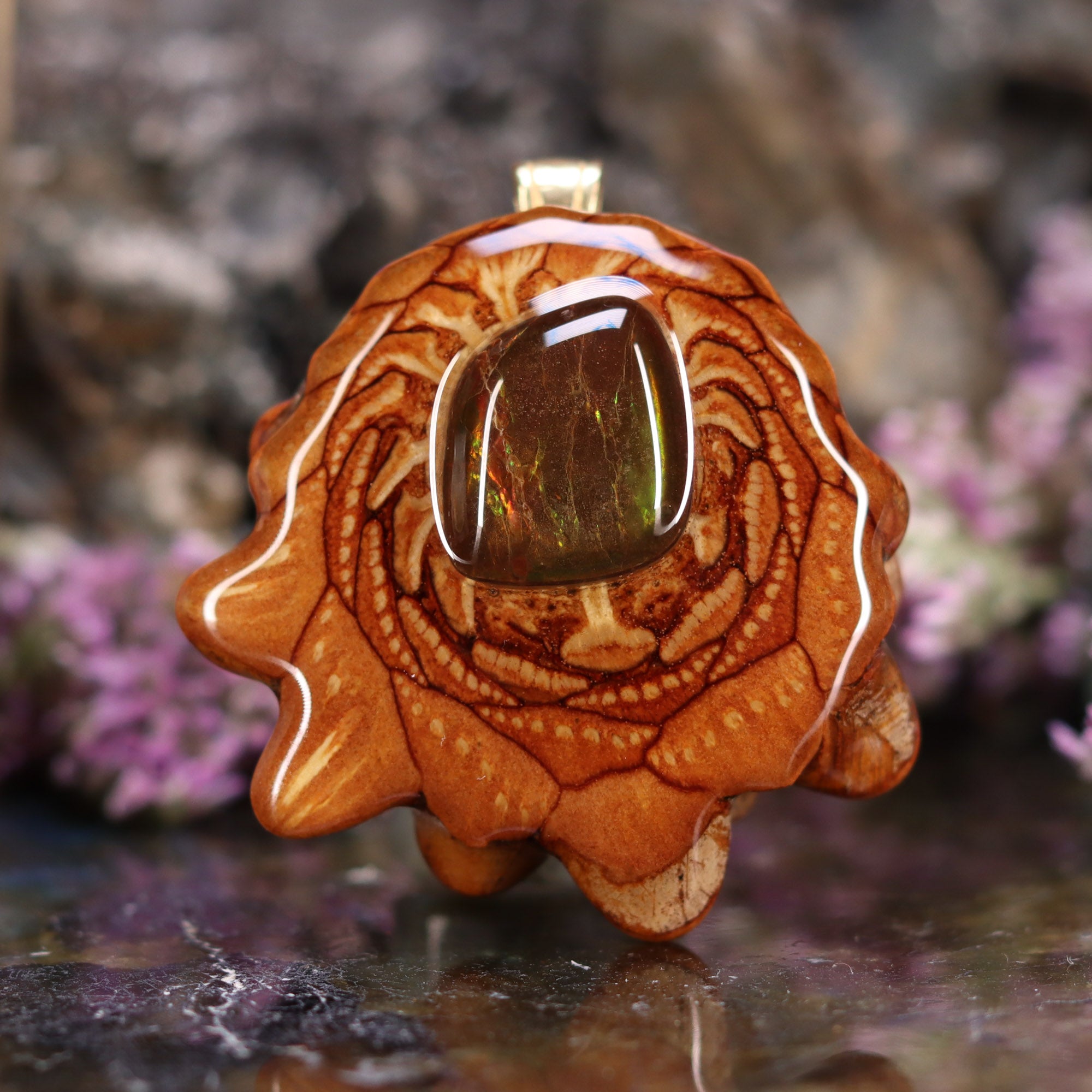 Every pinecone pendant is an elegant gift from Mother Nature -- unveiling the ornate Sacred Geometry hidden at the center of one of the world's densest Pinecones. Because only one cross-section is taken from the "heart" of each Cone, every pendant is absolutely unique, and truly one-of-a-kind.