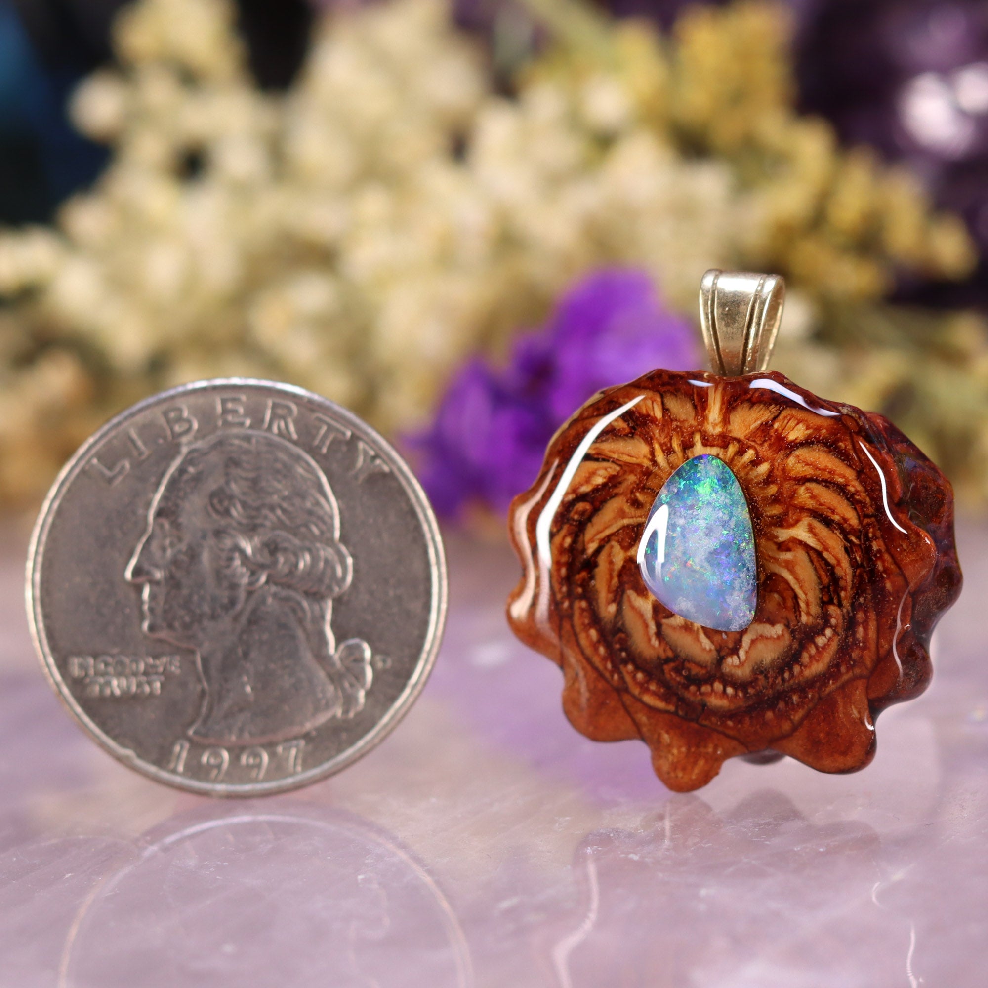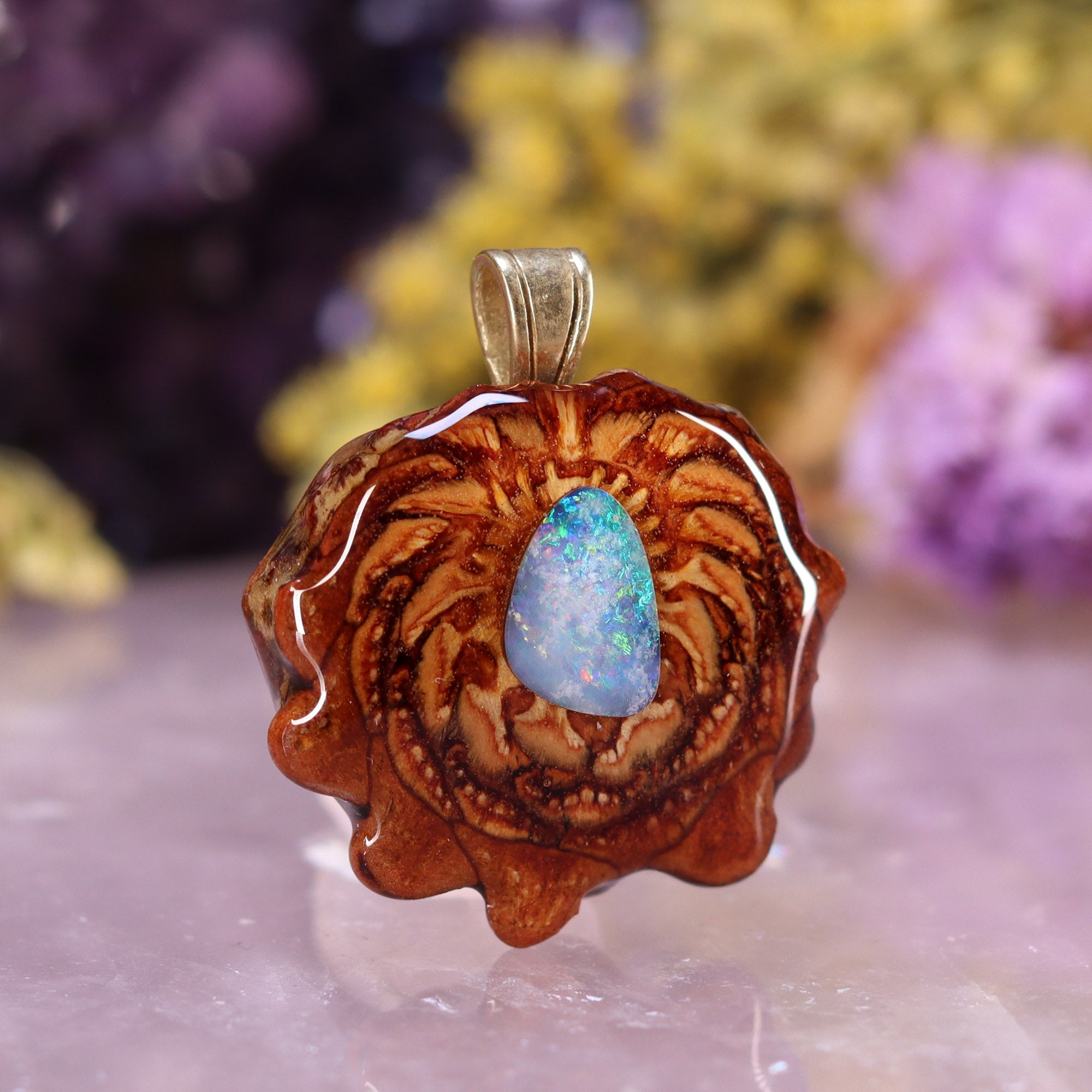 Every pinecone pendant is an elegant gift from Mother Nature -- unveiling the ornate Sacred Geometry hidden at the center of one of the world's densest Pinecones. Because only one cross-section is taken from the "heart" of each Cone, every pendant is absolutely unique, and truly one-of-a-kind.