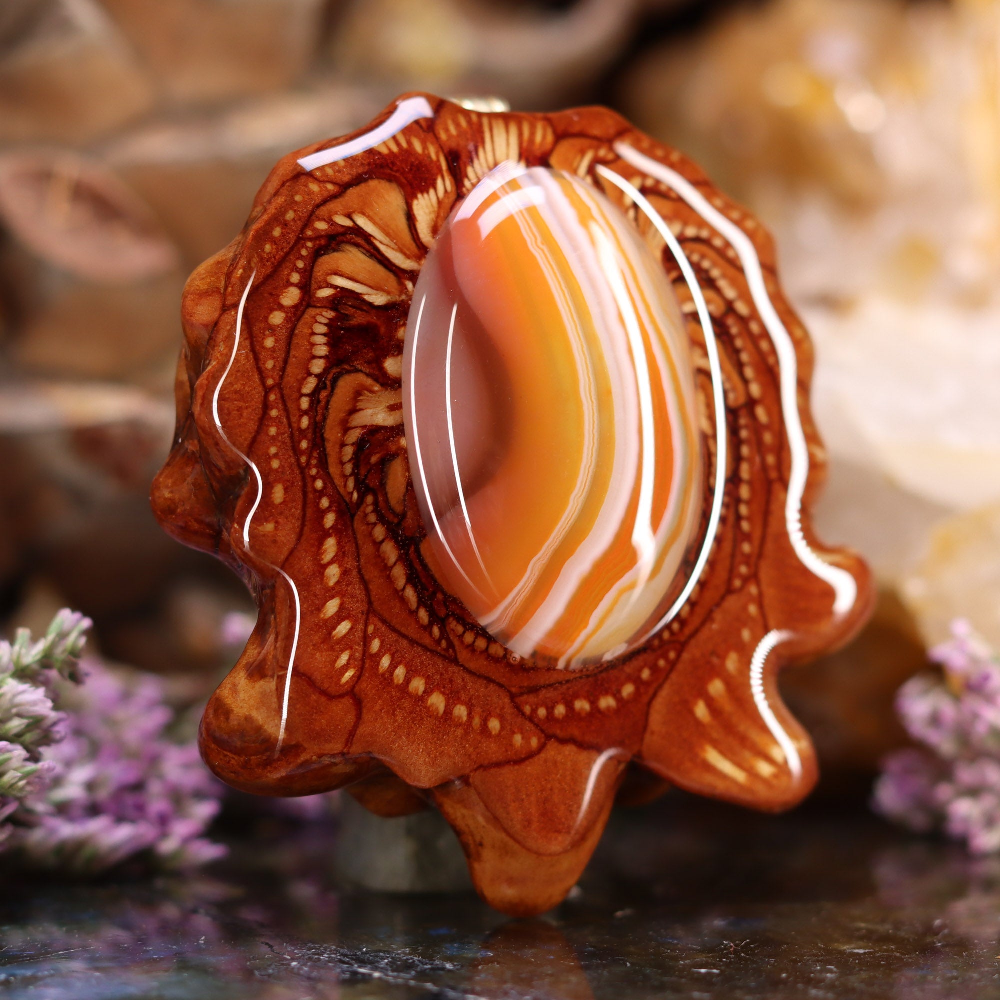 Every pinecone pendant is an elegant gift from Mother Nature -- unveiling the ornate Sacred Geometry hidden at the center of one of the world's densest Pinecones. Because only one cross-section is taken from the "heart" of each Cone, every pendant is absolutely unique, and truly one-of-a-kind.