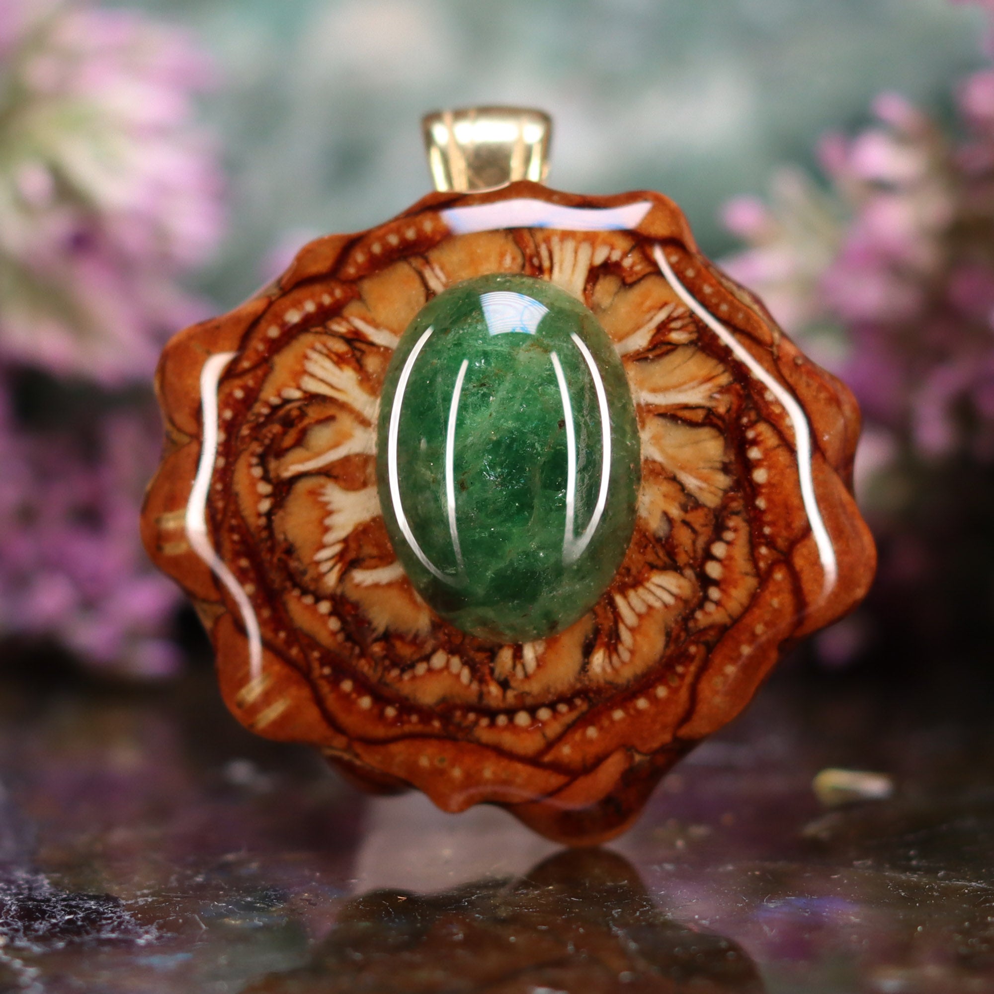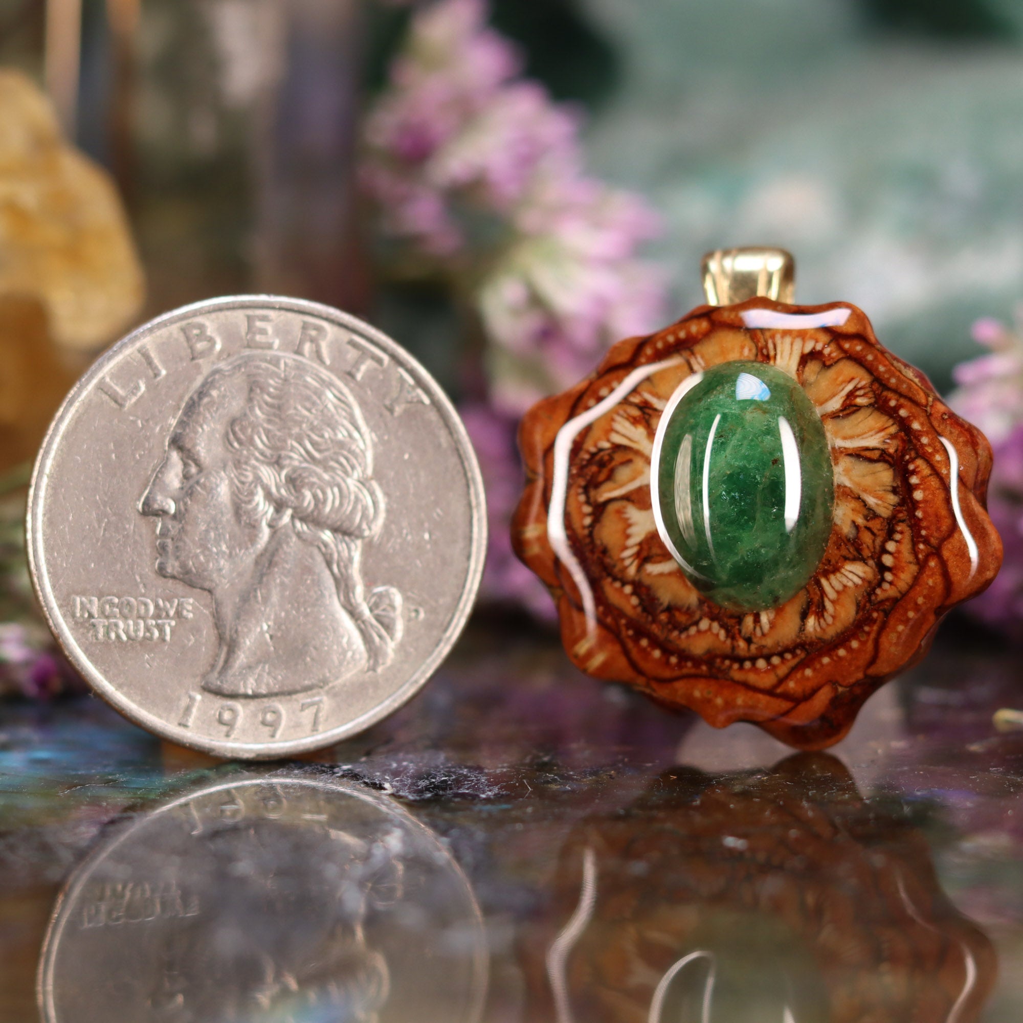 Every pinecone pendant is an elegant gift from Mother Nature -- unveiling the ornate Sacred Geometry hidden at the center of one of the world's densest Pinecones. Because only one cross-section is taken from the "heart" of each Cone, every pendant is absolutely unique, and truly one-of-a-kind.