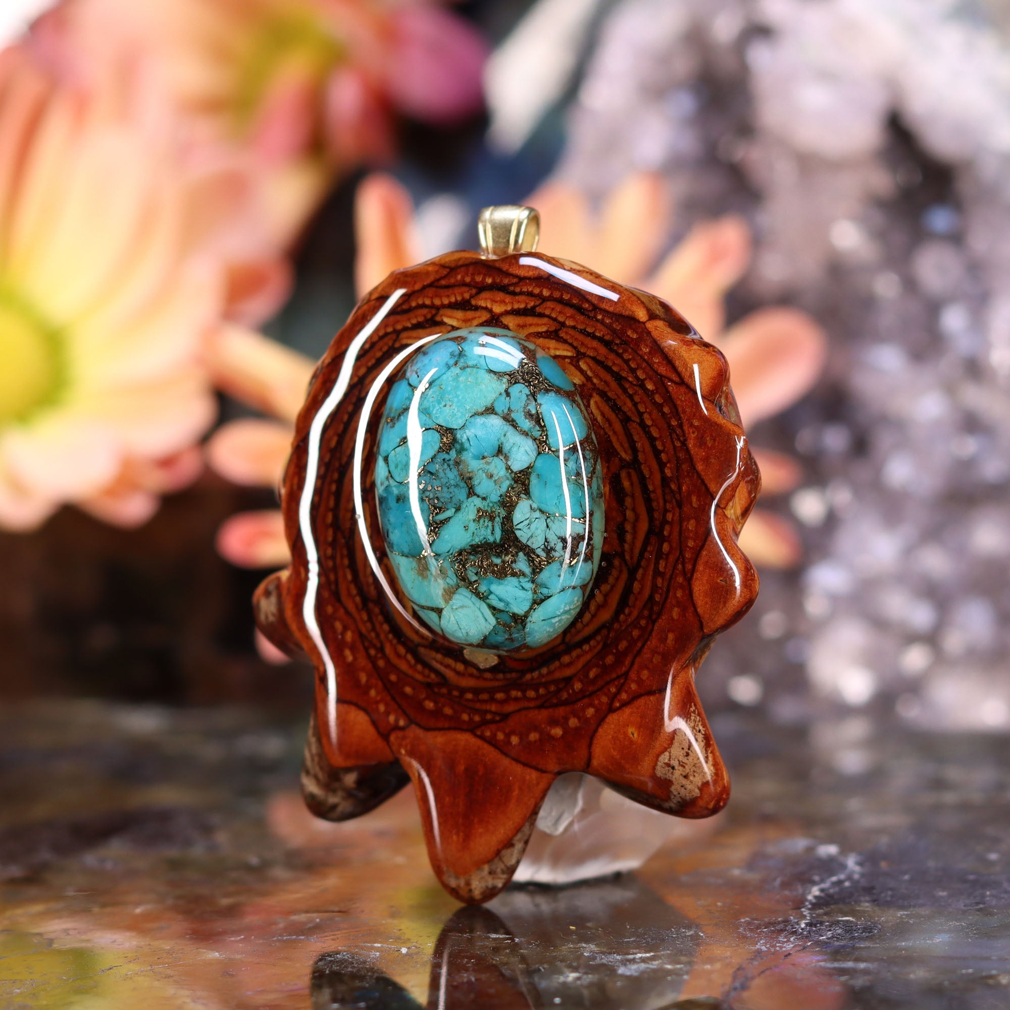 Every pinecone pendant is an elegant gift from Mother Nature -- unveiling the ornate Sacred Geometry hidden at the center of one of the world's densest Pinecones. Because only one cross-section is taken from the "heart" of each Cone, every pendant is absolutely unique, and truly one-of-a-kind.