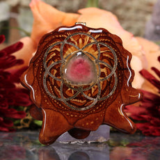This pendant has been paired with a miniature “Orgone Generator” set with Pink Tourmaline to awaken body, mind, and spirit! A magic mix of metal shavings, resin, crystal fragments, and a quartz crystal specially crafted by Third Eye Pinecones help form this uniquely powerful spiritual device. Its benefits are said to be many, primarily because it is believed to draw in harmful ambient EMFs and bio-energy and transmute them within its internal crystalline matrix – which it then re-emits as positive biomagnetic energy.