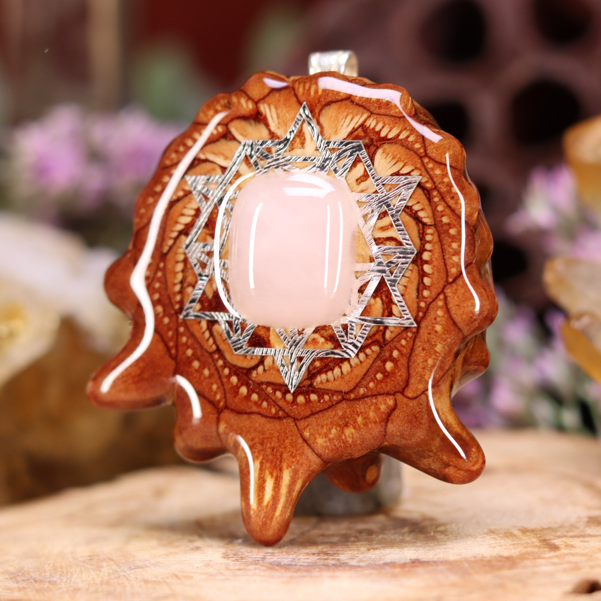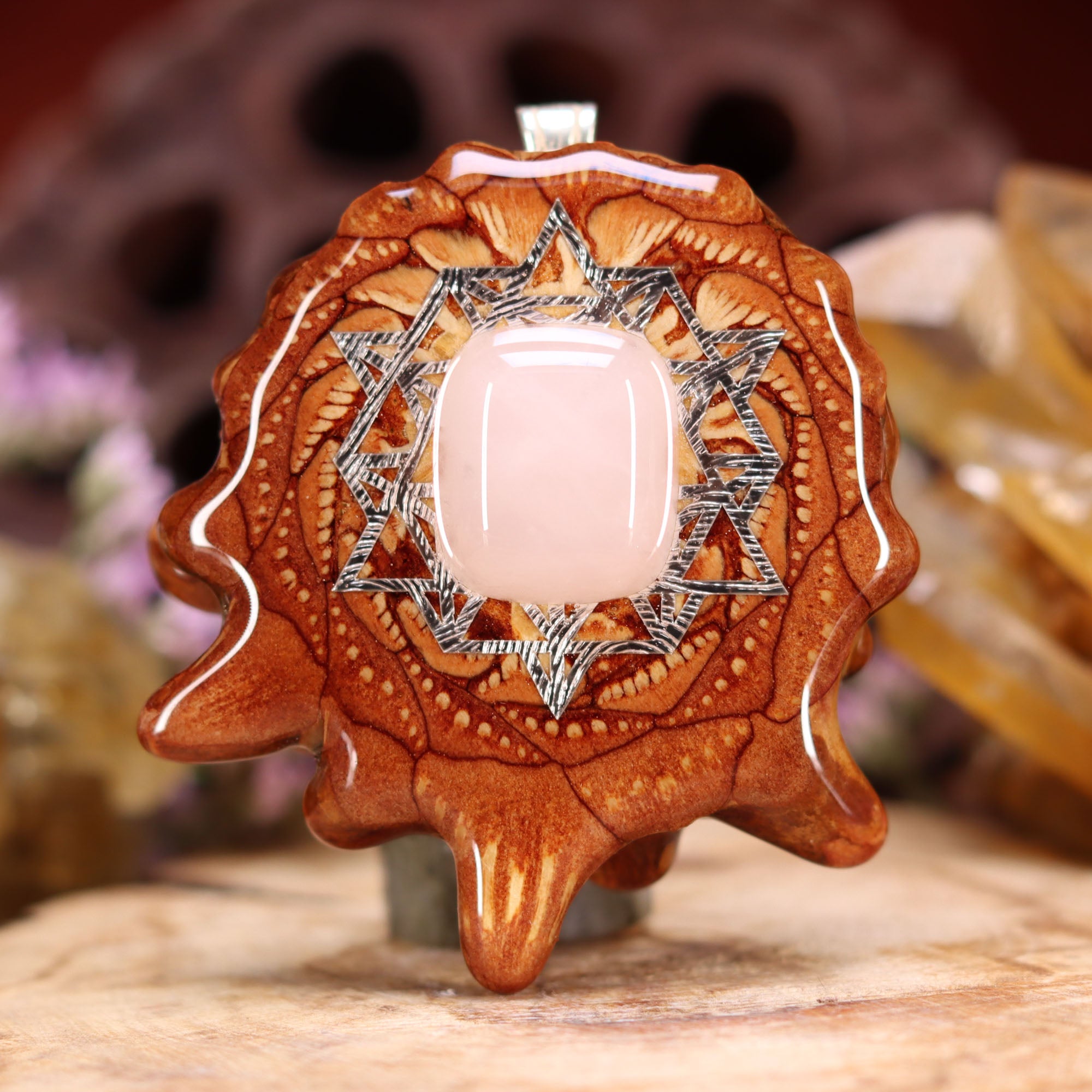 Rose Quartz with Silver 64 Star Tetrahedron