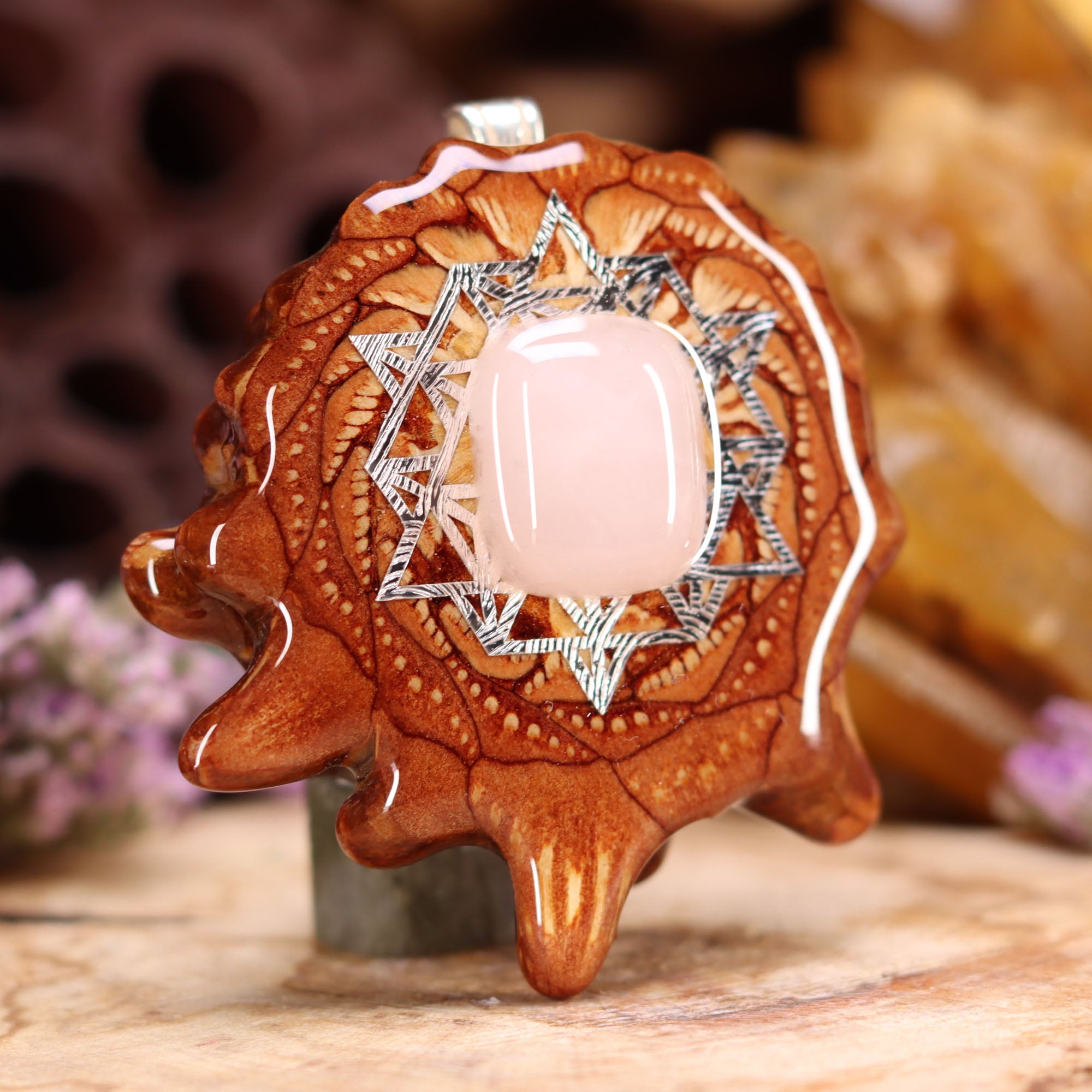 Every pinecone pendant is an elegant gift from Mother Nature -- unveiling the ornate Sacred Geometry hidden at the center of one of the world's densest Pinecones. Because only one cross-section is taken from the "heart" of each Cone, every pendant is absolutely unique, and truly one-of-a-kind.