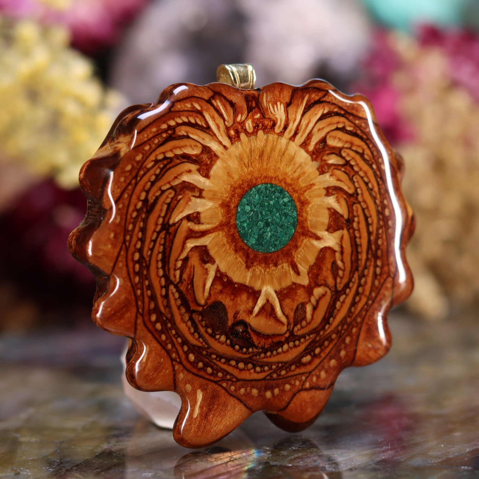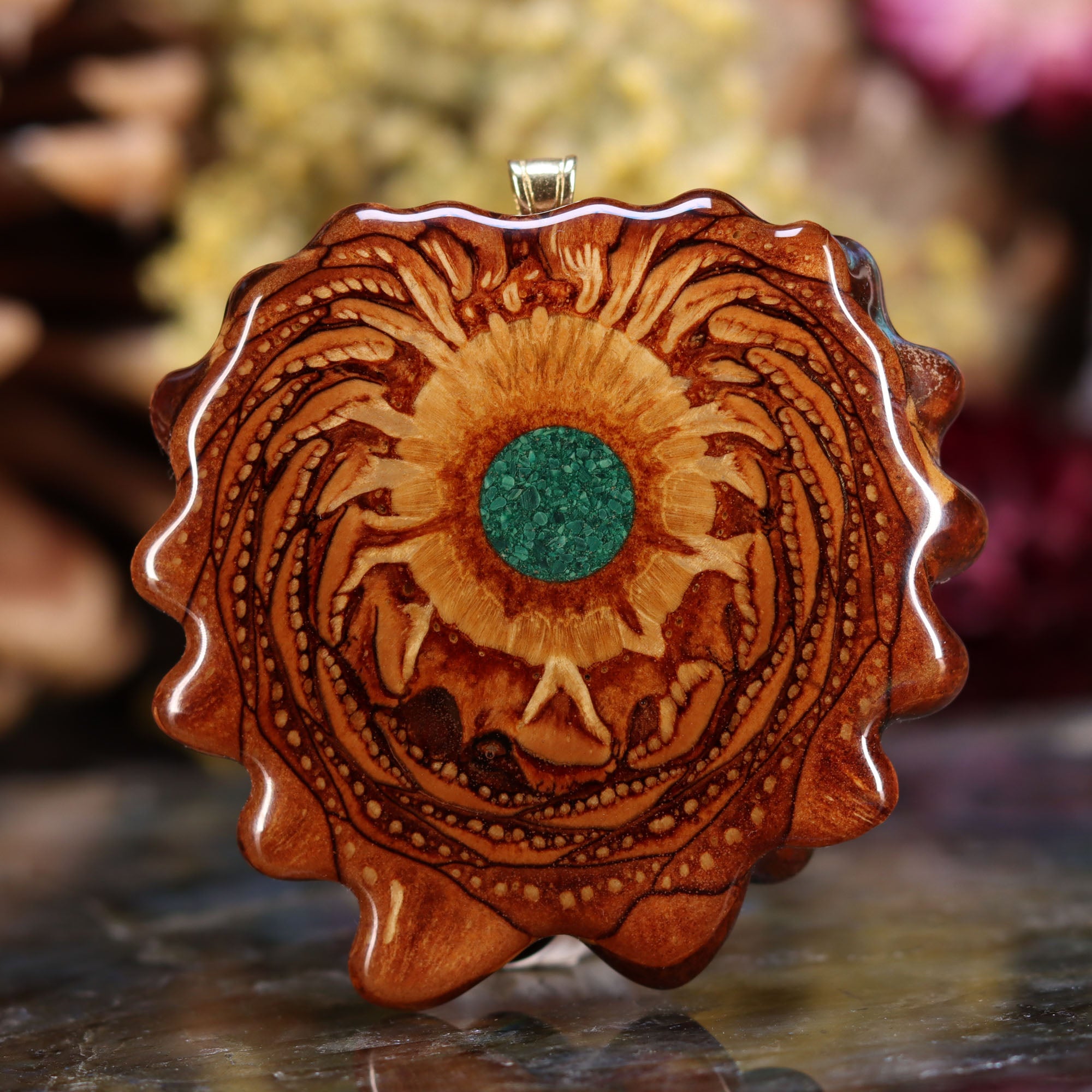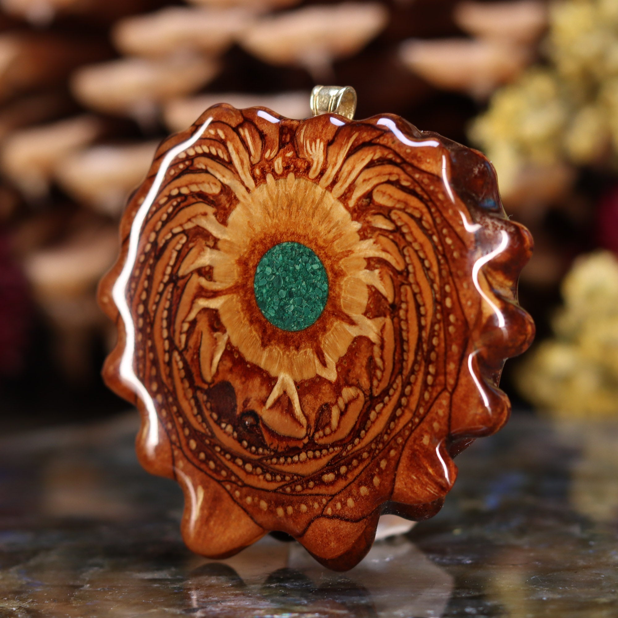 Every pinecone pendant is an elegant gift from Mother Nature -- unveiling the ornate Sacred Geometry hidden at the center of one of the world's densest Pinecones. Because only one cross-section is taken from the "heart" of each Cone, every pendant is absolutely unique, and truly one-of-a-kind.
