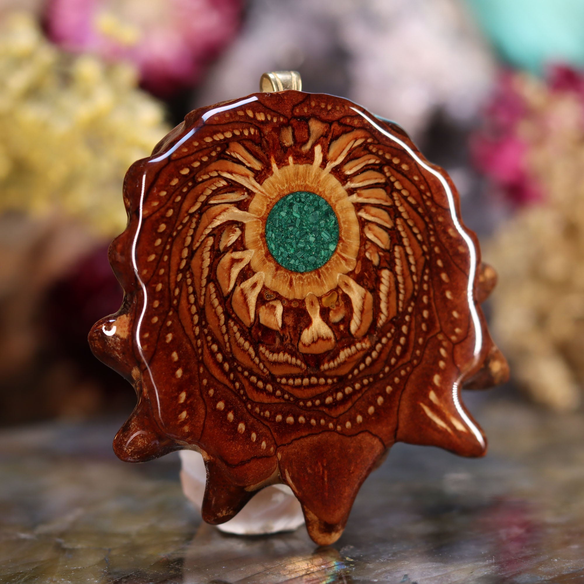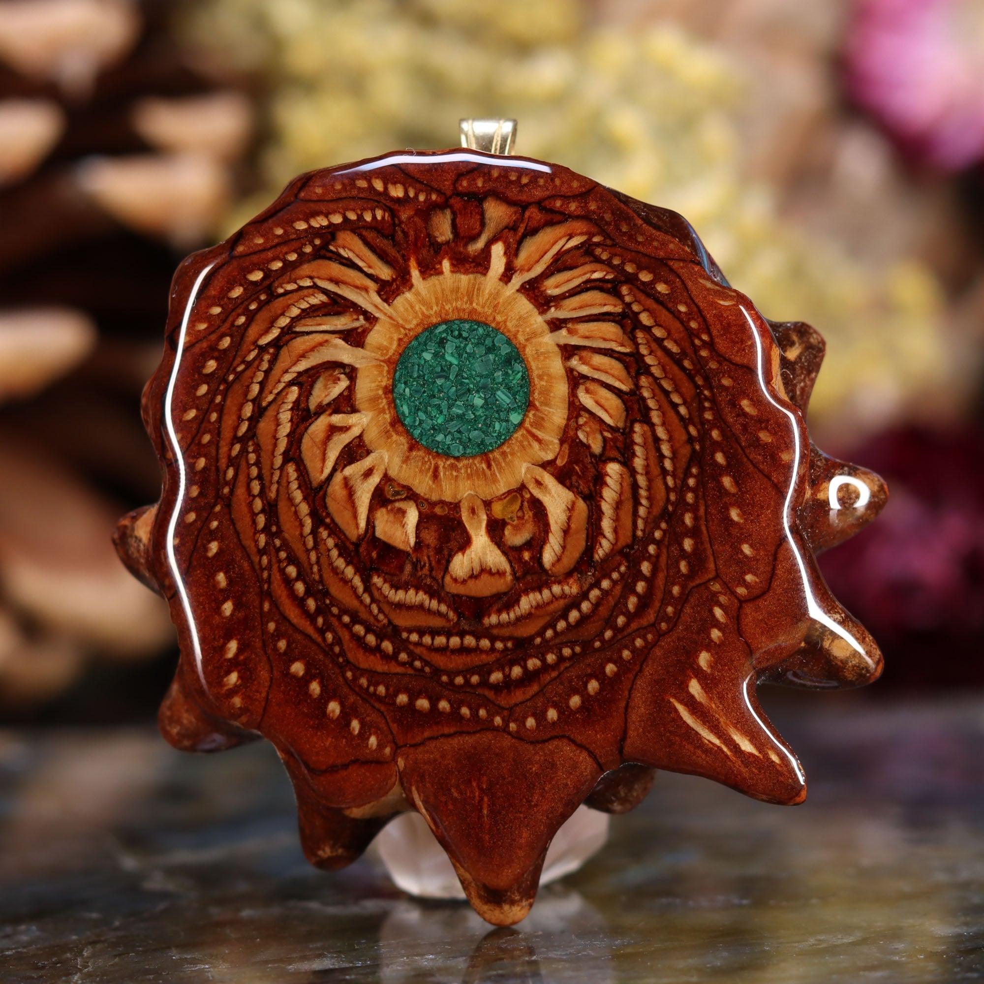 Every pinecone pendant is an elegant gift from Mother Nature -- unveiling the ornate Sacred Geometry hidden at the center of one of the world's densest Pinecones. Because only one cross-section is taken from the "heart" of each Cone, every pendant is absolutely unique, and truly one-of-a-kind.