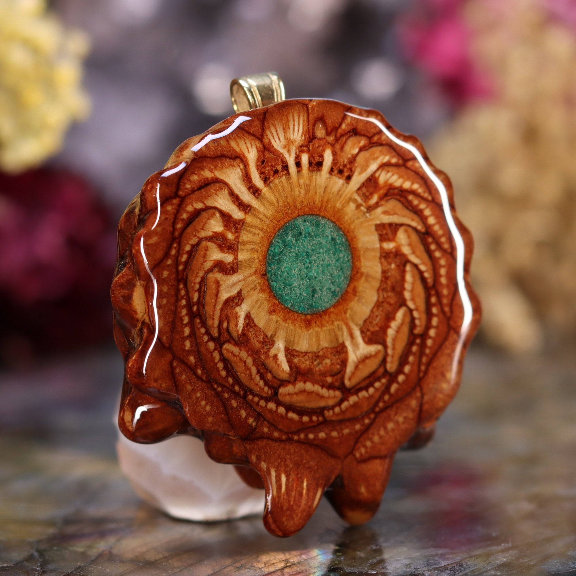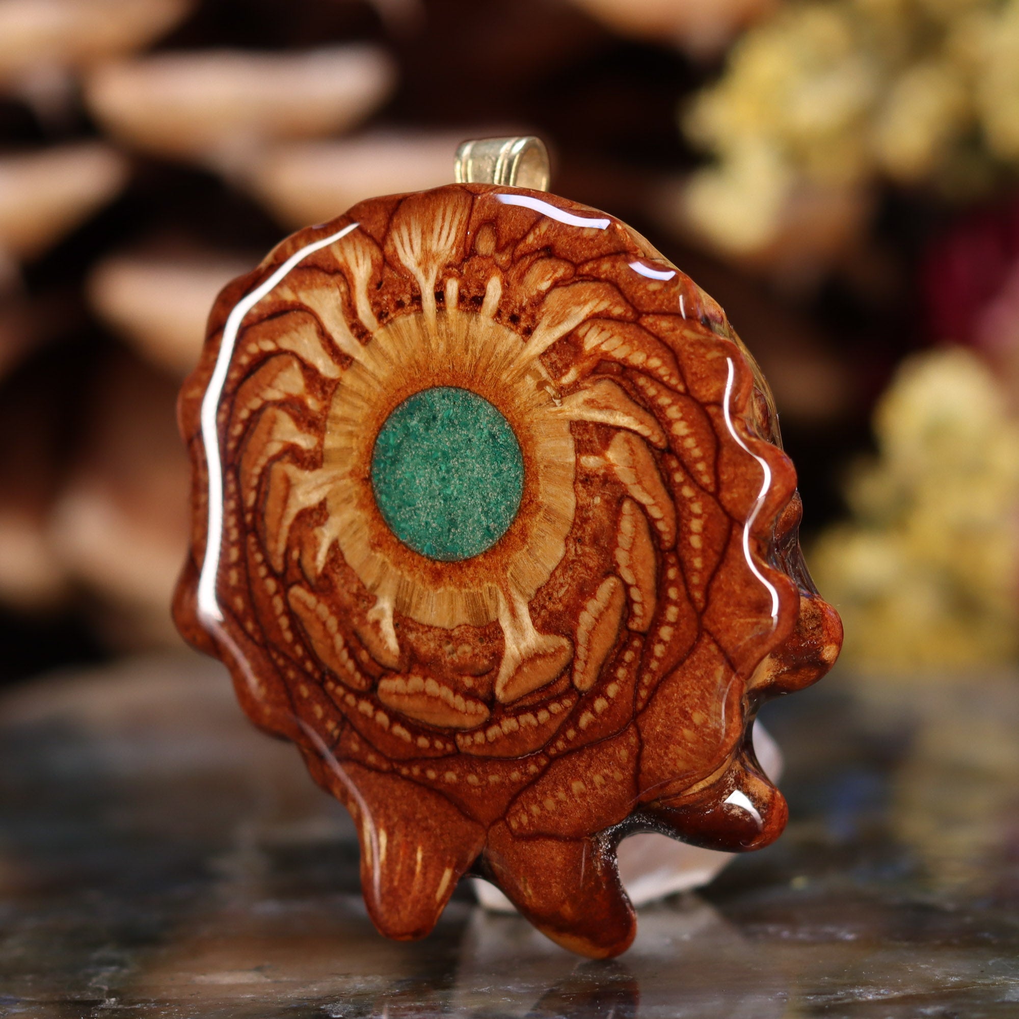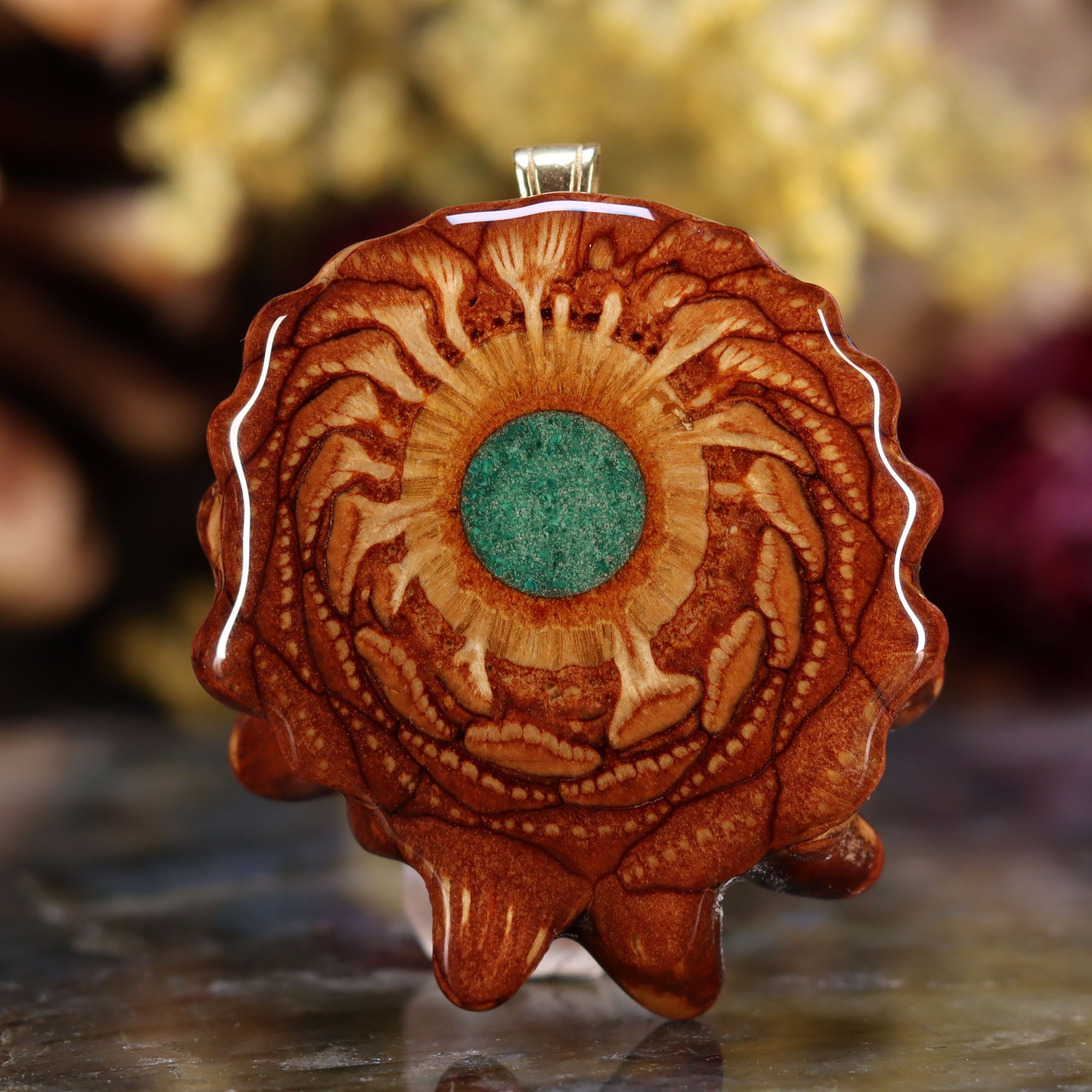 Every pinecone pendant is an elegant gift from Mother Nature -- unveiling the ornate Sacred Geometry hidden at the center of one of the world's densest Pinecones. Because only one cross-section is taken from the "heart" of each Cone, every pendant is absolutely unique, and truly one-of-a-kind.