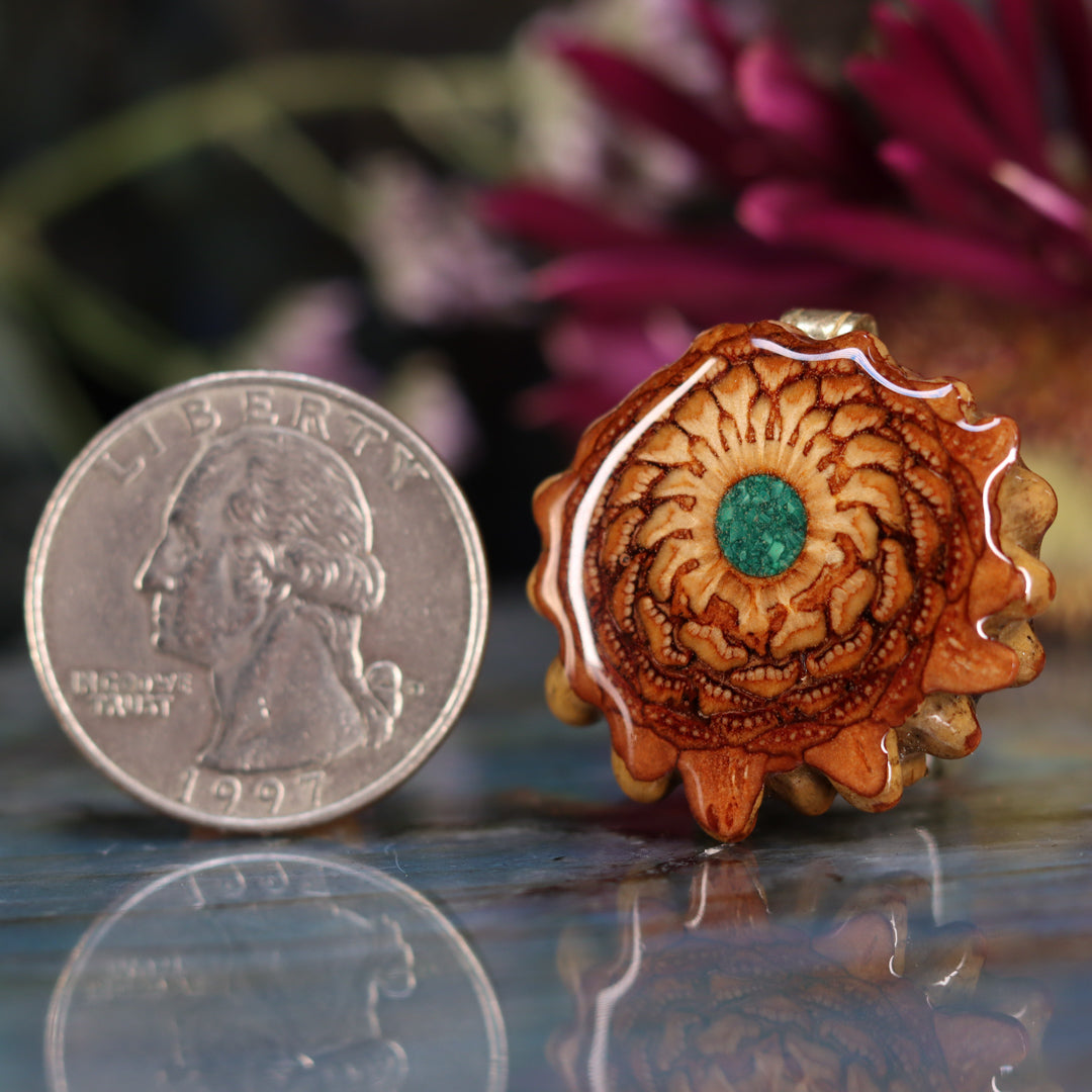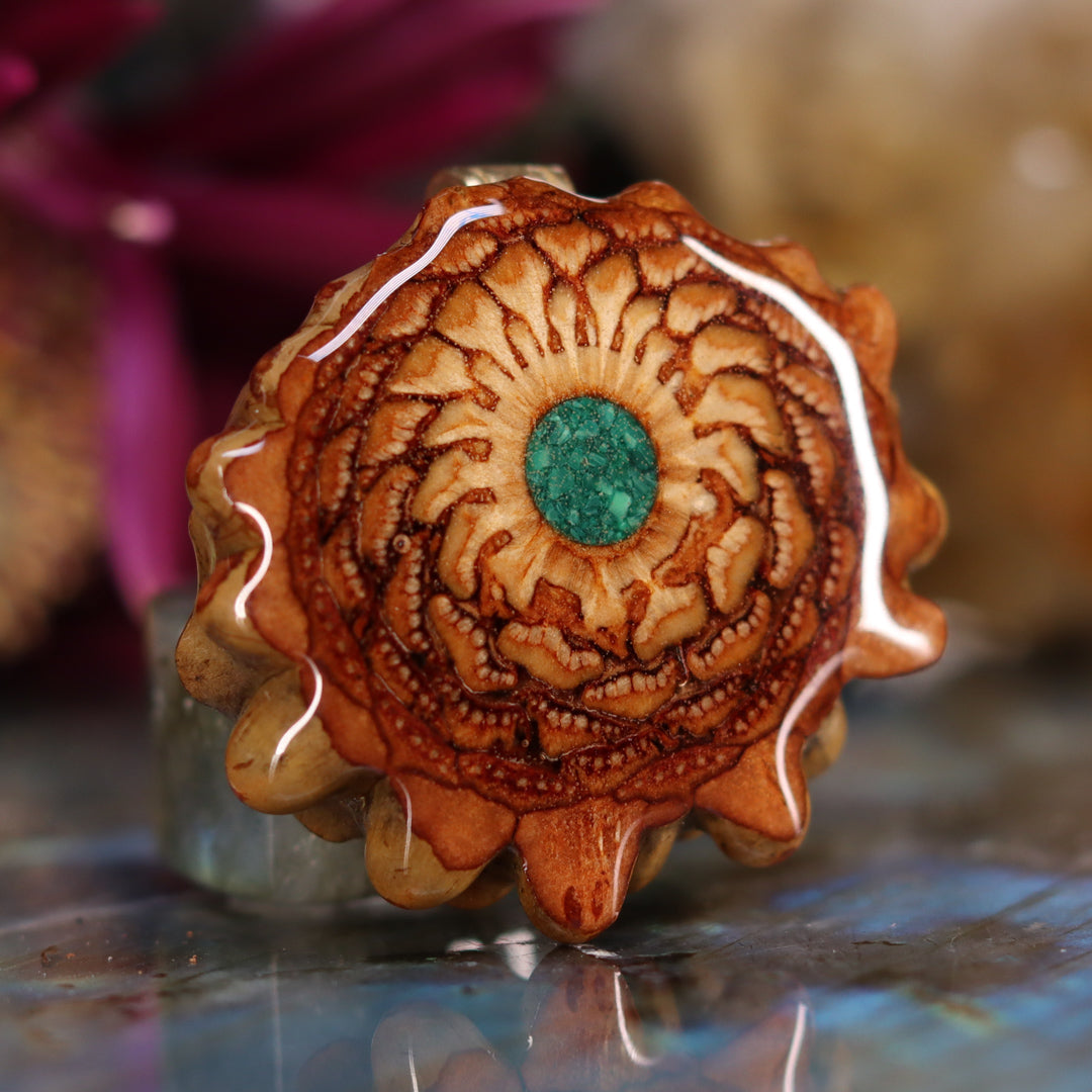 Every pinecone pendant is an elegant gift from Mother Nature -- unveiling the ornate Sacred Geometry hidden at the center of one of the world's densest Pinecones. Because only one cross-section is taken from the "heart" of each Cone, every pendant is absolutely unique, and truly one-of-a-kind.