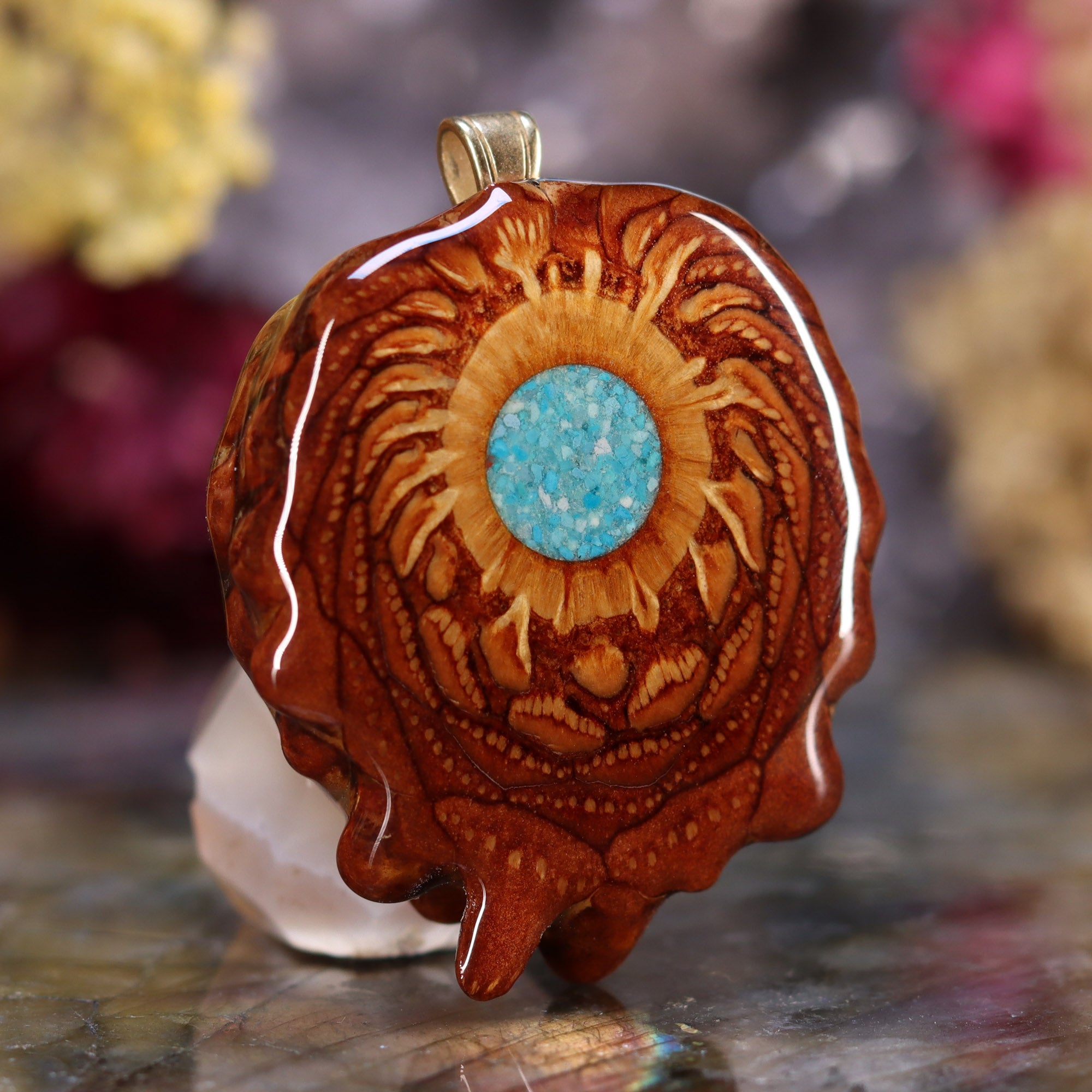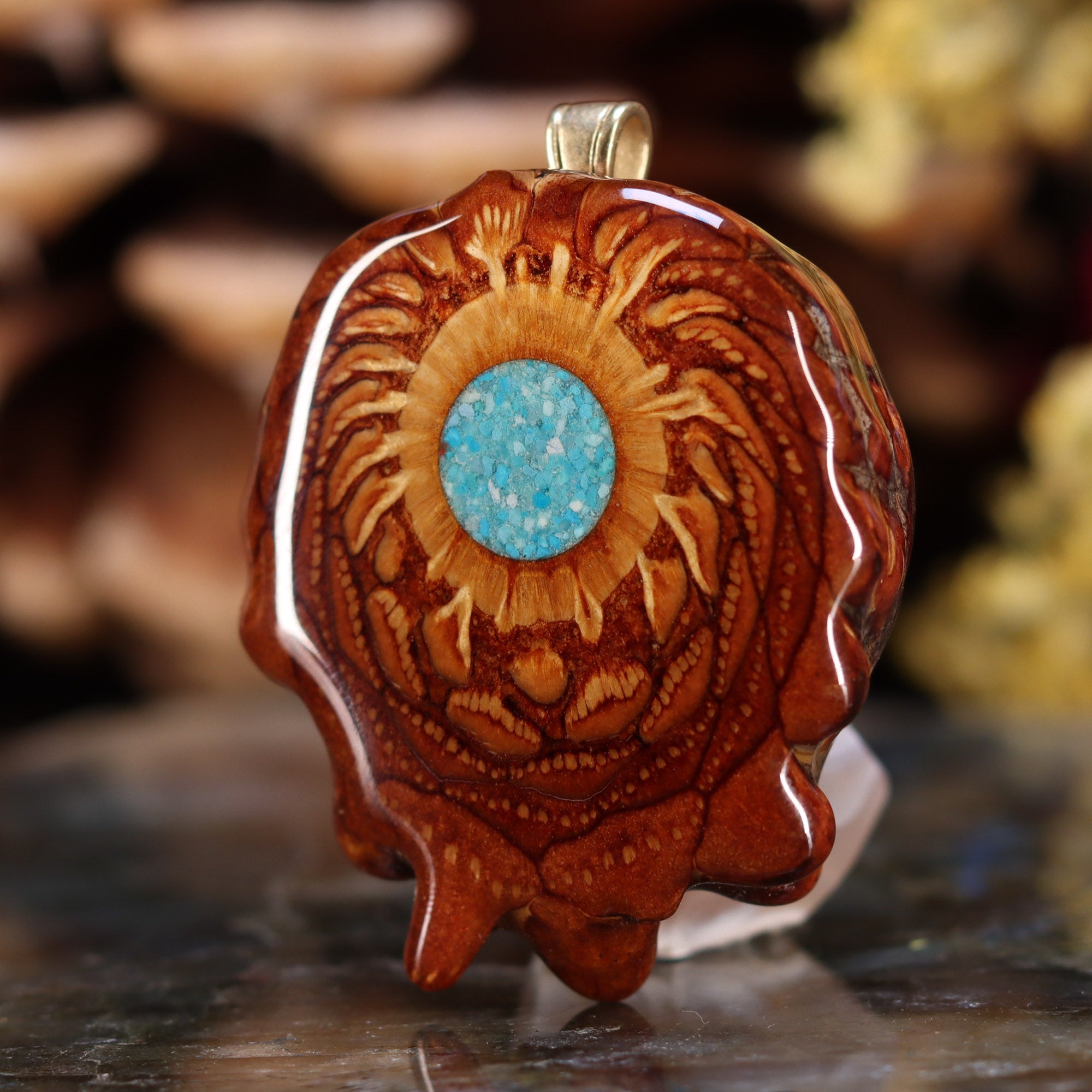 Every pinecone pendant is an elegant gift from Mother Nature -- unveiling the ornate Sacred Geometry hidden at the center of one of the world's densest Pinecones. Because only one cross-section is taken from the "heart" of each Cone, every pendant is absolutely unique, and truly one-of-a-kind.
