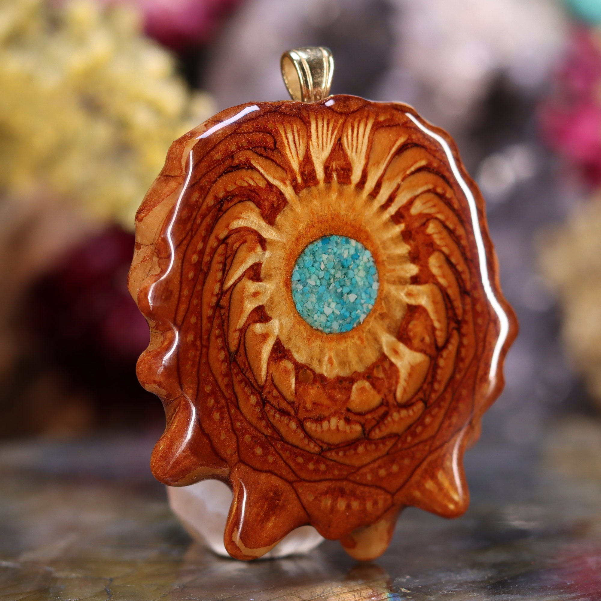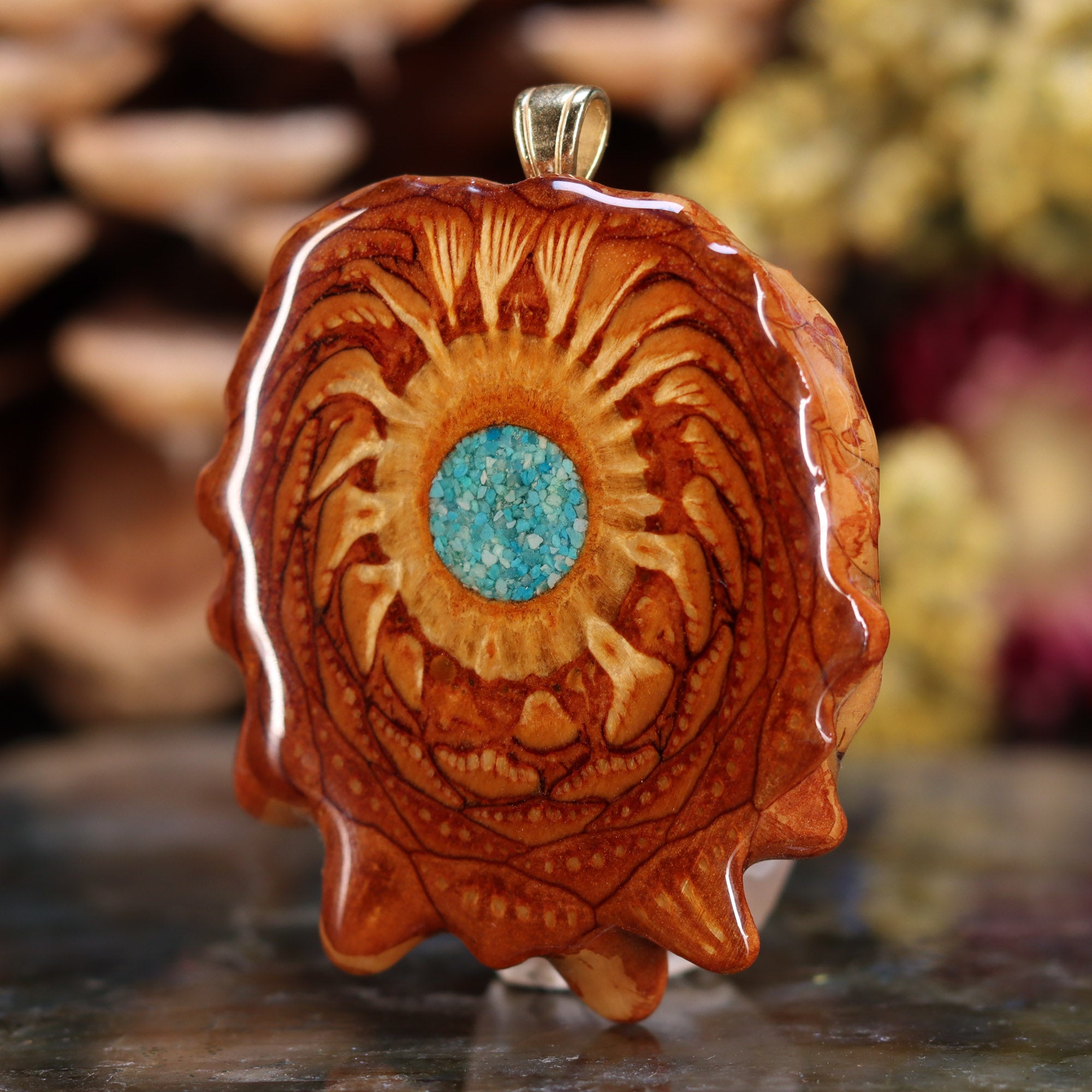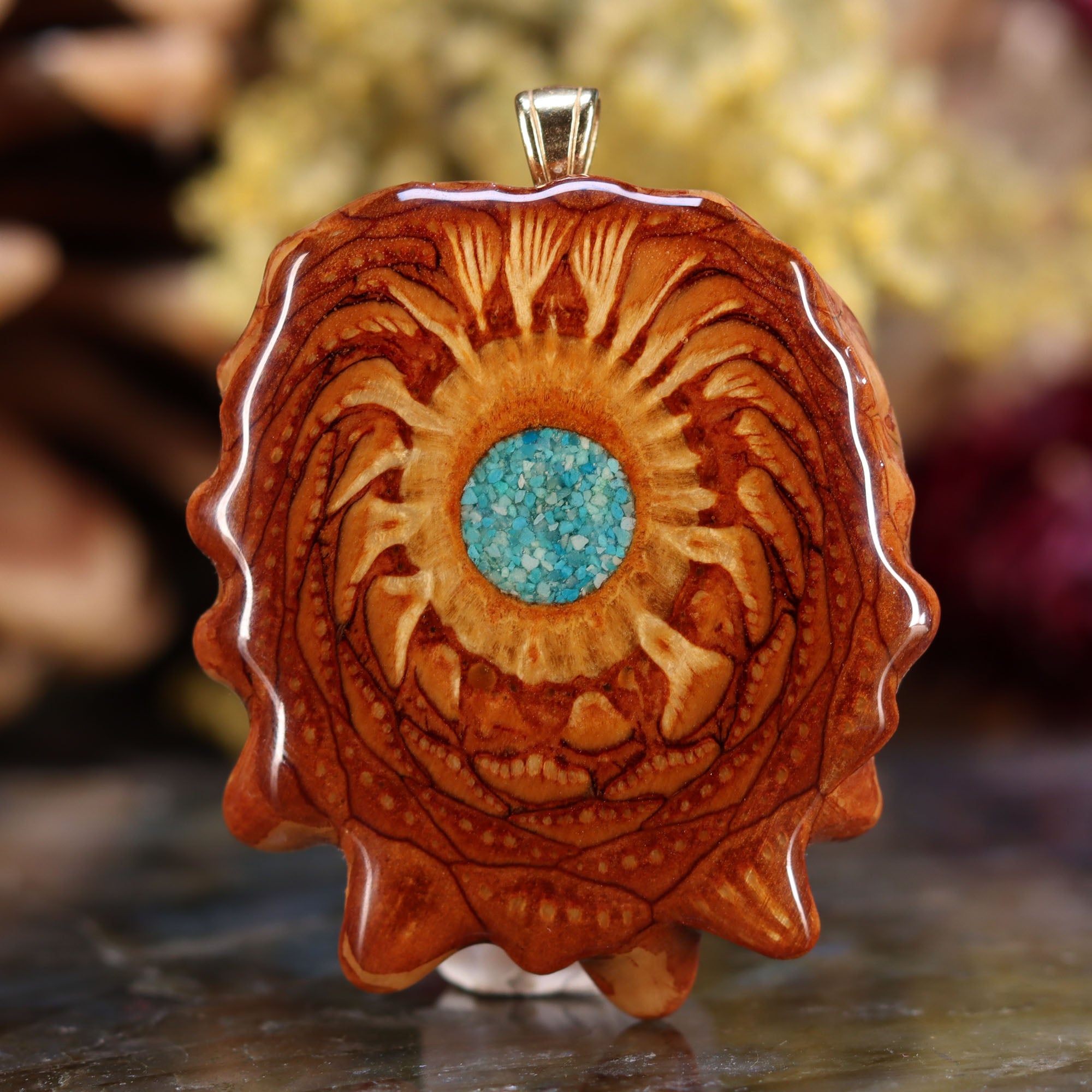 Every pinecone pendant is an elegant gift from Mother Nature -- unveiling the ornate Sacred Geometry hidden at the center of one of the world's densest Pinecones. Because only one cross-section is taken from the "heart" of each Cone, every pendant is absolutely unique, and truly one-of-a-kind.